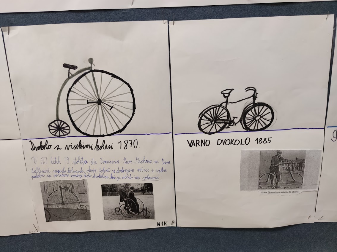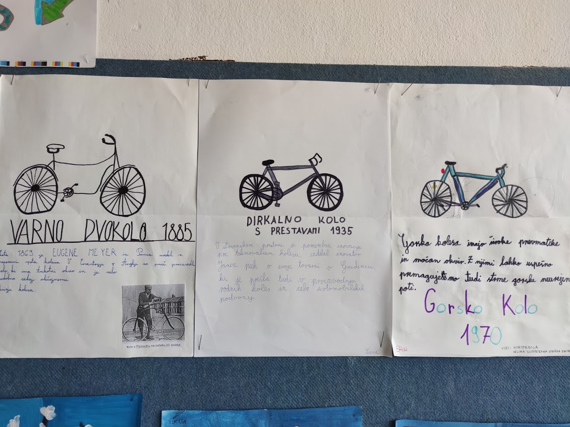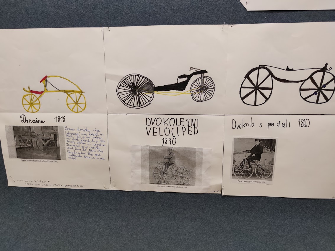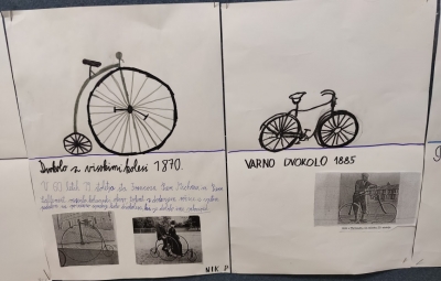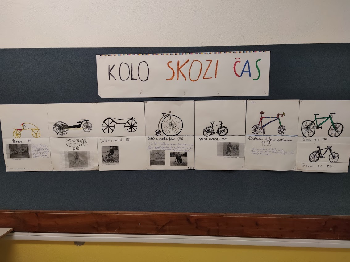 Učenci 4.a razreda smo se v mesecu kolesarstva aktivno vključili v različne dejavnosti. Poiskali smo podatke in s časovnim trakom prikazali, kako so se razvijala kolesa skozi čas.