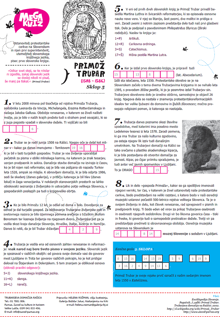 V času jesenskih počitnic, 31. oktobra, smo obeležili dan reformacije. Na ta dan je minilo točno 503 leta, odkar je nemški duhovnik v mestecu Wittenberg zahteval prenovo cerkve in s tem sprožil gibanje protestantizem ali reformacija, ki se je razširilo po celi Evropi. Protestantske ideje so odmevale tudi v naših krajih in lahko smo hvaležni našim protestantom in ponosni nanje, saj so zaslužni za to, da je slovenščina postala knjižni jezik, dobili smo cel kup slovenskih knjig, med njimi prvi prevod Biblije in prvo slovnico. Takrat se je začelo tudi organizirati šolstvo in opismenjevati ljudi. Najpomembnejši med našimi protestanti pa je Primož Trubar.