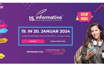Vseslovenski Sejem izobraževanja in poklicev 15. Informativa bo 19. in 20. januarja, natančno 1 mesec dni pred uradnimi informativnimi dnevi, postregel s številni idejami in odgovori na vprašanja glede vpisov v srednje šole, višje strokovne šole, na fakultete, kje najti priložnosti za delo, kako financirati izobraževanje ipd.