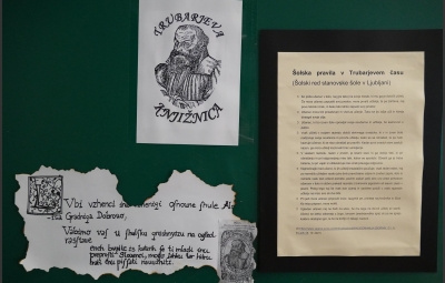 Pred pričetkom jesenskih počitnic smo v šolski knjižnici pripravili razstavo, posvečeno življenju in delu Primoža Trubarja ter njegovemu prispevku k razvoju slovenskega knjižnega jezika ter narodne zavesti. Učenci in učenke so si jo lahko ogledali med poukom slovenščine 21. in 22. oktobra.