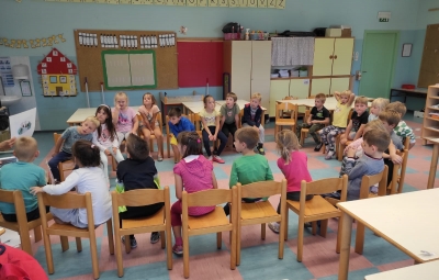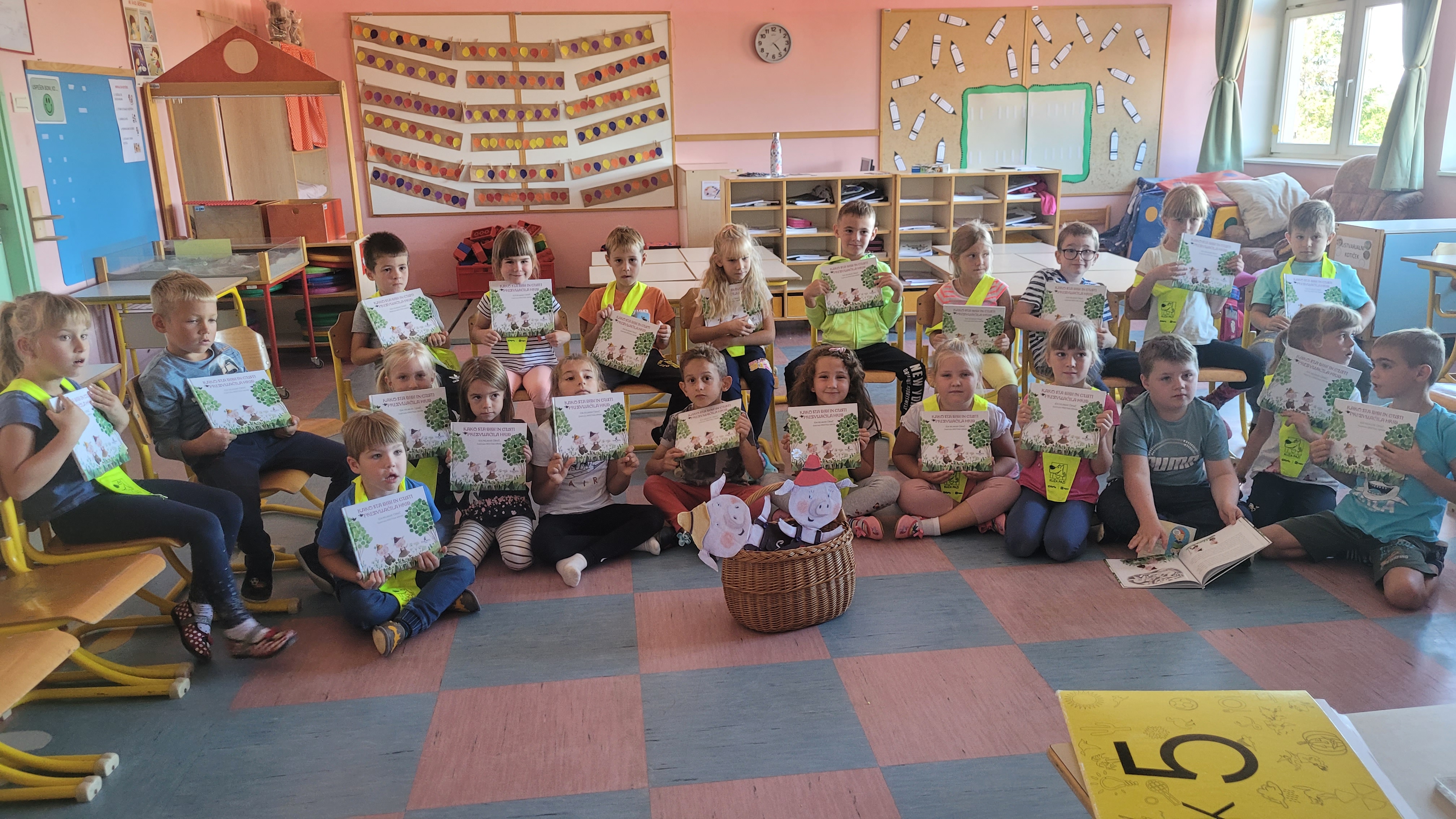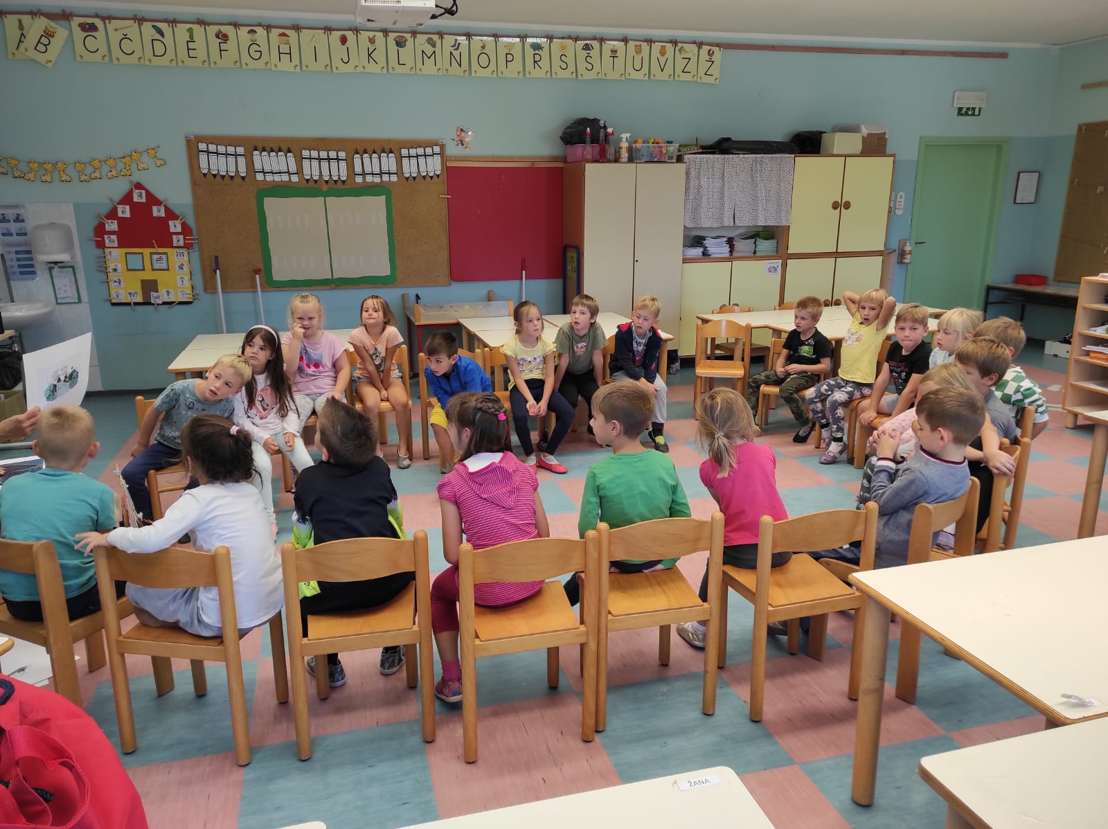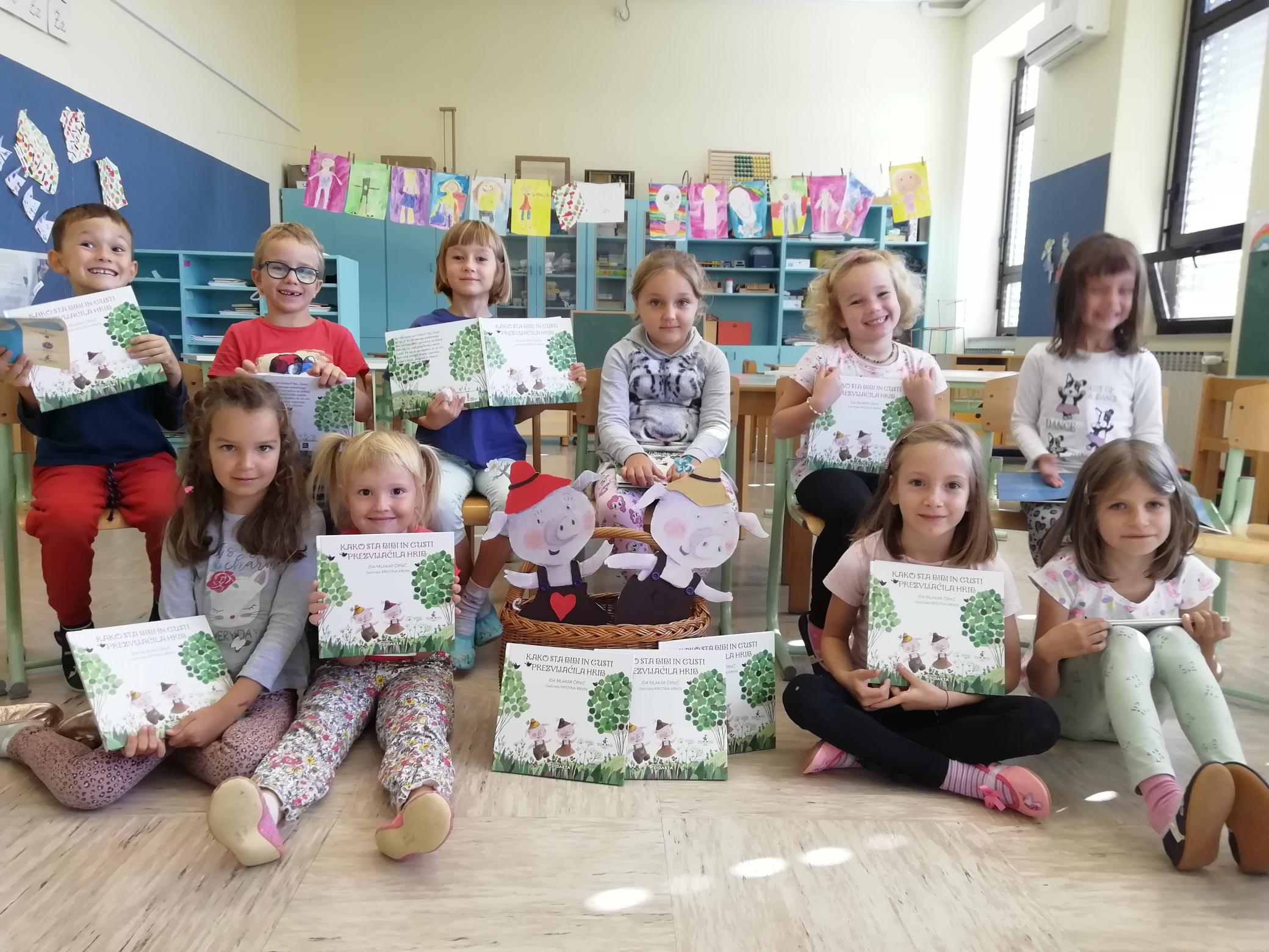 Prvošolci in njihove družine so bili povabljeni k branju z darilno slikanico KAKO STA BIBI IN GUSTI PREZVIJAČILA HRIB pisateljice Ide Mlakar Črnic z ilustracijami Kristine Krhin.Prisluhnili so pravljici. Knjižna junaka, Bibi in Gusti, sta se spoprijateljila z našimi prvošolci. Po prebrani pravljici smo se z njima zabavali in se imeli lepo. Prvošolci so ju povabili, da se nam bosta pridružila na športnem dnevu, ki ga bomo izvedli za vse učence naše šole ob 23. septembru, slovenskem dnevu športa.