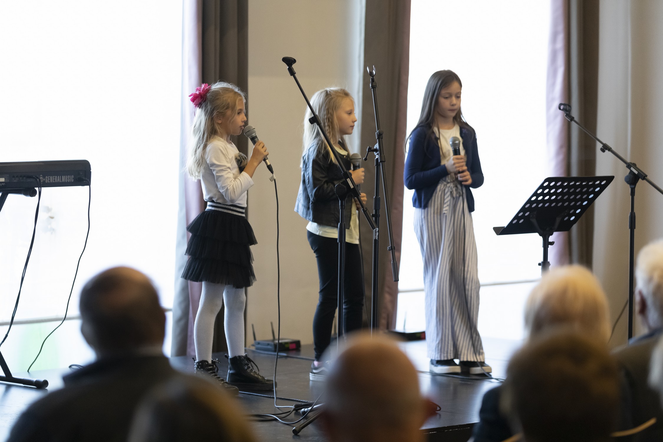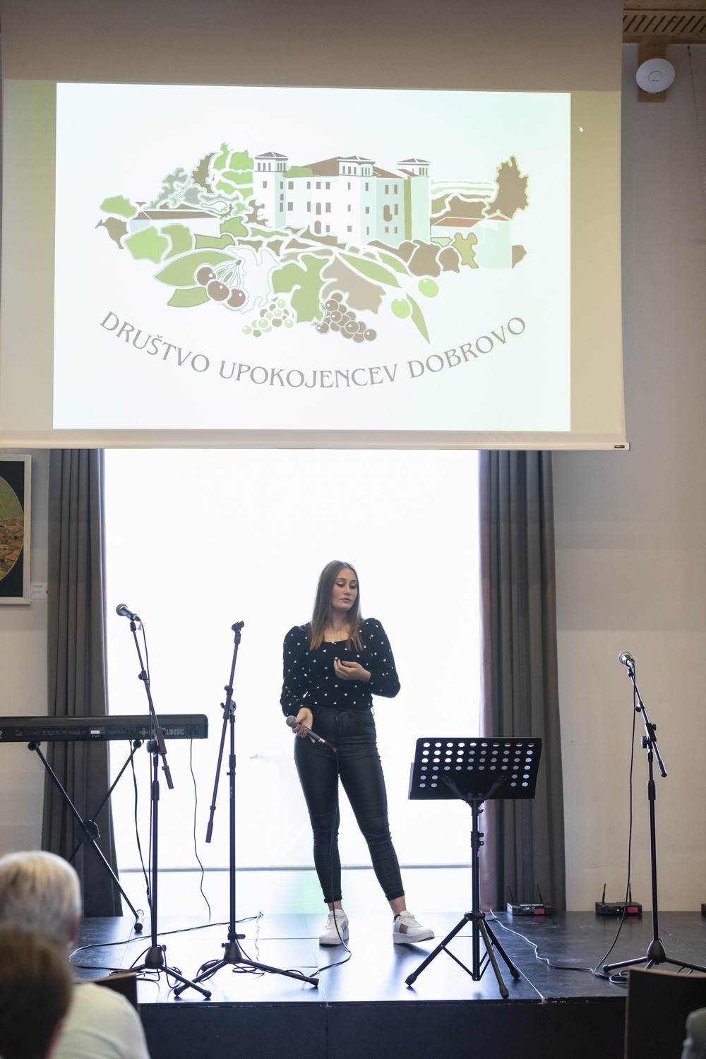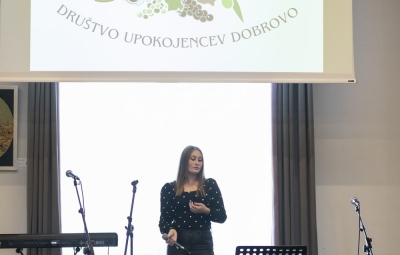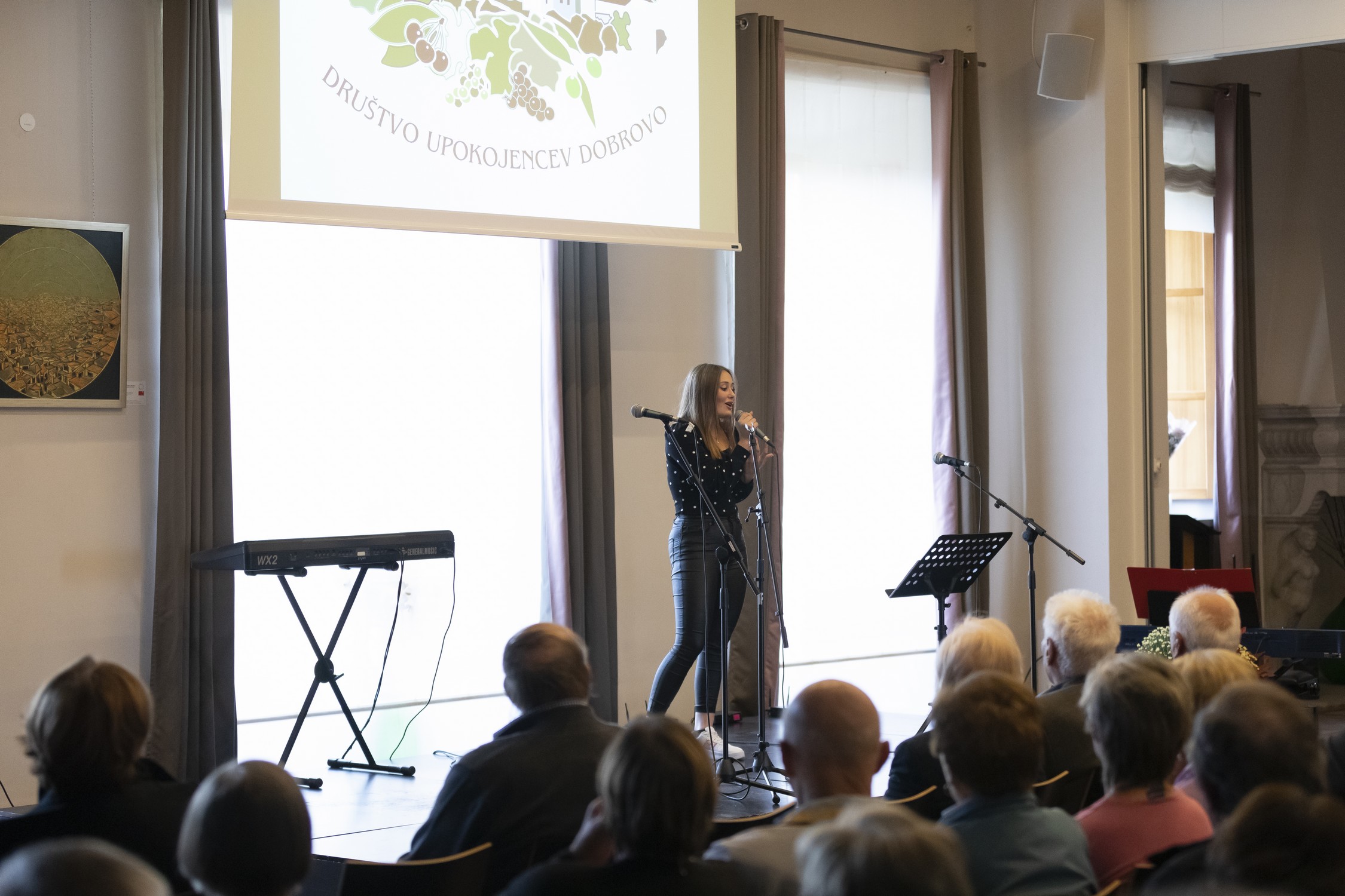 Naše pevke Angela, Vita, Pavla, Ameli, Vita in Ešli ter recitator David so razveselili upokojence ob praznovanju 50. obletnice Društva upokojencev Dobrovo.