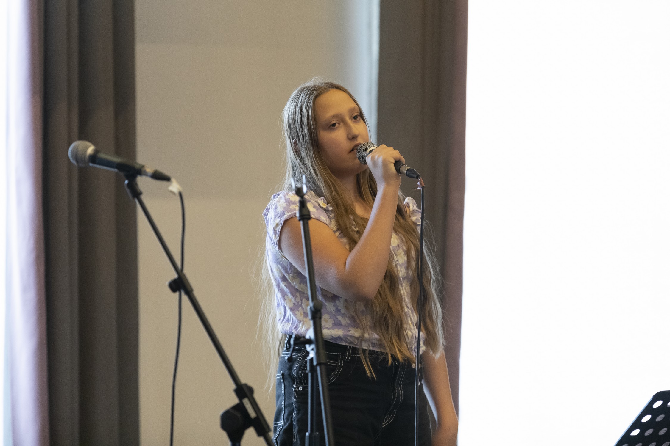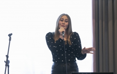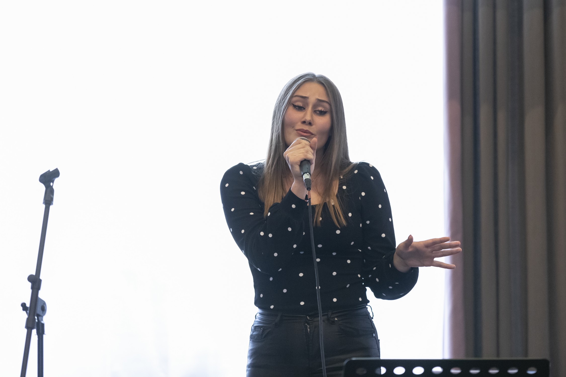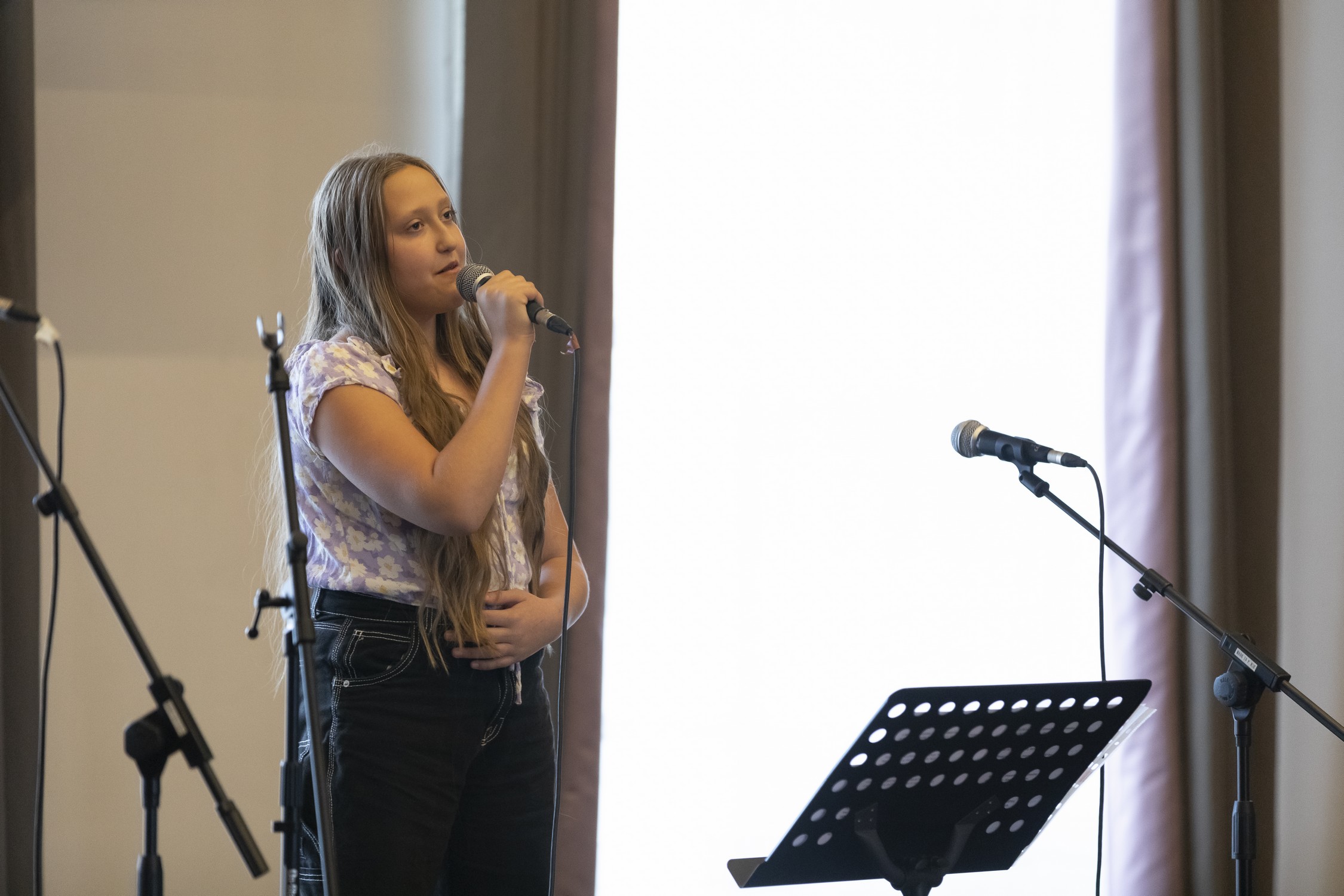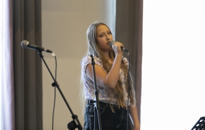 Naše pevke Angela, Vita, Pavla, Ameli, Vita in Ešli ter recitator David so razveselili upokojence ob praznovanju 50. obletnice Društva upokojencev Dobrovo.