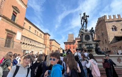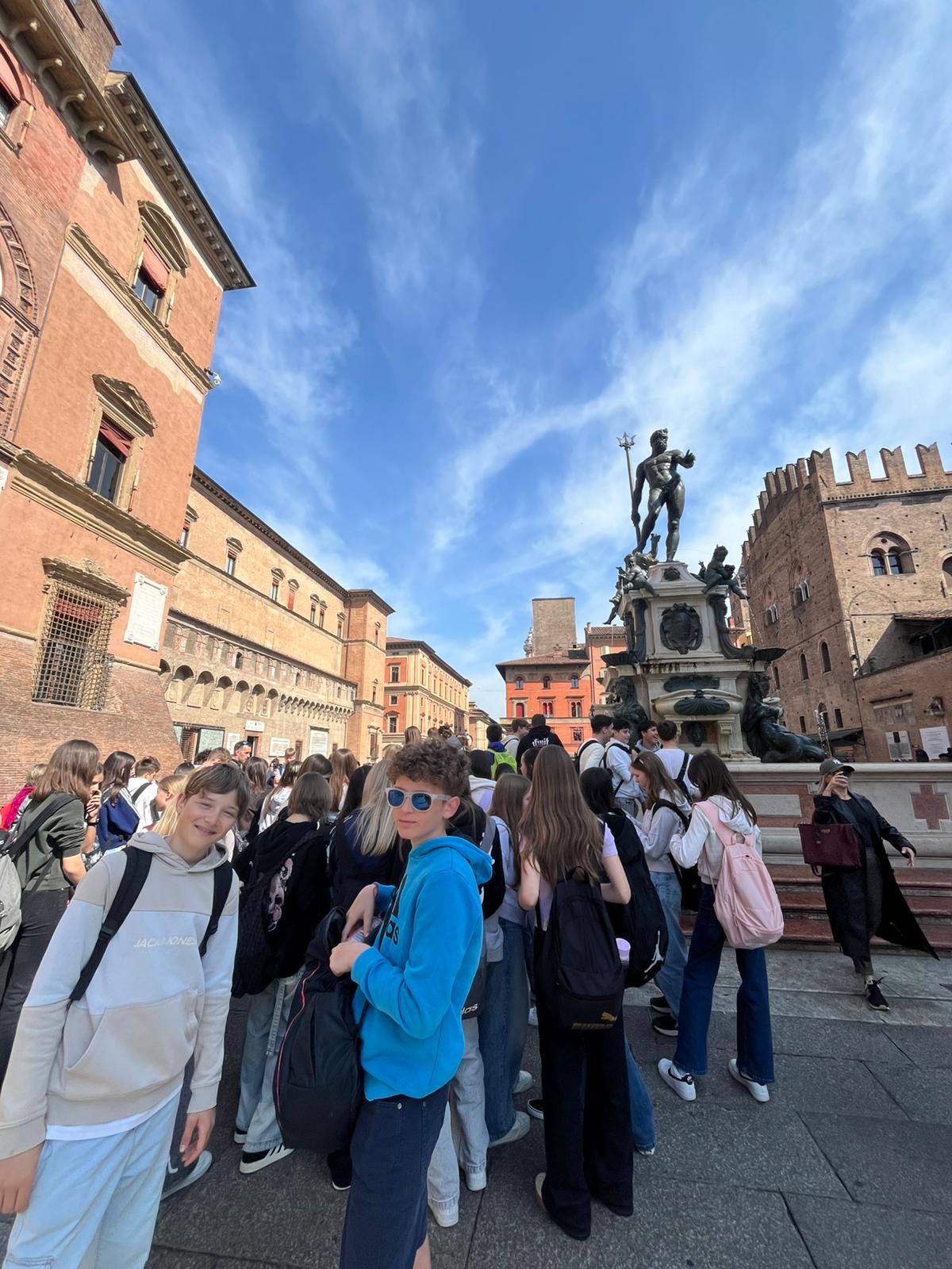 V petek, 10. 4. 2026, smo se učenci 8. in 9. razreda, ki obiskujemo izbirni predmet italijanščina, učenci 7. in 8. razreda, ki obiskujemo izbirni predmet SPH, ter Zeleni ambasadorji skupine Erasmus+ odpravili na ekskurzijo v Bologno.