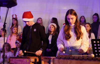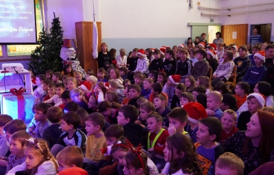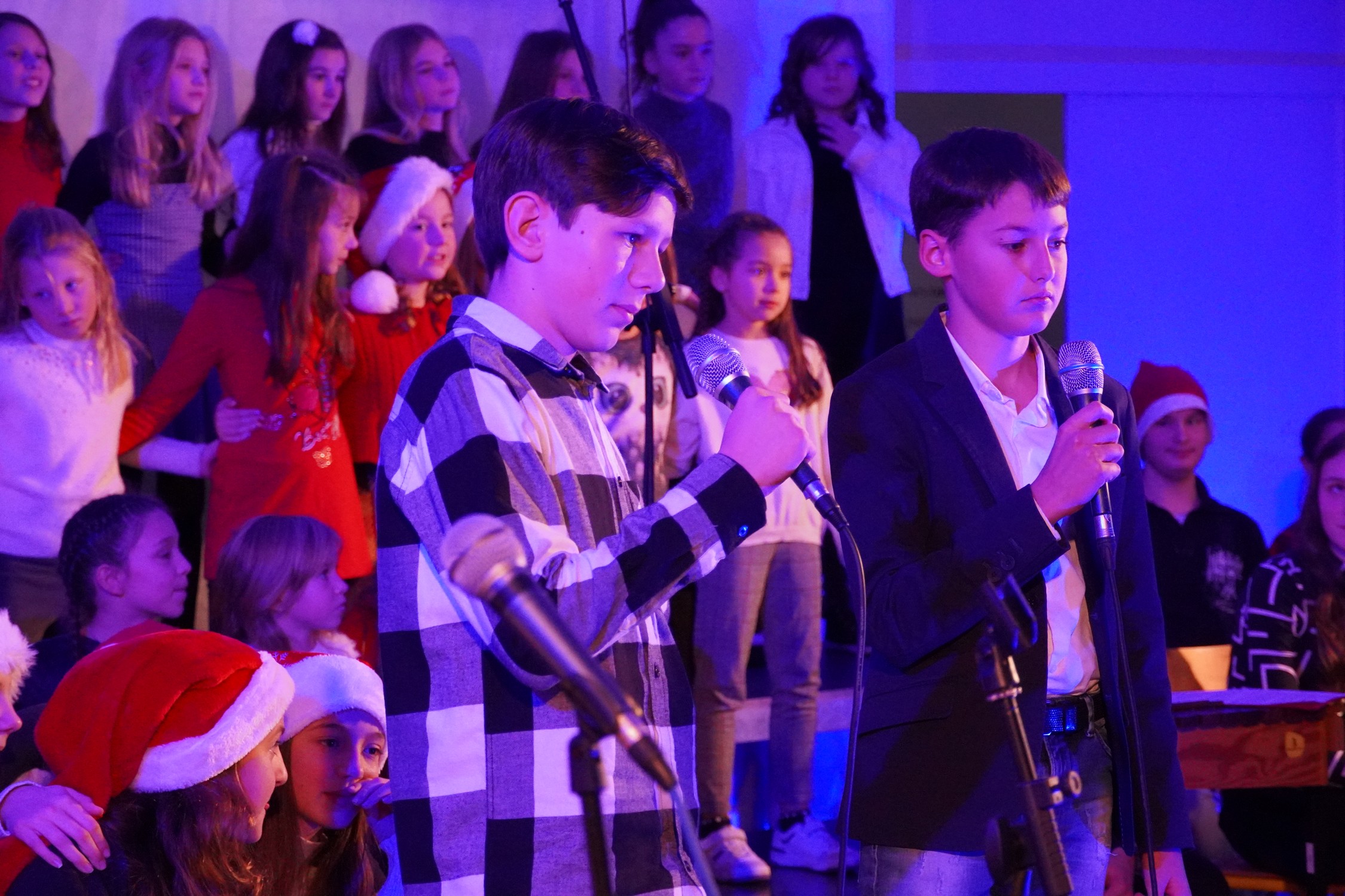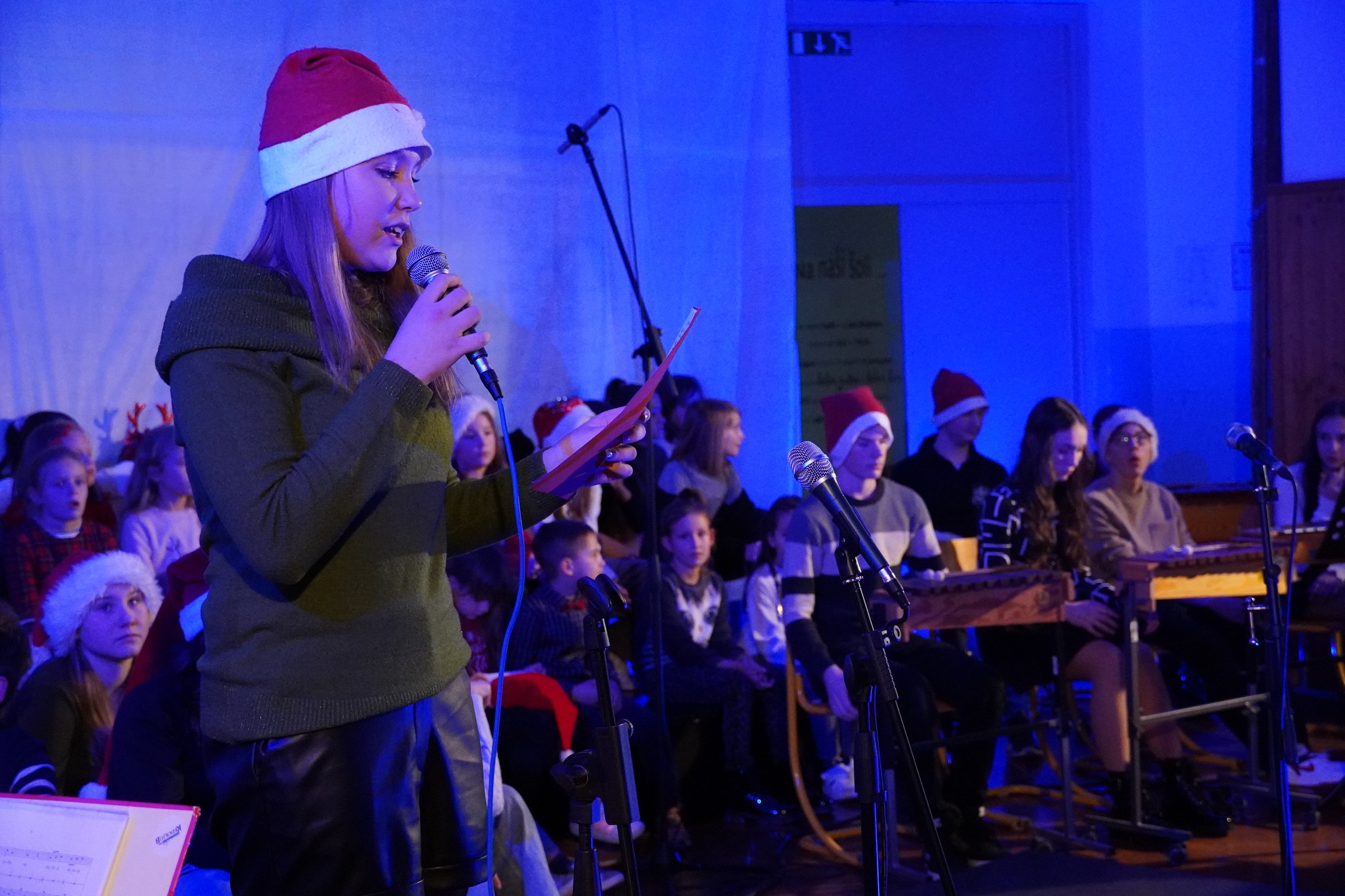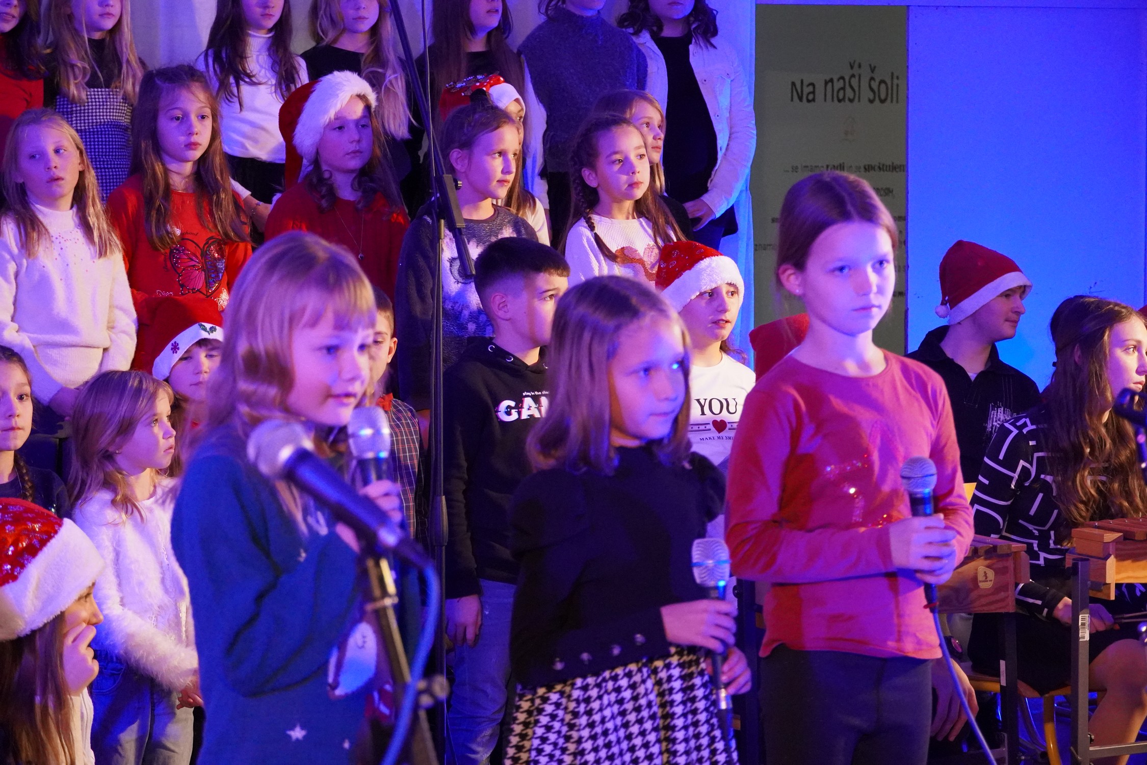 V četrtek zvečer, 22. decembra 2023, smo doživeli čaroben božično-novoletni koncert. Na oder so stopili otroški pevski zbor, Orffova skupina, številni pevci solisti ter gostje, bivši učenci naše šole: Hana Prinčič, Aljaž Bužinel ter Jan Jakončič.