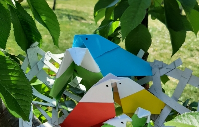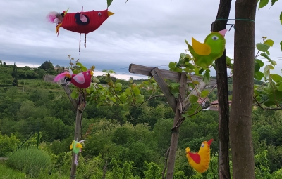 Ker ptice ne poznajo meja, smo jih konec aprila najprej izdelovali petošolci in k izdelavi povabili še druge. Tako so ptice poletele tudi izven občinskih meja. Postavili smo jih na vrtove in terase. Projektu se zdaj pridružujejo tudi drugi učenci naše šole. Brda so dobila krila… Prav širina neba in srca nas združuje.