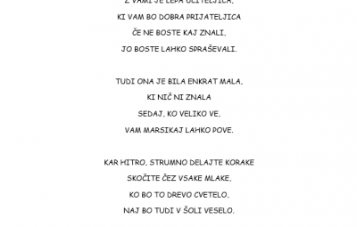 95-letna gospa Matilda nam je s toplino in modrostjo napisala pesem, ki jo z veseljem delimo. Njene besede nas spominjajo, kako pomembni so spoštovanje, povezanost in srčnost v vsakem dnevu. Srečanje nam je pokazalo, da je povezovanje generacij nekaj plemenitega – skupaj lahko ustvarjamo svet, v katerem se učimo drug od drugega ter si podarjamo čas, nasmehe in toplino.