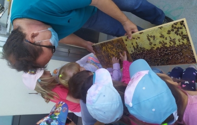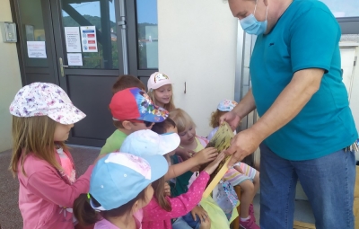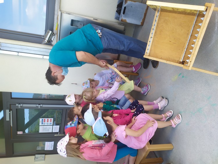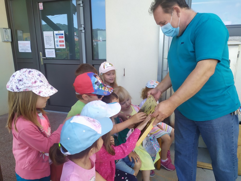 Danes nas je obiskal naš hišnik Danilo, ki je tudi čebelar. Pokazal nam je učni panj, satovje in nam povedal marsikaj zanimivega o čebelah.
