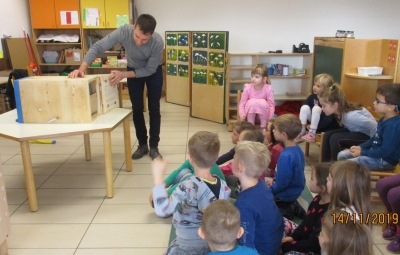 14. 11. 2019, nas je v Biljani obiskal čebelar Vasja Jug in nam pokazal ter povedal veliko zanimivega o čebelah. Srečanje smo zaključili z izdelovanjem sveč iz satnic.