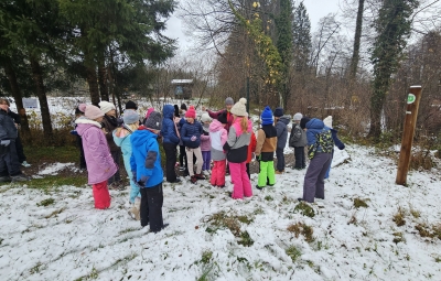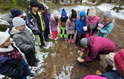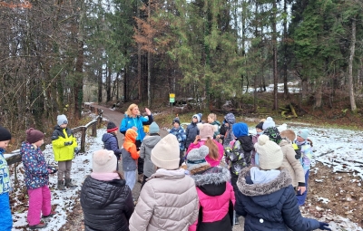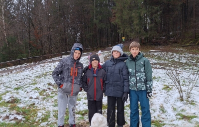 Prebudili smo se v zasneženo jutro. V dopoldanskem času smo se učili o orientaciji in obiskali jamo ter spoznavali sledove gozdnih živali, ki smo jih potem iskali v gozdu. Po okusnem kosilu smo spoznali kanu ter se preizkušali v vožnji z njim. Kratkočasili smo se še s sestavljanjem lego kock. Zvečer nas je čakal še nočni pohod z lučkami. Medveda nismo srečali.