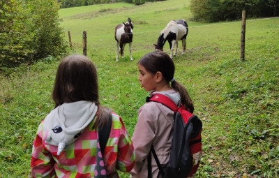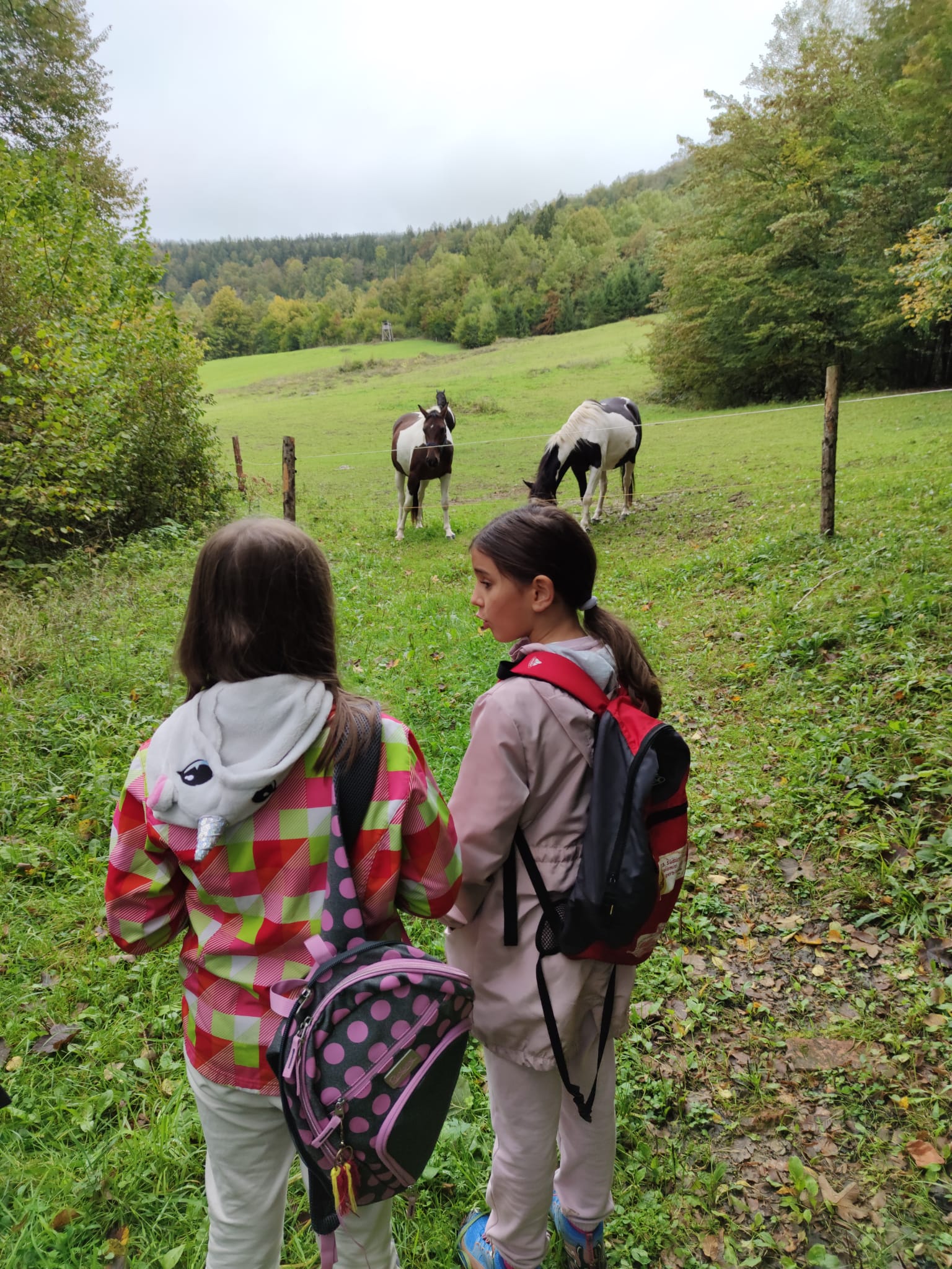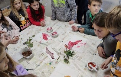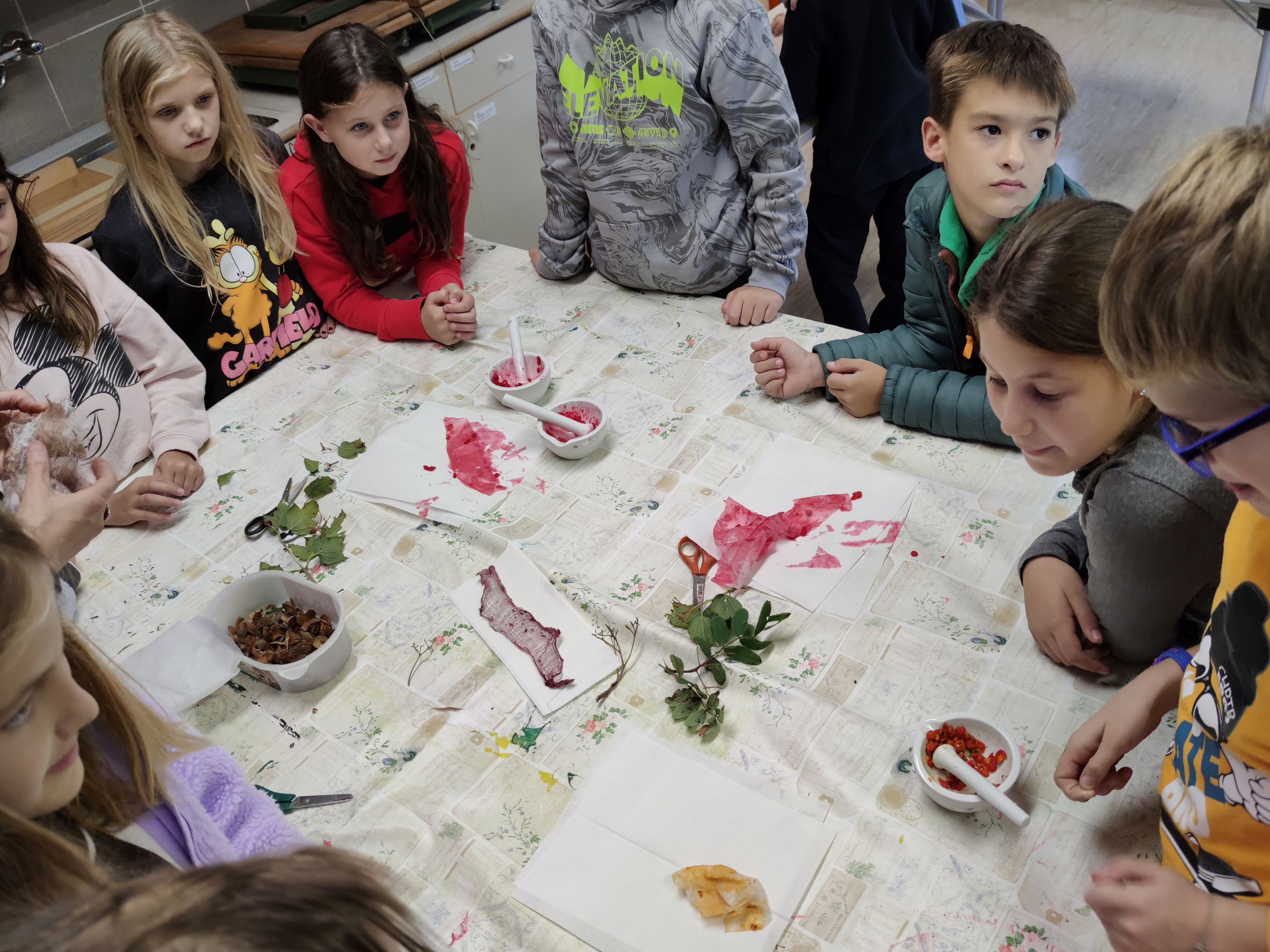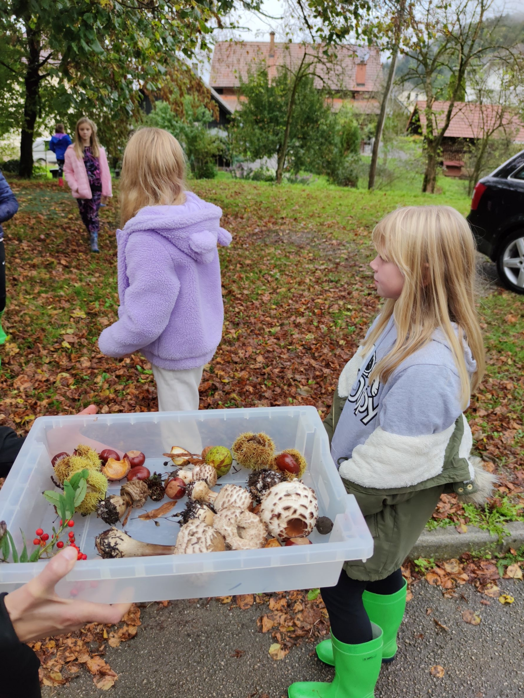 1.DAN: V Črmošnjicah je danes prav zanimivo. Po dežju je celo pokukalo sonce. Prvi dan smo že veliko raziskovali. Nabirali in spoznavali smo gozdne sadeže in plodove. Prepoznavali smo drevesa po lubju, listih in plodovih. Učiteljica nam je pokazala, kako so nekoč delali barvo za blago iz jagodičja. In naredili smo jo tudi sami. Zvečer smo se pa odpravili na nočni sprehod na Topli vrh.Najlepše od vsega je bilo skakanje po lužah v škornjih in pelerinah.