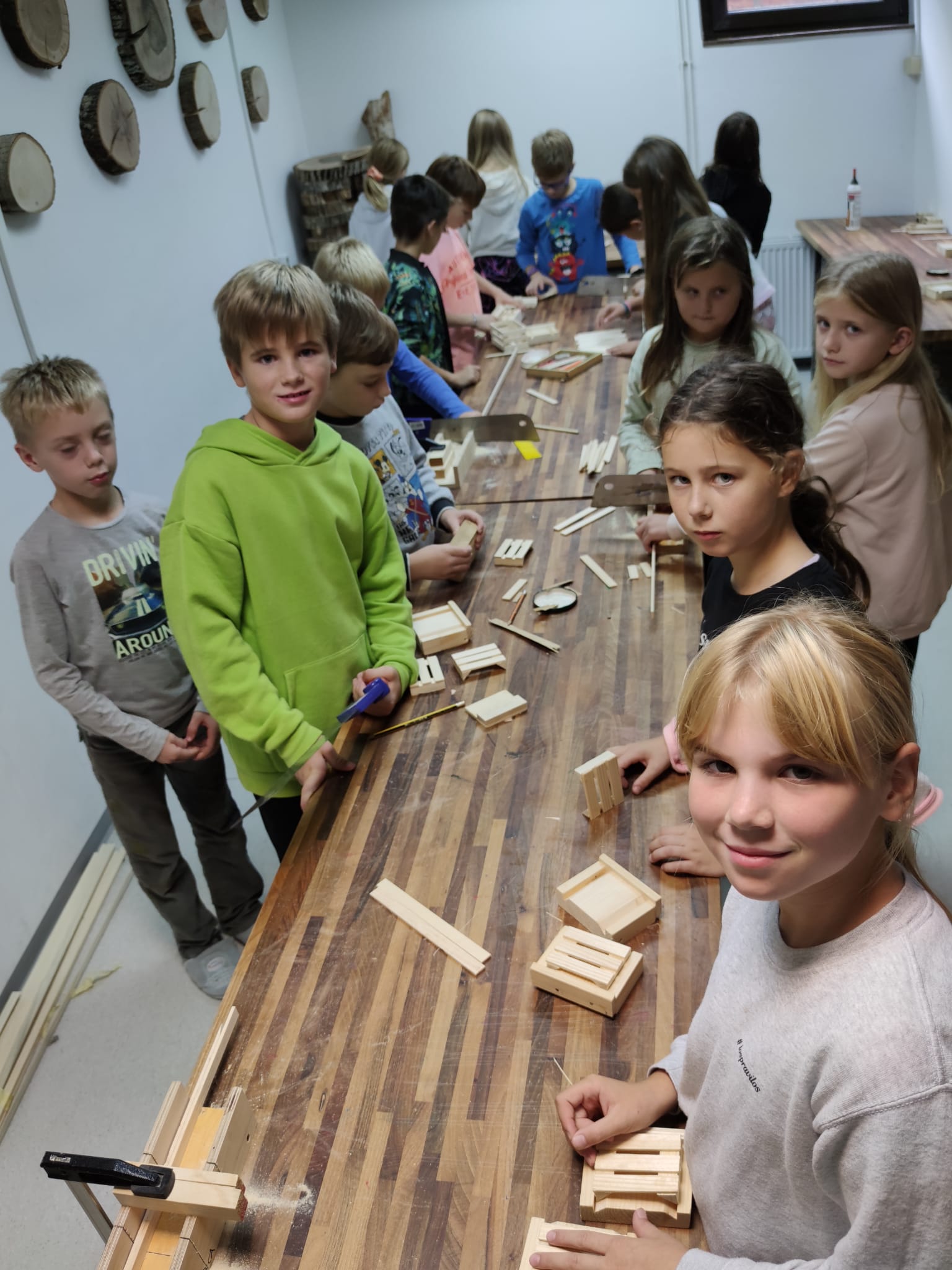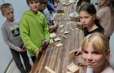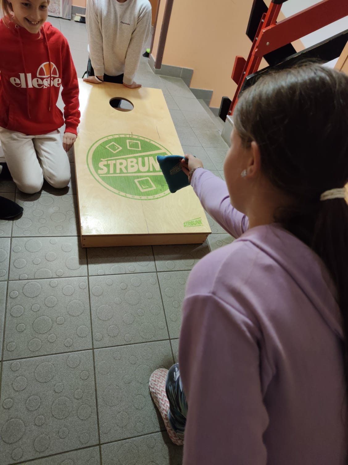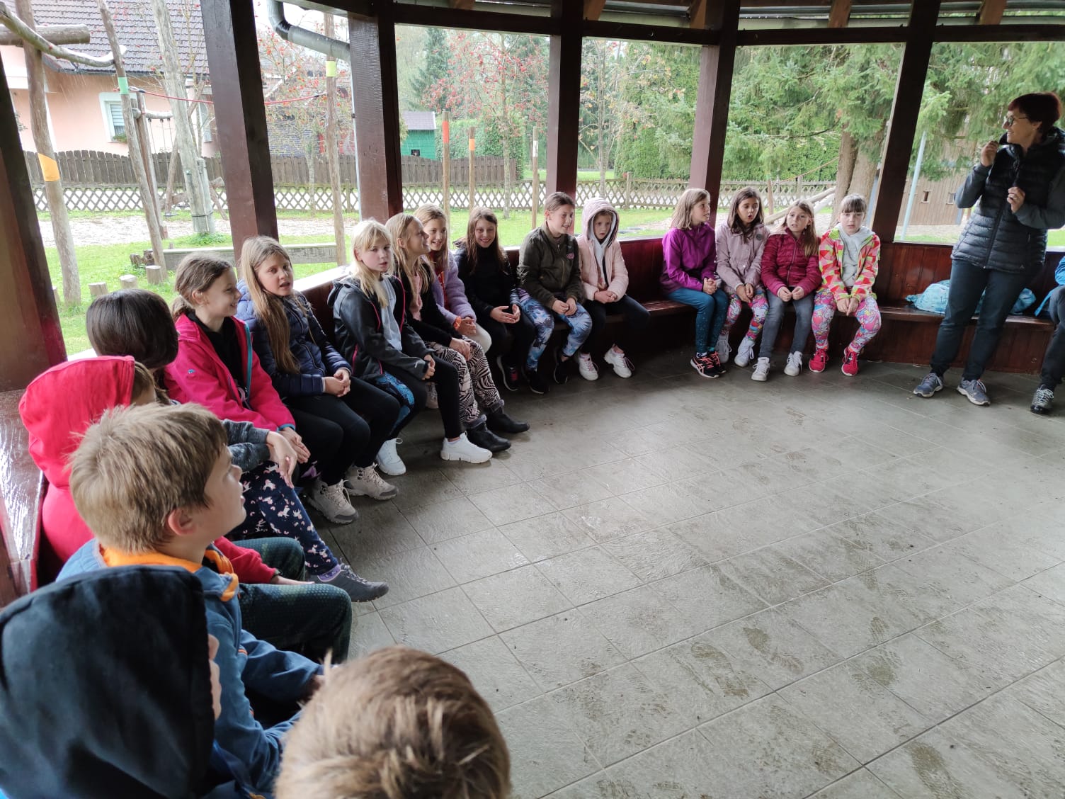 4. DAN: Ves dan dežuje, zato danes ustvarjamo pod streho. Naredili smo lesene zabojčke. Spoznavali smo Belo krajino in se naučili belokranjsko ljudsko pesem, na katero smo zaplesali kolo. Streljali smo z loki in tekmovali v zadevanju cilja. Po okusni večerji smo si za zadnji večer ogledali še risani film.