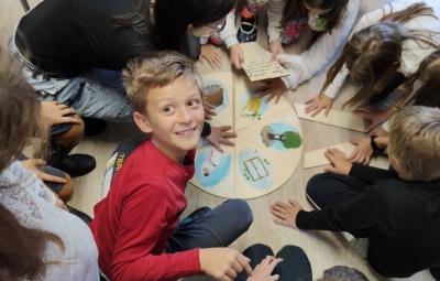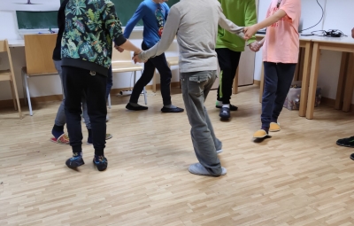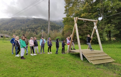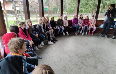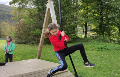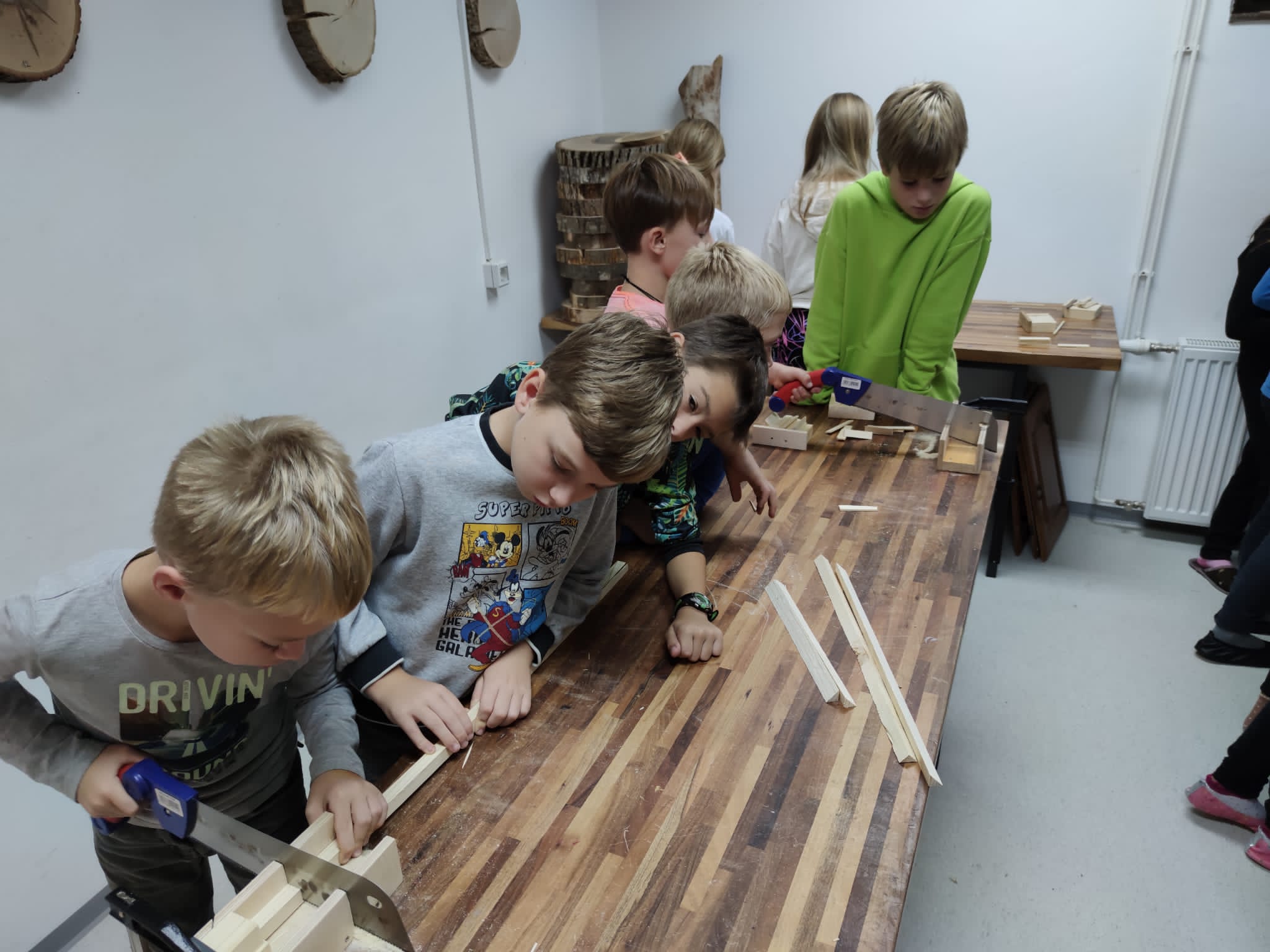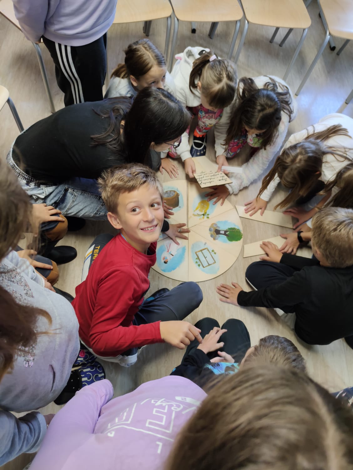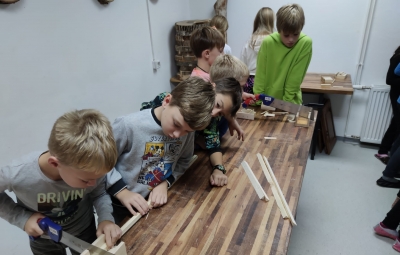4. DAN: Ves dan dežuje, zato danes ustvarjamo pod streho. Naredili smo lesene zabojčke. Spoznavali smo Belo krajino in se naučili belokranjsko ljudsko pesem, na katero smo zaplesali kolo. Streljali smo z loki in tekmovali v zadevanju cilja. Po okusni večerji smo si za zadnji večer ogledali še risani film.