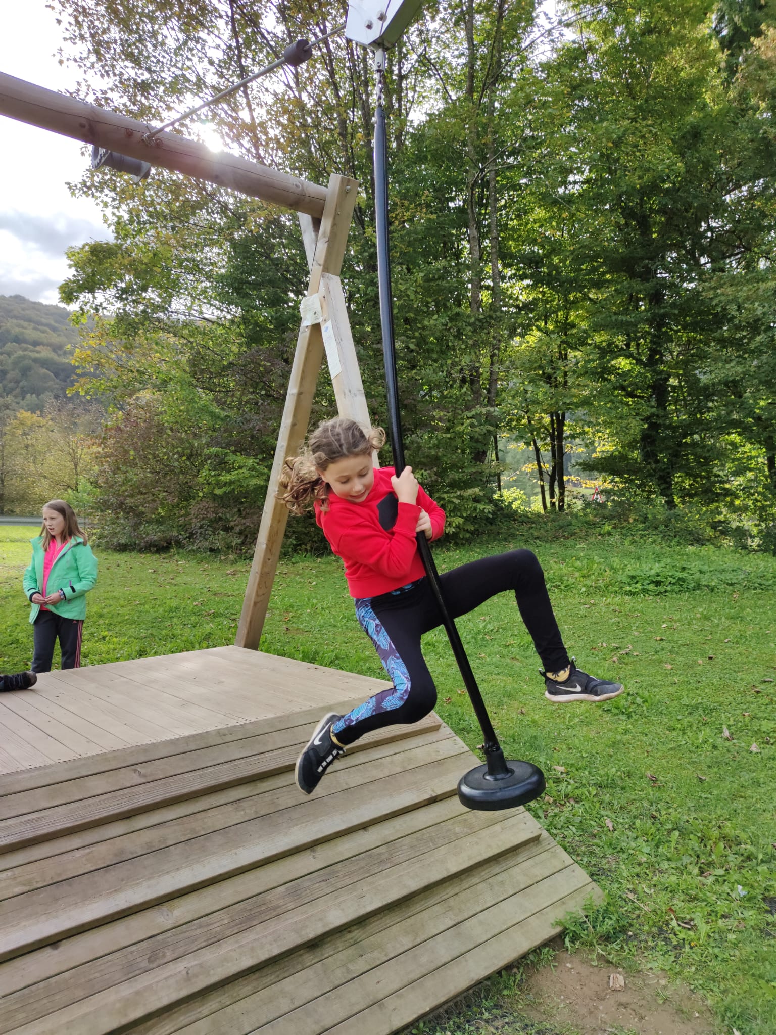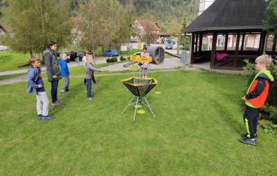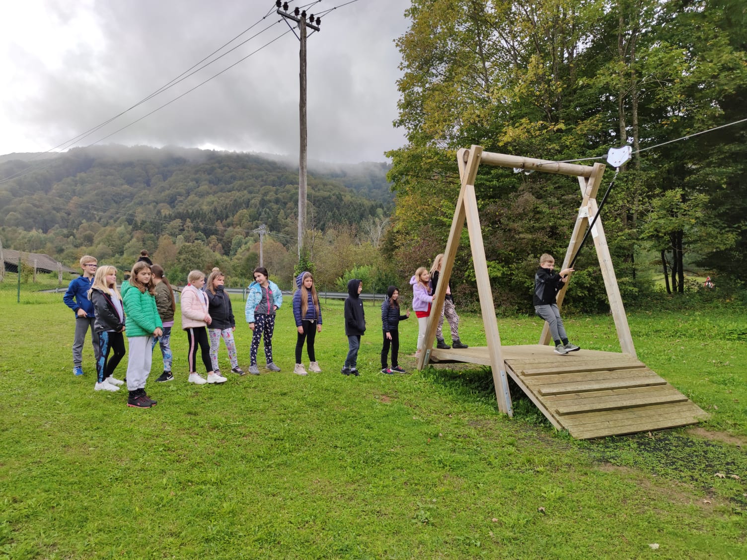 3. DAN: V sredo smo imeli pravi športni dan. Dopoldne smo premagovali spolzko pot ob čudovitem Divjem potoku. Popoldne smo se preizkušali v različnih športnih disciplinah. Igrali smo kriket, mini golf, bowling, disk golf, med dvema ognjema in se spuščali po "ziplajnu". Po dobri večerji (končno pašta!) nas je čakal zanimiv večer s pripovedkami ob tabernem ognju. Ampak na žalost nam je dež odnesel taborni ogenj. Na srečo pa smo vseeno poslušali pravljico o škratku in zlati bukvi ter pripovedko o volku Slavku.