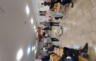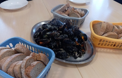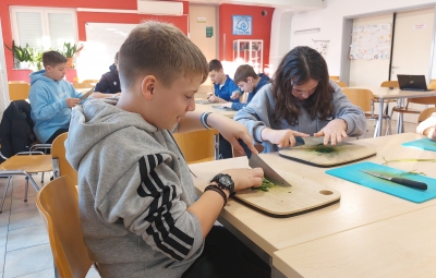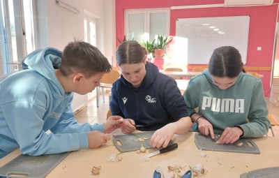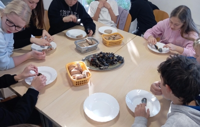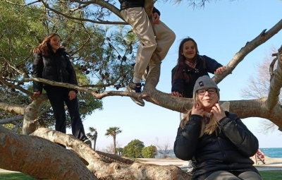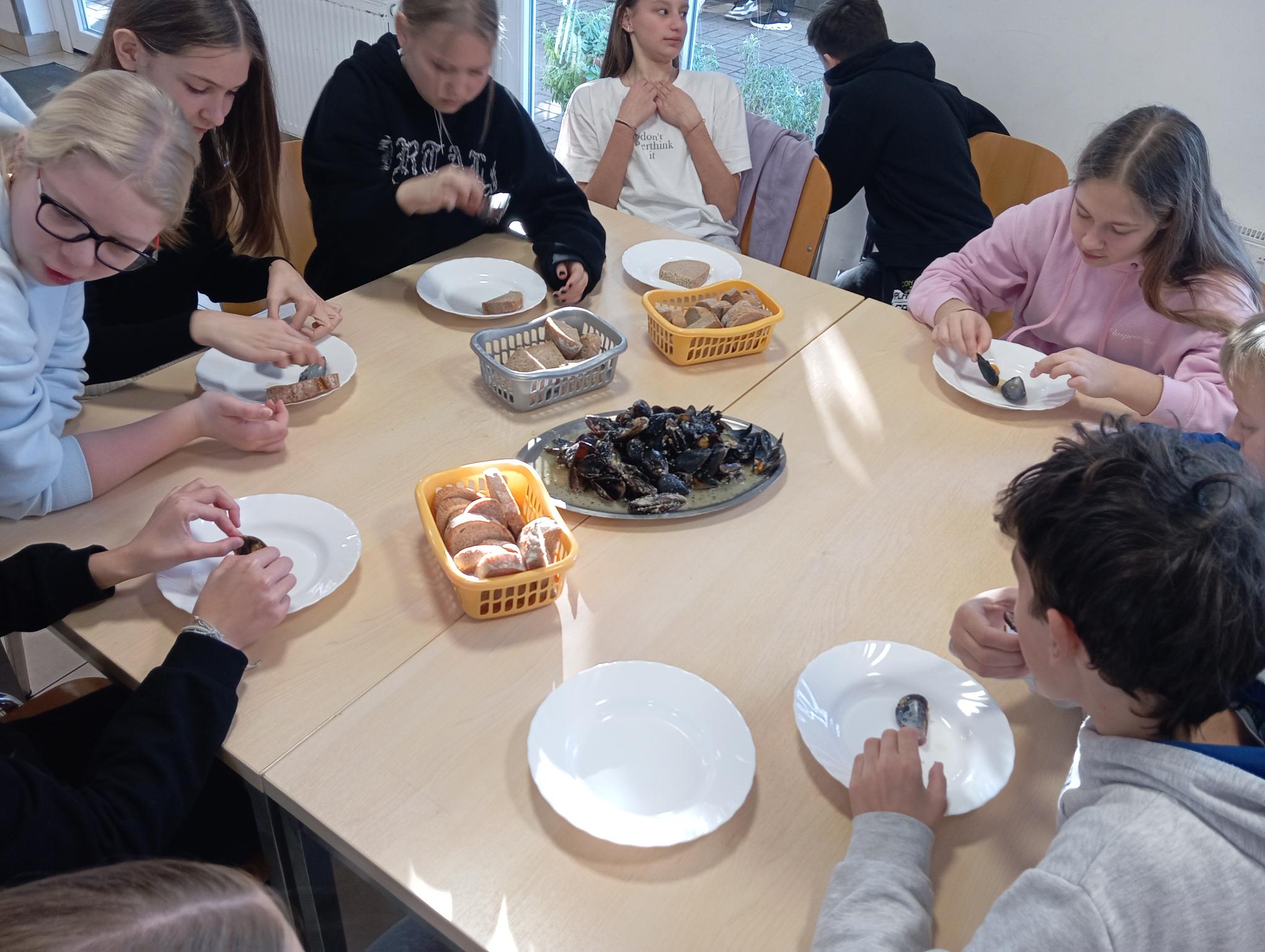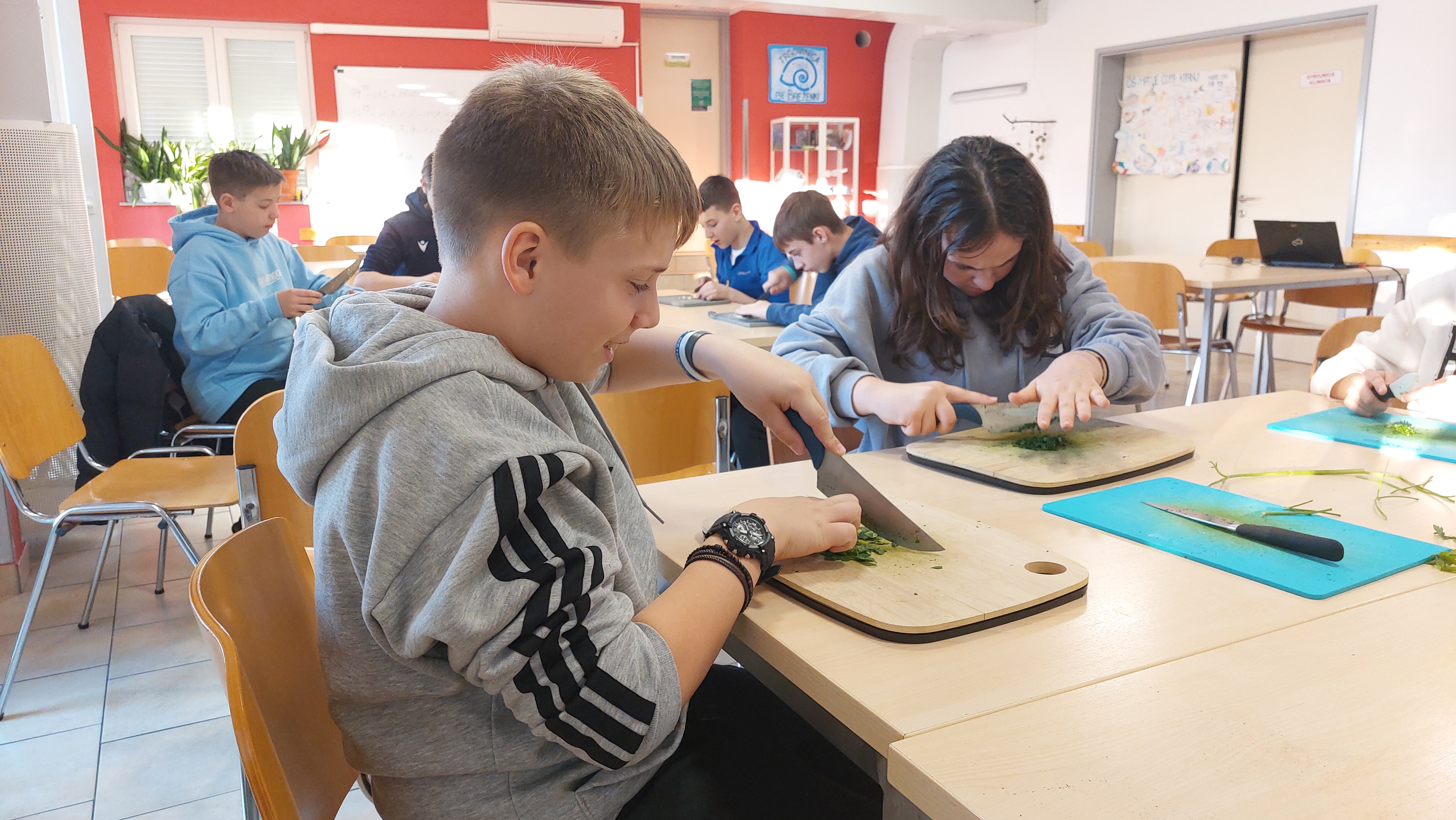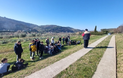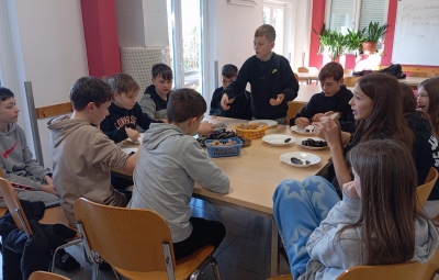 Danes smo se po zajtrku odpravili na res dolg pohod do Strunjana. Ogledali smo si turistično kmetijo, kjer smo imeli možnost videti kako gojijo artičoke, njihova glavna dejavnost pa je gojenje kakija. Ponudili so nam ga sušenega, poskusili pa smo tudi oljčno olje in res odličen sadni čaj. Od tam smo se povzpeli do razgledne točke Strunjanski križ, od koder smo uzrli Mesečev zaliv, nad njim pa 80 metrov visok klif. Ko smo se vračali, smo videli tudi bazene Strunjanskih solin, ki jih bodo marca začeli pripravljati za novo sezono pobiranja soli. V popoldanskem delu smo še malo raziskovali morje. Spoznali pa smo tudi gojenje školjk klapavic in jih tudi pripravili na buzaro. Po večerji pa nas čaka plesni večer.