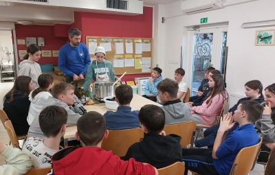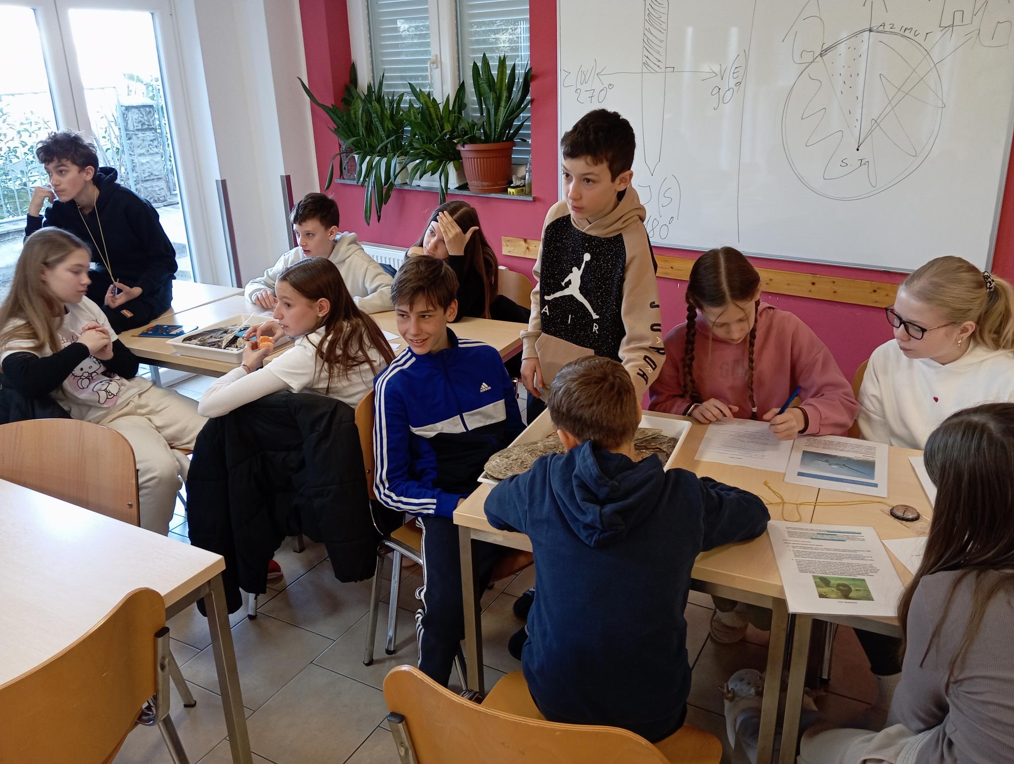 Danes smo pa že težje vstali. Po jutranji telovadbi in zajtrku smo imeli orijentacijski pohod. Spoznavali smo okolico doma, uporabljali kompas za orijentiranje in opravili nekaj fizikalnih in kemijskih meritev v jezeru, morju in v zraku. Popoldne smo mikroskopirali jezersko vodo in opazovali življenje v njej. Naučili smo se uporabljati palice za nordijsko hojo in z njimi odšli na pohod do Pirana. Večer se je zaključil z zabavnim kvizom, igro štrbunk in turnirjem v namiznem tenisu.