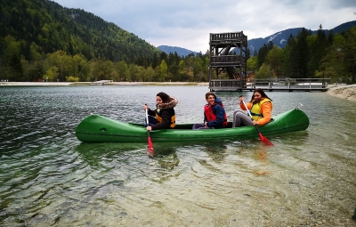 Prebudili smo se v čudovito jutro in ves dan preživeli na prostem. Sprehodili smo se do naravnega rezervata Zelenci ter kolesarili do Planice in nazaj. Na pohodu smo spoznavali značilnosti gorništva in pohodništva.