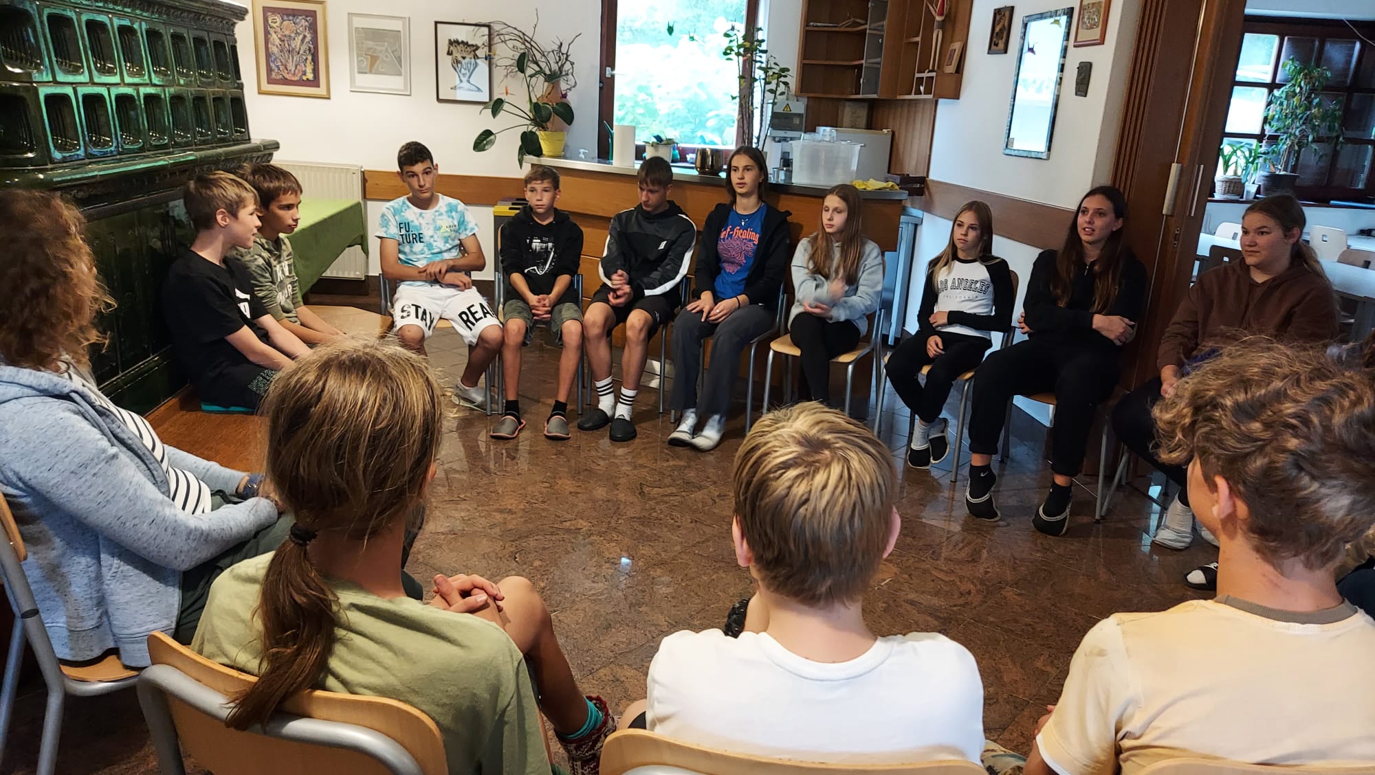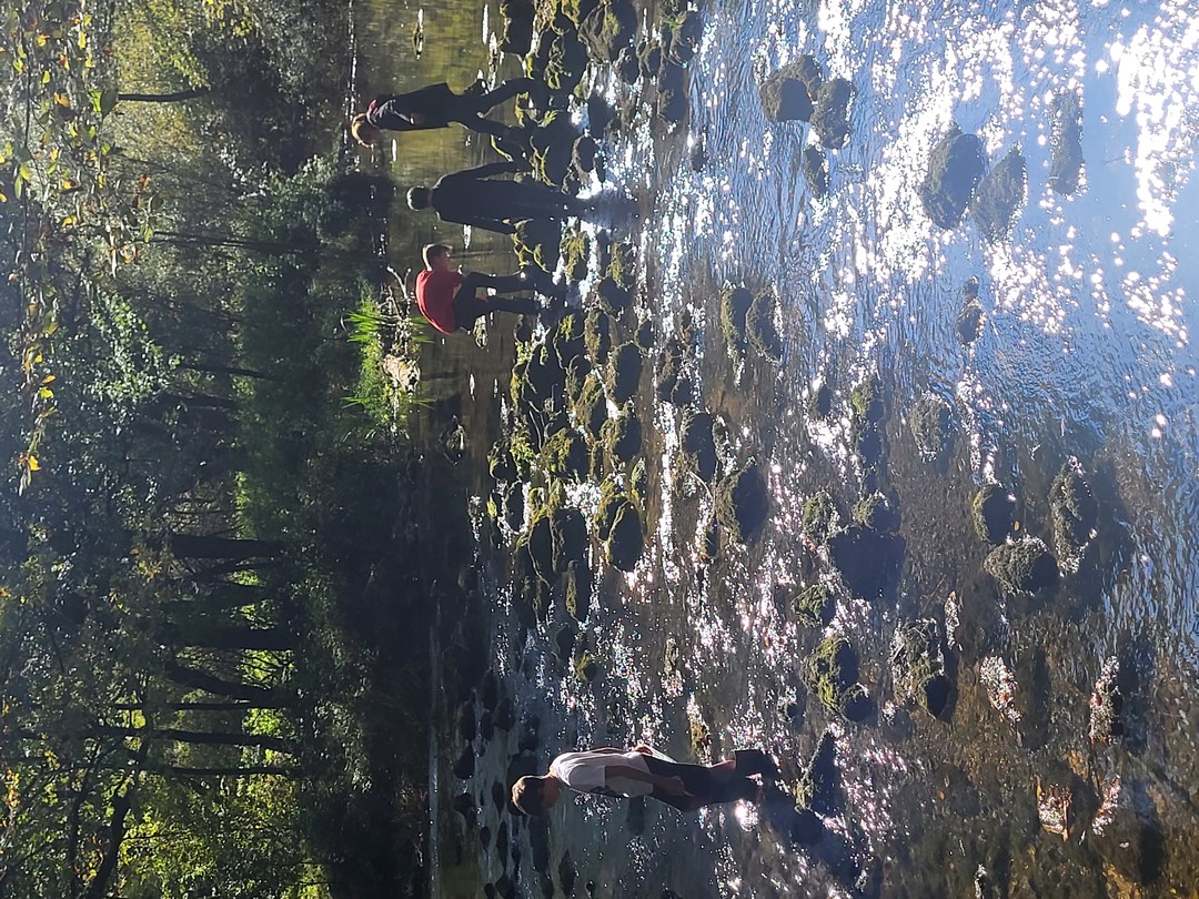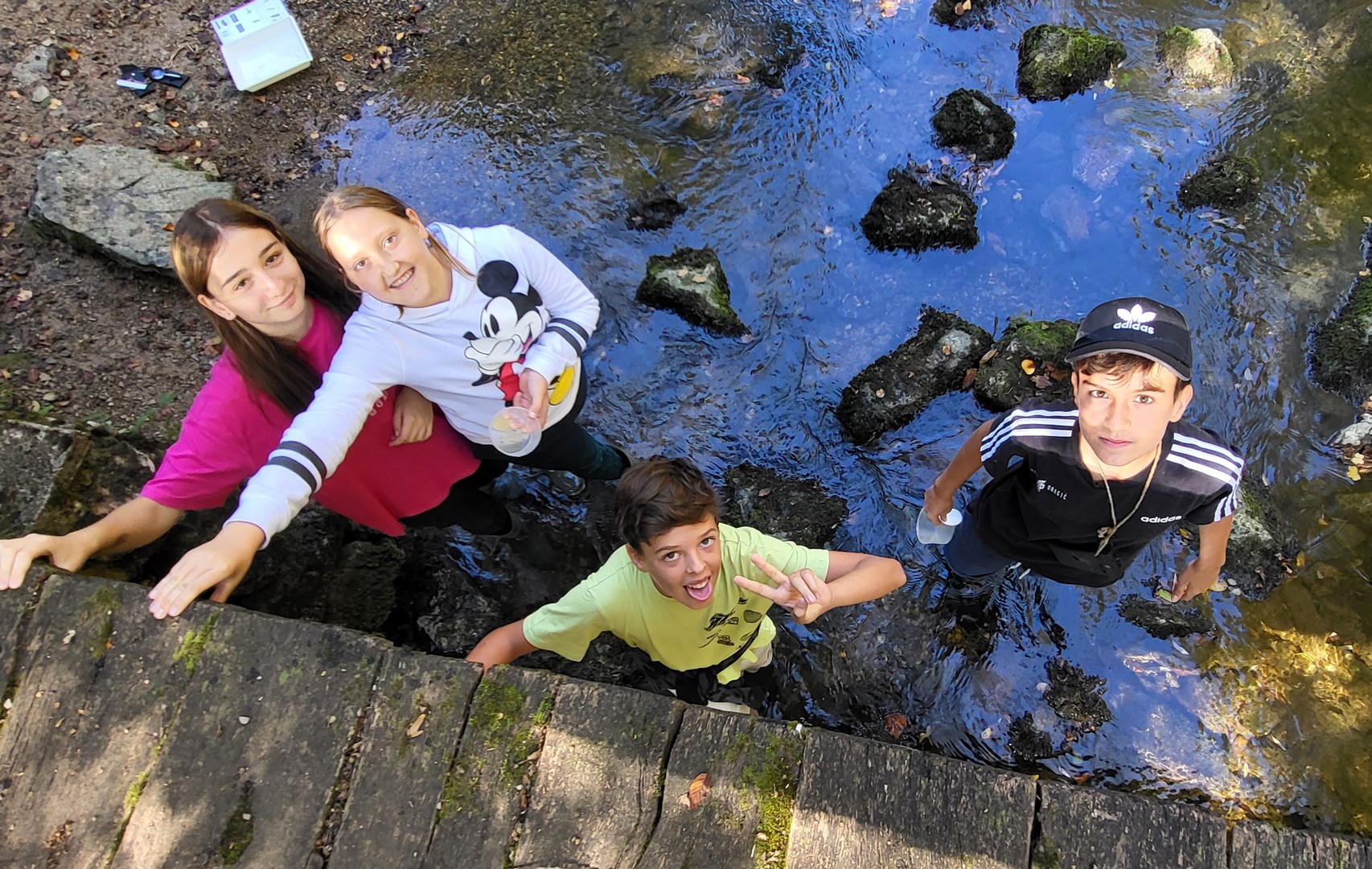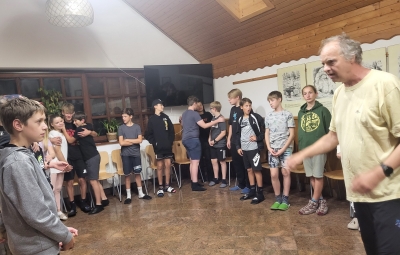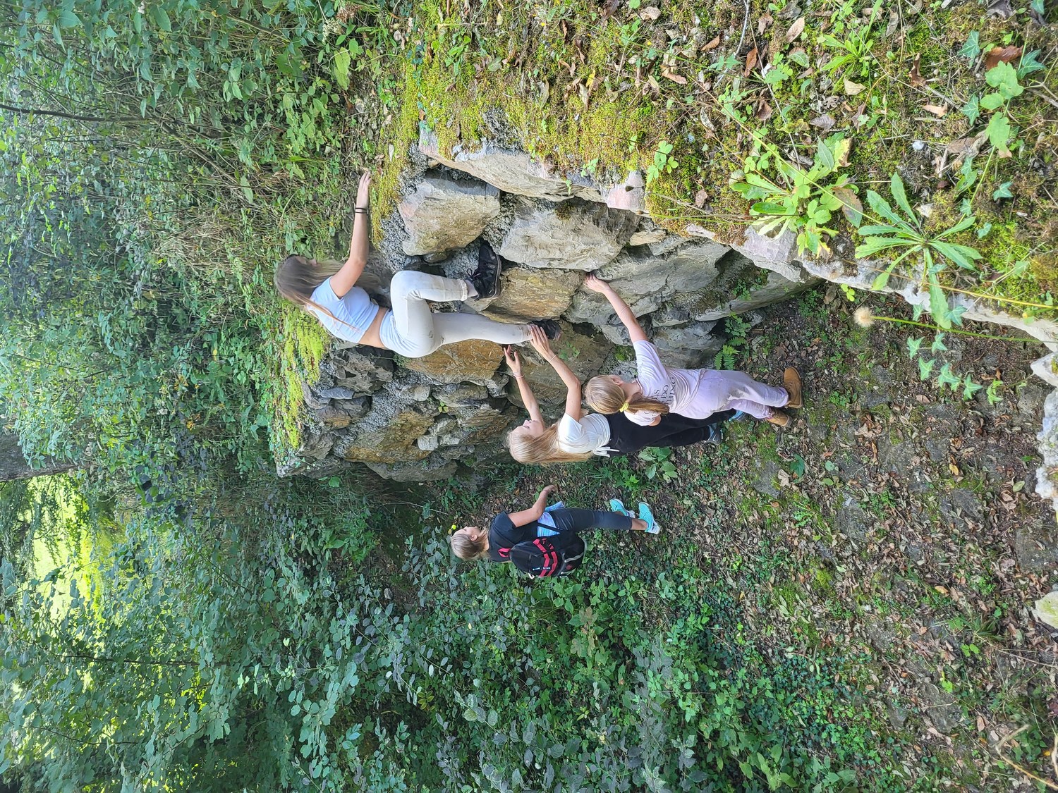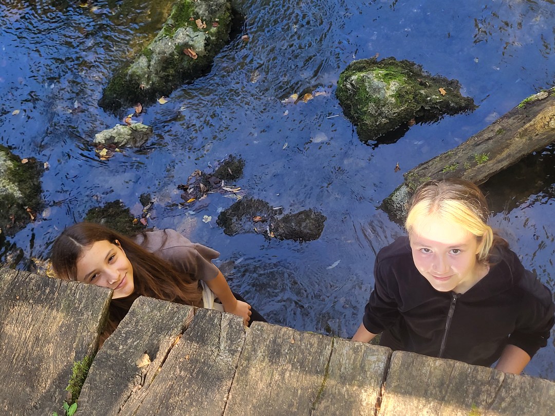 Prvi dan nam je postregel s čudovitim vremenom, zato smo ga izkoristili za raziskovanje kraških pojavov v okolici doma. Sprehodili smo se po gozdu in občudovali naravni most, ki ga je oblikovala reka Rak. Po njeni trenutno suhi strugi smo vstopili v Tkalca jamo in tudi raziskovali okoliške rove. Pester dan smo zaključili s pantomimo pod zvezdami.