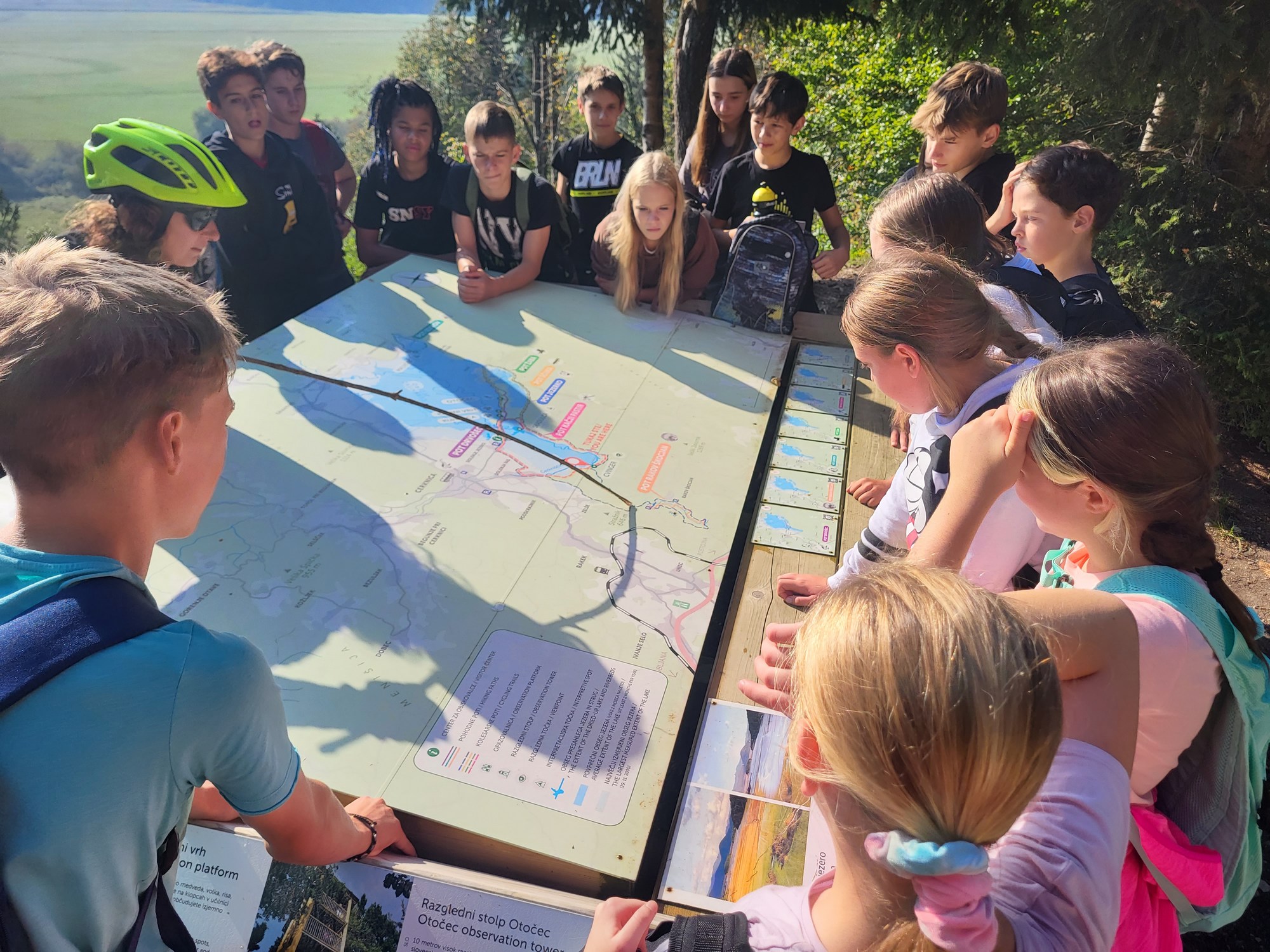 Po prvem skupnem zajtrku smo se razdelili v dve skupini. Ena je šla na ogled Zelških jam, druga pa se je s kolesi odpravila raziskovat okolico Cerkniškega jezera. Iskali smo ga dolgo in na koncu ugotovili, da »jezjera nej«.
