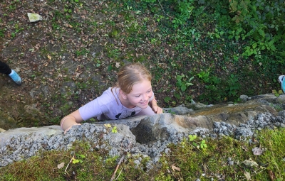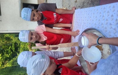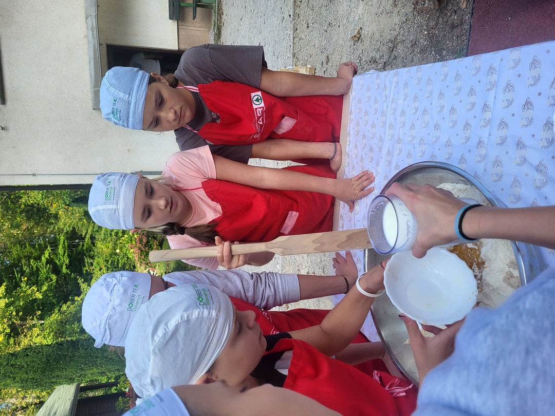 Nismo vam še povedali, da nas vsak dan zbudi jutranja telovadba, zato nam zajtrk še bolj tekne. Okrepčani smo prijeli za kajake in vesla ter se spustili po reki Rak. Raziskovali smo tudi rečni breg in iskali življenje v in ob reki. Po kosilu smo preizkusili svoje plezalne sposobnosti in se spustili po »zipline«. Imeli smo tudi kulinarično delavnico, kjer smo sami zamesili in spekli buhteljne.