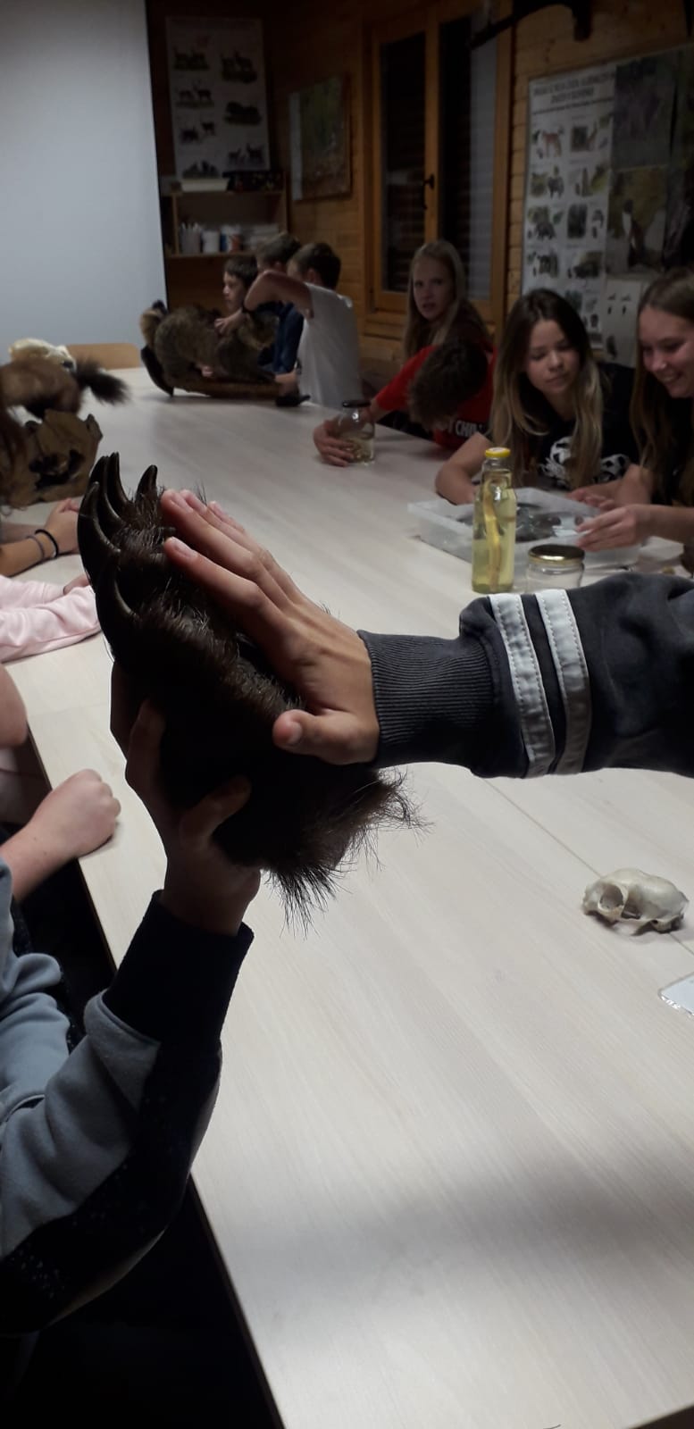 V gozd smo šli po kamero in pregledali posnetke živali in dogajanja tega tedna. Razveseljevale so nas predvsem kune. Po kosilu smo se poslovili od učiteljev in delavcev ter se polni vtisov odpeljali proti domu.