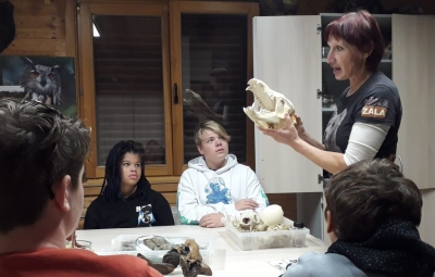 Po okusnem kosilu in počitku smo preizkusili svoje lokostrelske spretnosti, opazovali sledi živali v gozdu in učilnici. Zelo zanimivi so bili posnetki živali, ki jih je ujela nočna kamera.
