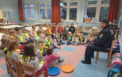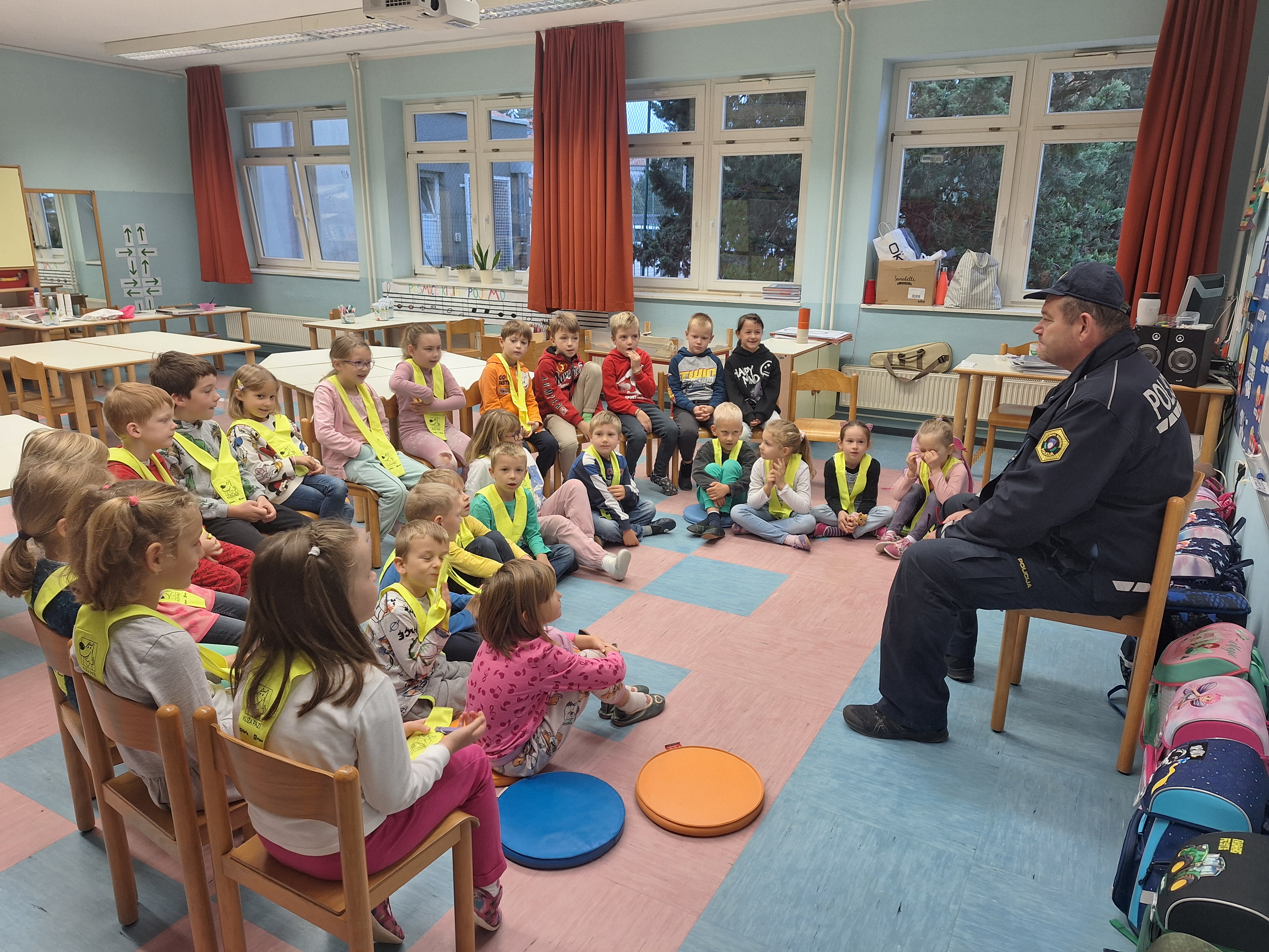 Pred nekaj dnevi nas je obiskal policist Samo, ki nas je spomnil, kako pravilno prečkati cesto. V tem tednu pa smo imeli prvošolci dan posvečen varnosti v prometu. Pogovarjali smo se o pomembnosti vidnosti na cesti, predvsem v jesenskih in zimskih mesecih, ko so dnevi krajši. Spoznali smo, kako pomembno je nositi svetla oblačila in odsevna telesa, da nas vozniki lažje opazijo.