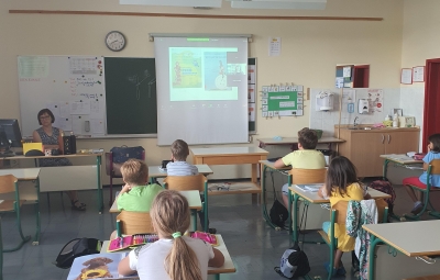 Vsi učenci naše šole smo se prvo šolsko uro posvetili tej temi. Povezali smo se preko ZOOM-a. Iz šolske knjižnice se je oglasila knjižničarka Ivanka. Prisluhnili smo voščilu BRALNI ZNAČKI za 60 let spodbujanja branja in se seznanili s štirimi stebri BRALNE ZNAČKE (Stanko Kotnik, Leopold Suhodolčan, Ivan Bizjak in Petra Dobrila). Razmišljali in zapisali smo, kaj nam pomeni knjiga. V nadaljevanju pa so nam učitelji brali Bevkova dela.