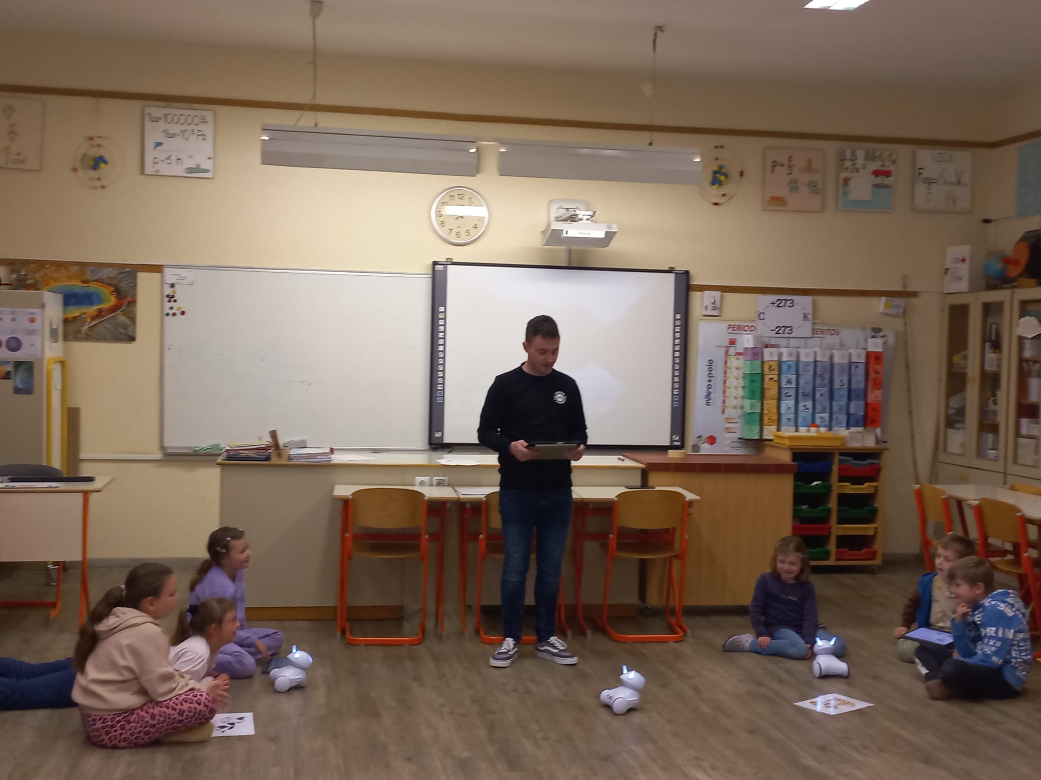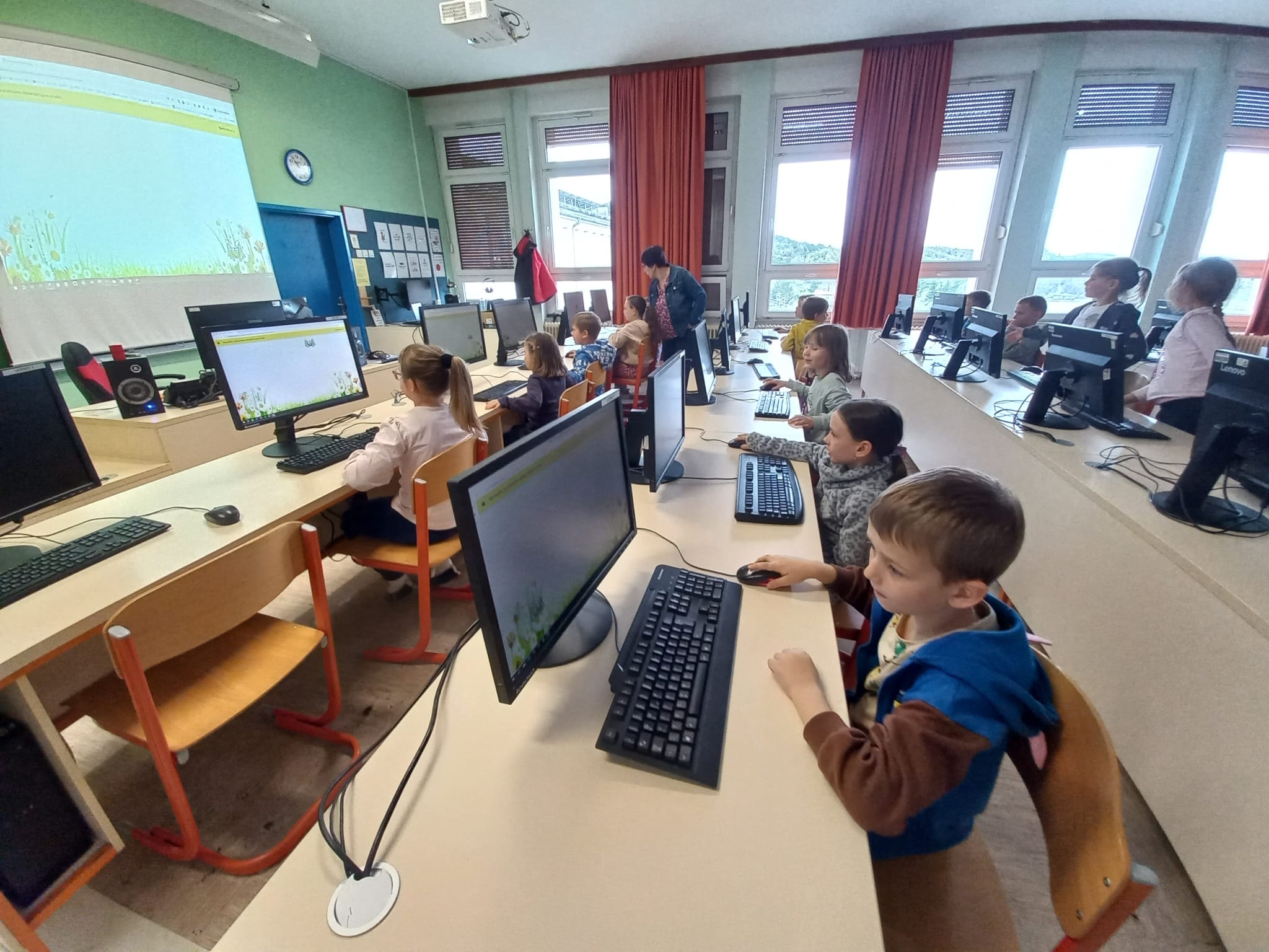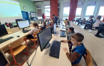 Drugošolci smo v četrtek, 26. 3. 2026, izvedli dan dejavnosti z naslovom Digitalni svet. Z učenci smo se pogovarjali o digitalnih napravah, s katerimi spletnimi stranmi so se že srečali ter kaj najpogosteje na digitalnih napravah počnejo. Nato smo se odpravili v računalniško učilnico, kjer so spoznali sestavne dele namiznega računalnika ter se učili uporabe levega in desnega klika miške. Spoznali in preizkusili so še robota, ki so ga upravljali prek tabličnega računalnika.