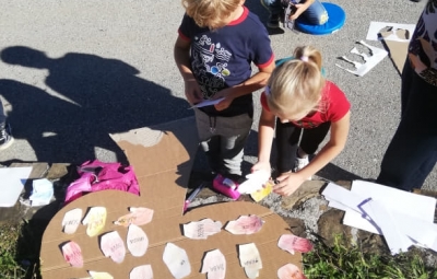 Tudi mi drugošolci smo se podali na lov za besedami. Vohali smo in iskali nove besede in jih zapisovali na jesenske liste, ki smo jih sami narisali, pobarvali, izrezali in prilepili na drevo. Naše drevo se je upogibalo od teže besed. Iz njih bomo sestavljali in zapisovali povedi, kdor bo imel veliko navdiha, pa bo lahko sestavil tudi zgodbico.