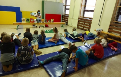 Učenci 2. razredov smo imeli kulturni dan KNJIŽNICA POD DREVESI. Obiskala nas je knjižničarka s knjižnimi junaki, ki smo jih drugošolci že dobro poznali. Knjižni junaki so želeli prisluhniti zgodbicama o Rokiju, prikupnem kužku, izpod peresa Tada Hillsa.