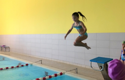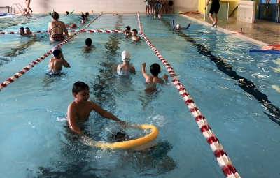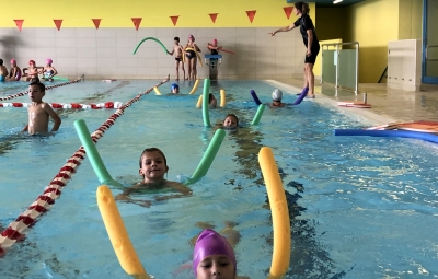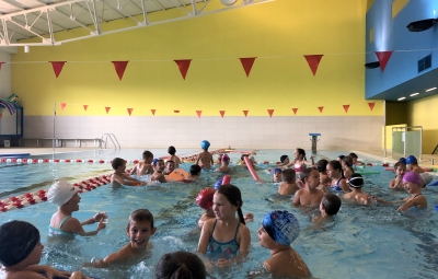 Drugošolci smo danes pričeli s plavalnim tečajem v Ajdovščini. Plavalni učitelji so nas na podlagi pokazanega znanja razdelili v homogene skupine, v katerih se bomo plavanja učili cel teden.