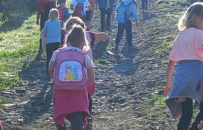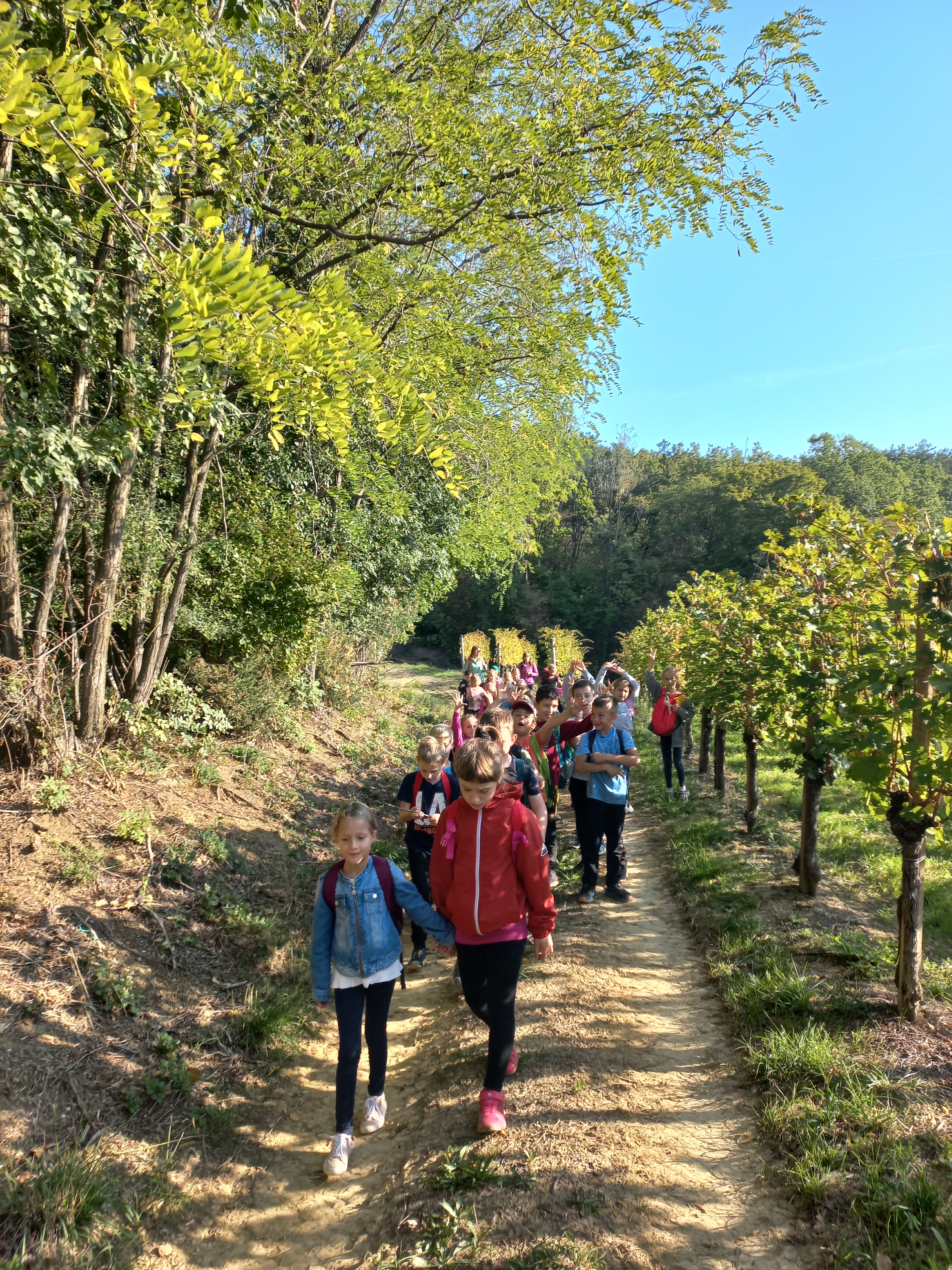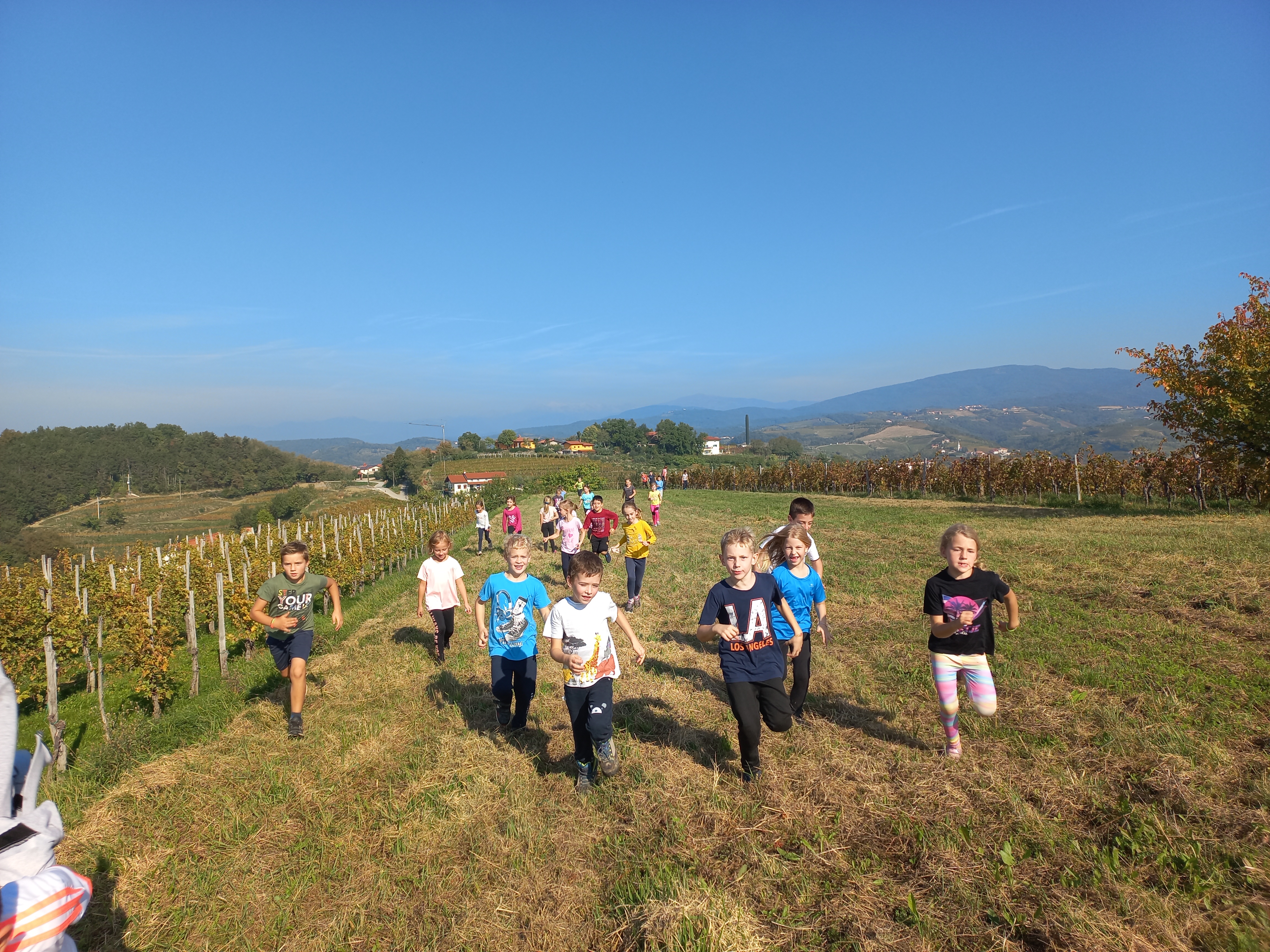 Pretekli teden smo se drugošolci odpravili na jesenski pohod. Šli smo čez grič po »navzgorščnjici« in proti dolini smo se spustili po »navzdoljšnjici«. Opazovali smo naravo, veselo preskakovali naravne ovire in uživali ob toplem jesenskem soncu. Z nami je bila tudi knjižničarka Ivanka, ki nas je razveselila s pravljico pisateljice Ide Mlakar Črnič Kako sta Bibi in Gusti prezvijačila hrib. Skupaj smo ugotovili, da so griči lepi z vseh strani.