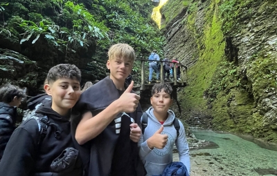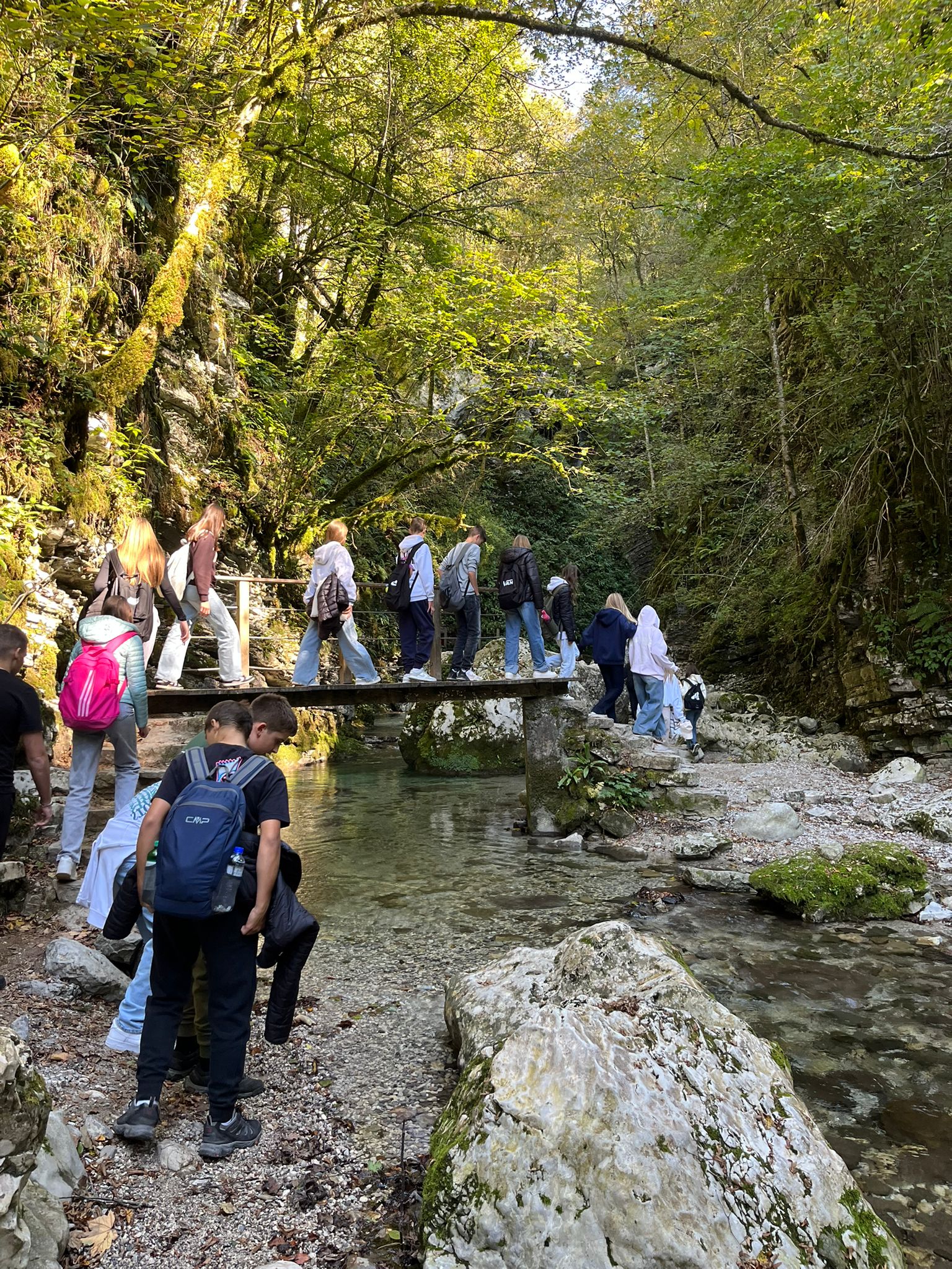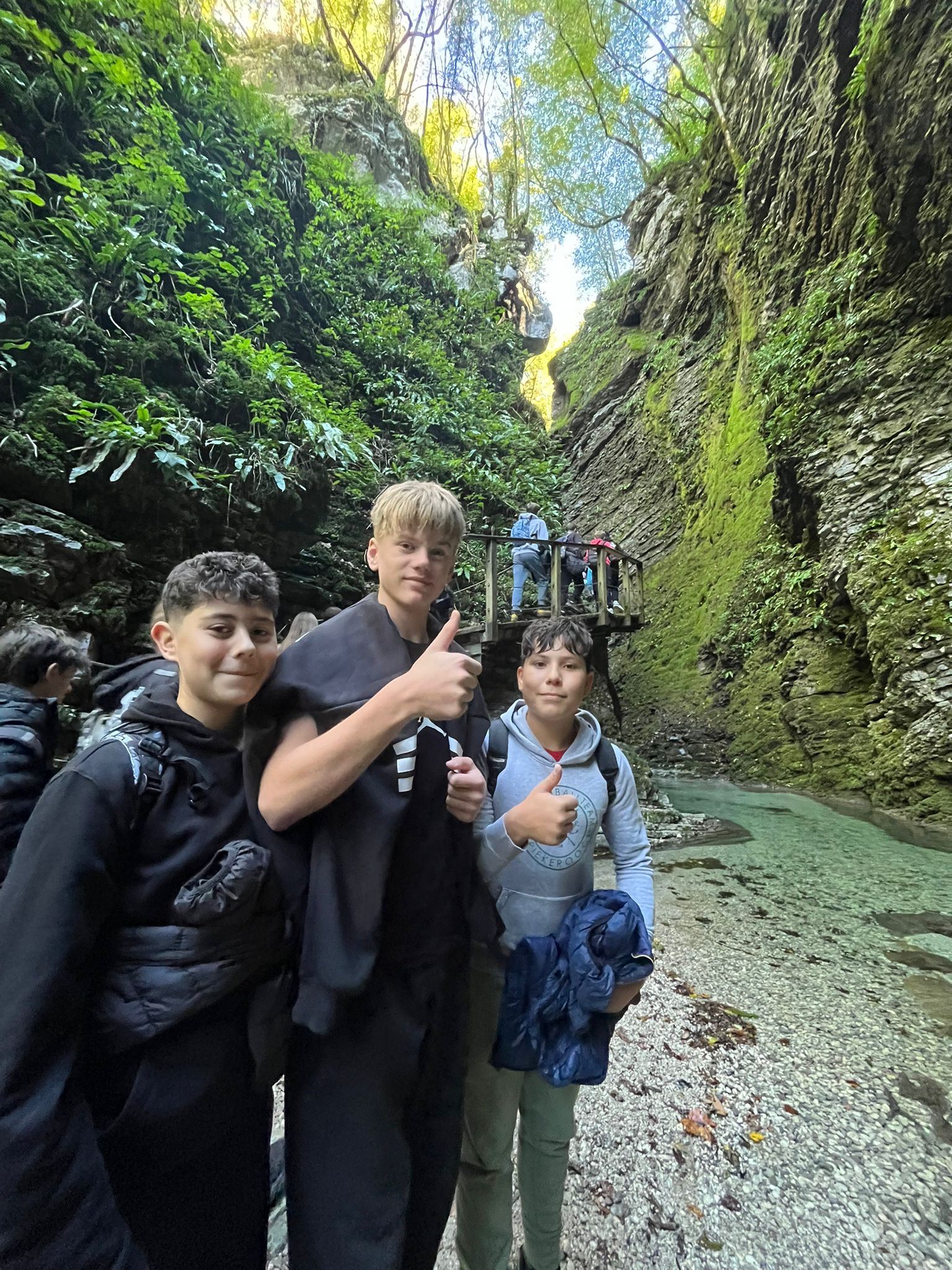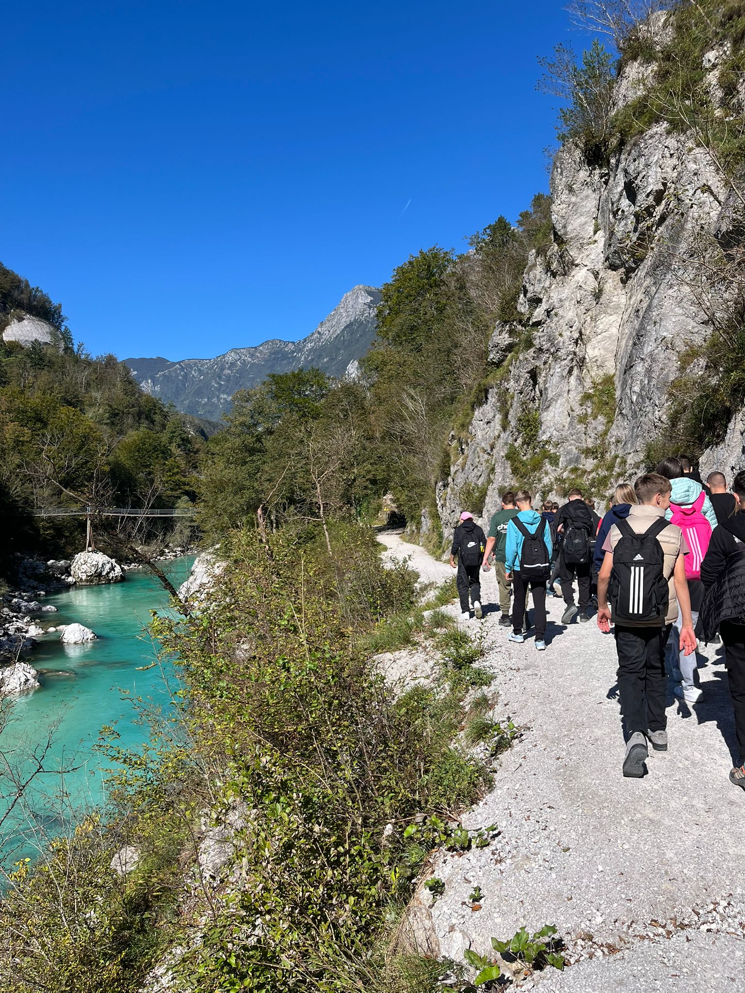 Naši devetošolci so se odpravili na zgodovinsko in naravoslovno obarvano ekskurzijo. Najprej so obiskali Muzej prve svetovne vojne v Kobaridu, kjer so izvedeli marsikatero zanimivost o dogajanju na soški fronti. Pot jih je nato vodila do mogočne kostnice nad Kobaridom, kjer so se ustavili ob razgledu, ki je skoraj tako dih jemajoč kot njihova kondicija ob vzponu.