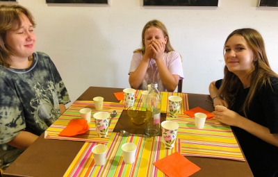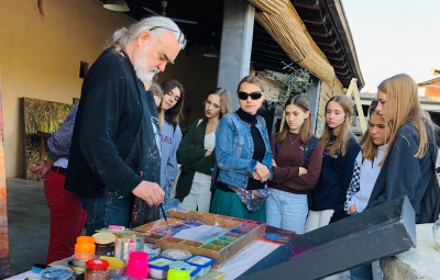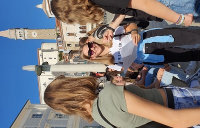 Naše druženje se počasi zaključuje. Danes smo najprej imeli delavnico, kjer smo izdelovali skupni koledar, nato pa smo se odpravili na lepše. Na domačiji Baša v Dornberku smo se pridružili umetnikom, ki na domačiji ustvarjajo v okviru projekta Art Circle. Tudi mi smo imeli priložnost, da je izpod naših rok nastalo skupno umetniško delo. Po okusnem domačem kosilu na kmetiji nas je zaneslo še v Ljubljano, kjer smo najprej z vodičem, nato pa še sami, odkrivali zanimive kotičke v Ljubljani. Za piko na i smo v večernih urah postali še na Trgu Evropa med obema Goricama. Na trg nas je prišla pozdraviti tudi predstavnica projekta Go 2025 Nova Gorica-Gorizia. Dan je bil dolg, a lep.