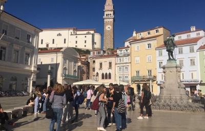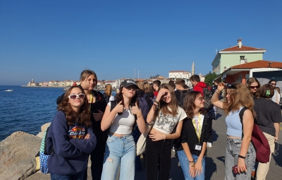 V sredo smo zapustili Brda in se odpravili proti slovenski obali. Naša prva postaja pred morjem so bil Park Škocjanske jame, kjer smo imeli voden ogled podzemnih lepotic kraškega sveta. Naše spoznavanje slovenske kulturne dediščine smo nadaljevali v Piranu. Jadranski biser smo odkrivali s pomočjo nalog, ki so nas peljale od znamenitosti do znamenitosti, pri tem pa smo posneli zanimive video razglednice.