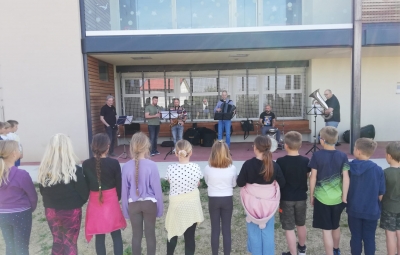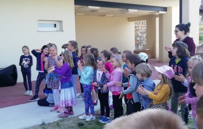 Obiskali so nas učitelji Glasbene šole Nova Gorica. Predstavili so nam glasbila ter zaigrali nekaj skladb. Pozibavali in ploskali smo ob ritmu glasbe. Bilo nam je tako lepo, da bi še kar poslušali in poslušali ... Glasbeniki, hvala vam in ponovno vabljeni!