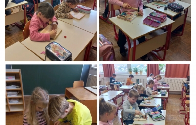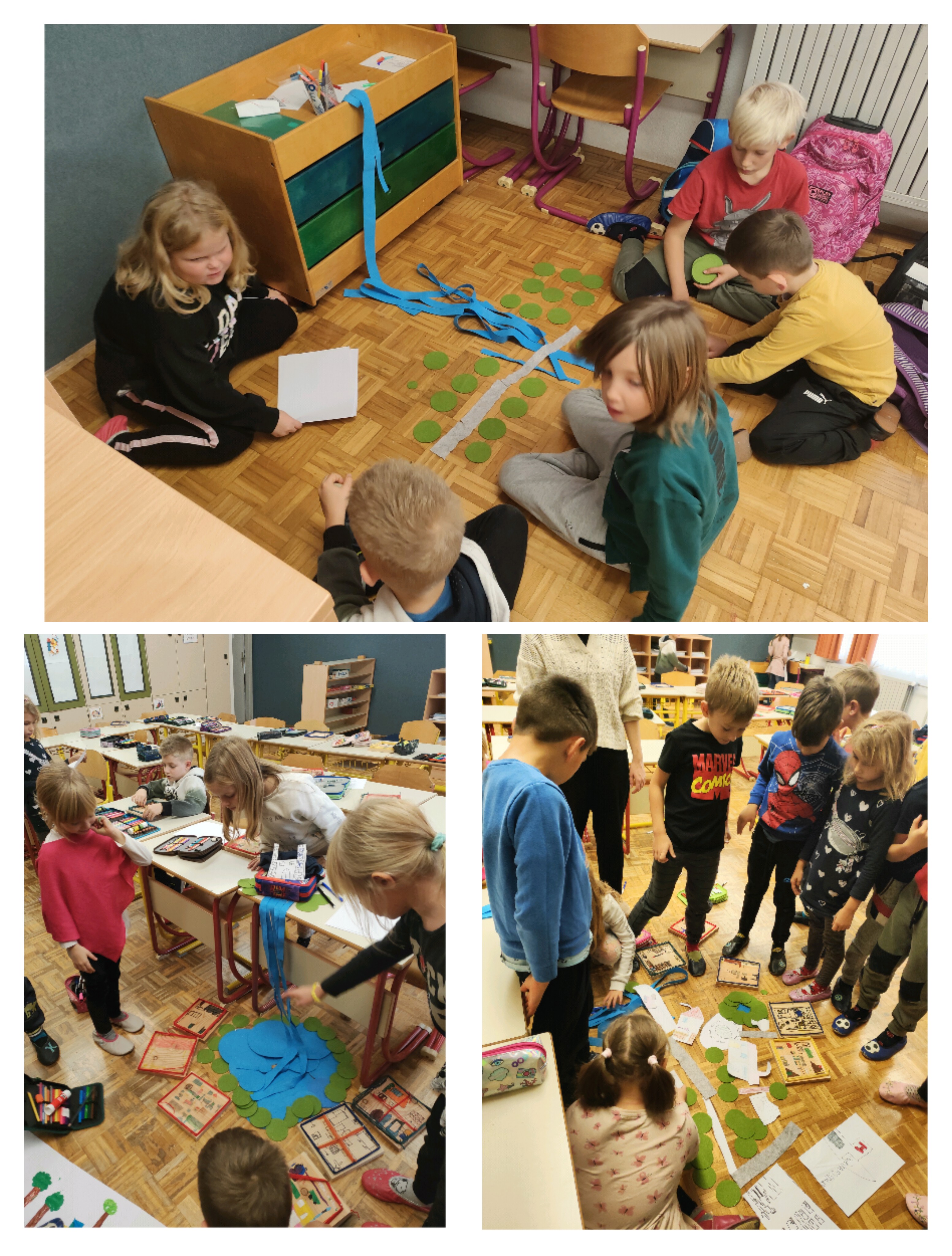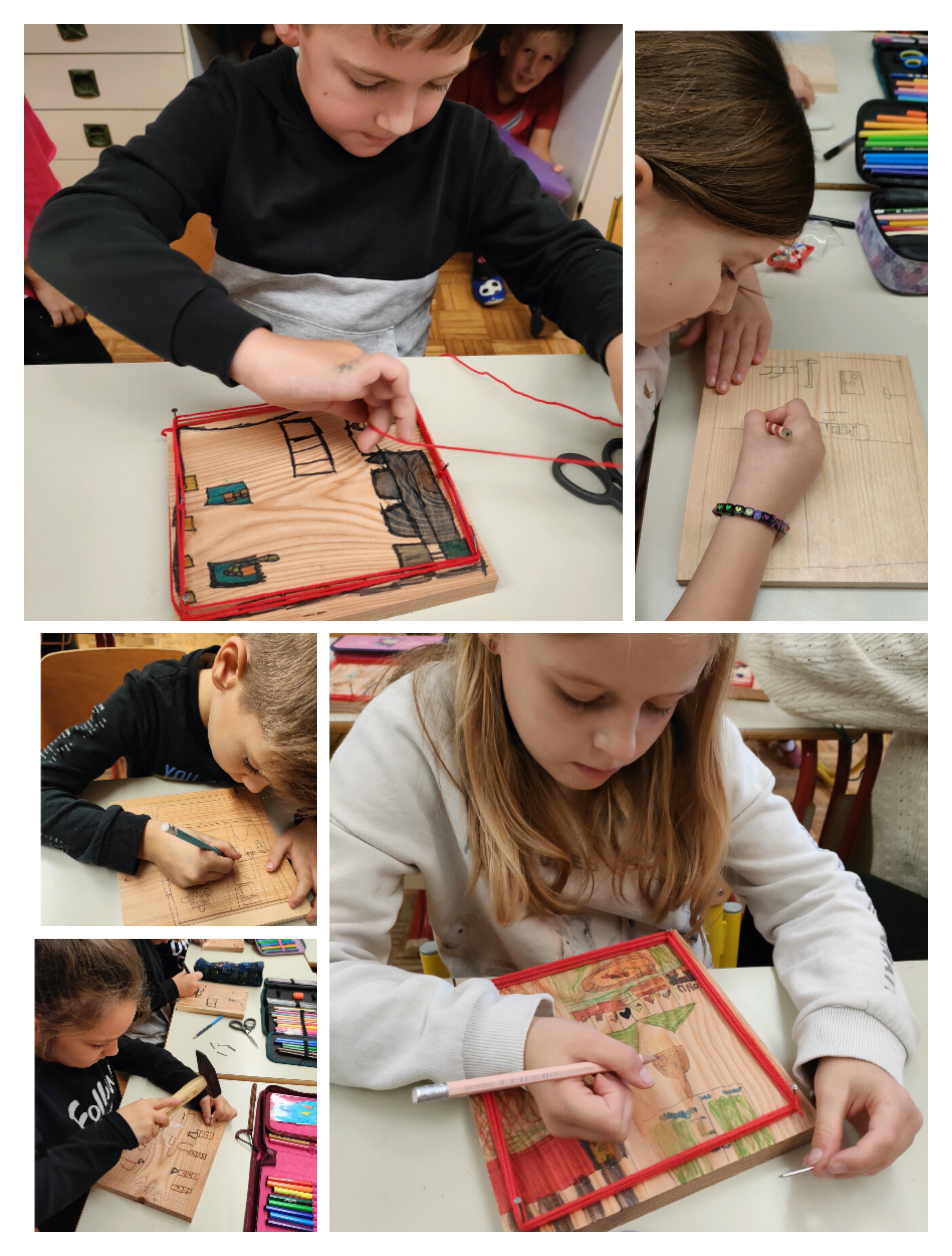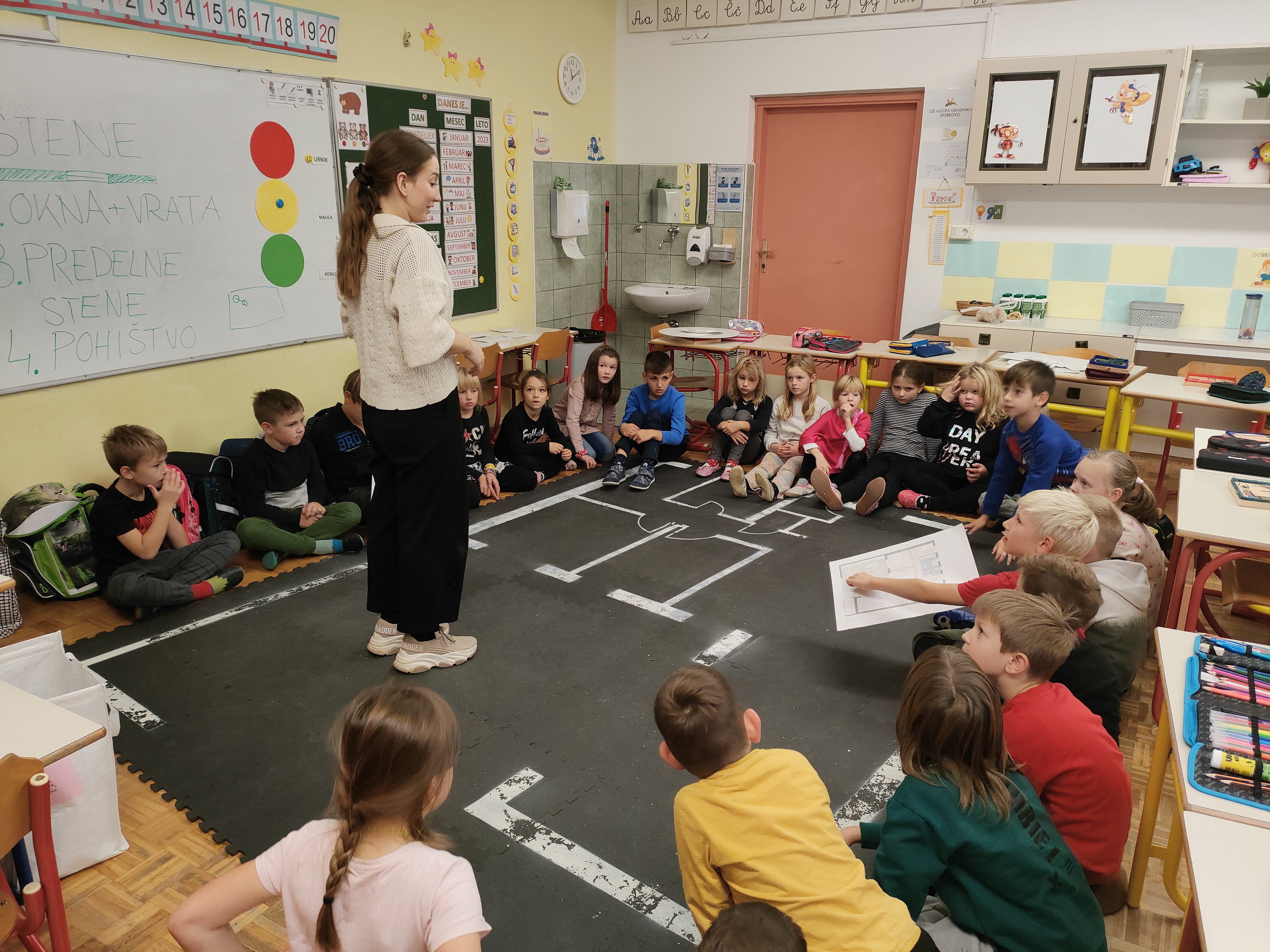 Danes smo drugošolci na tehniškem dnevu Igriva arhitektura skozi poučne delavnice spoznali delo arhitekta, vrste zgradb in tloris. Na les smo narisali tloris sanjske hiše, ki smo ga omejili z žeblji in prepletli z volno. Na tleh smo sestavili velik tloris stanovanja in ga opremili s pohištvom ter dan zaključili z oblikovanjem ulice, v katero smo umestili svoje sanjske hiše.