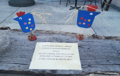 V spomladanskem času, v času pred velikonočnimi prazniki, smo se učenci in učitelji spomnili na starostnike Doma upokojencev v Podsabotinu. Učenci so pod mentorstvom učiteljev ustvarili izdelke, ki so krasili njihove prostore in jih spominjali na otroštvo, mladost in praznovanja.