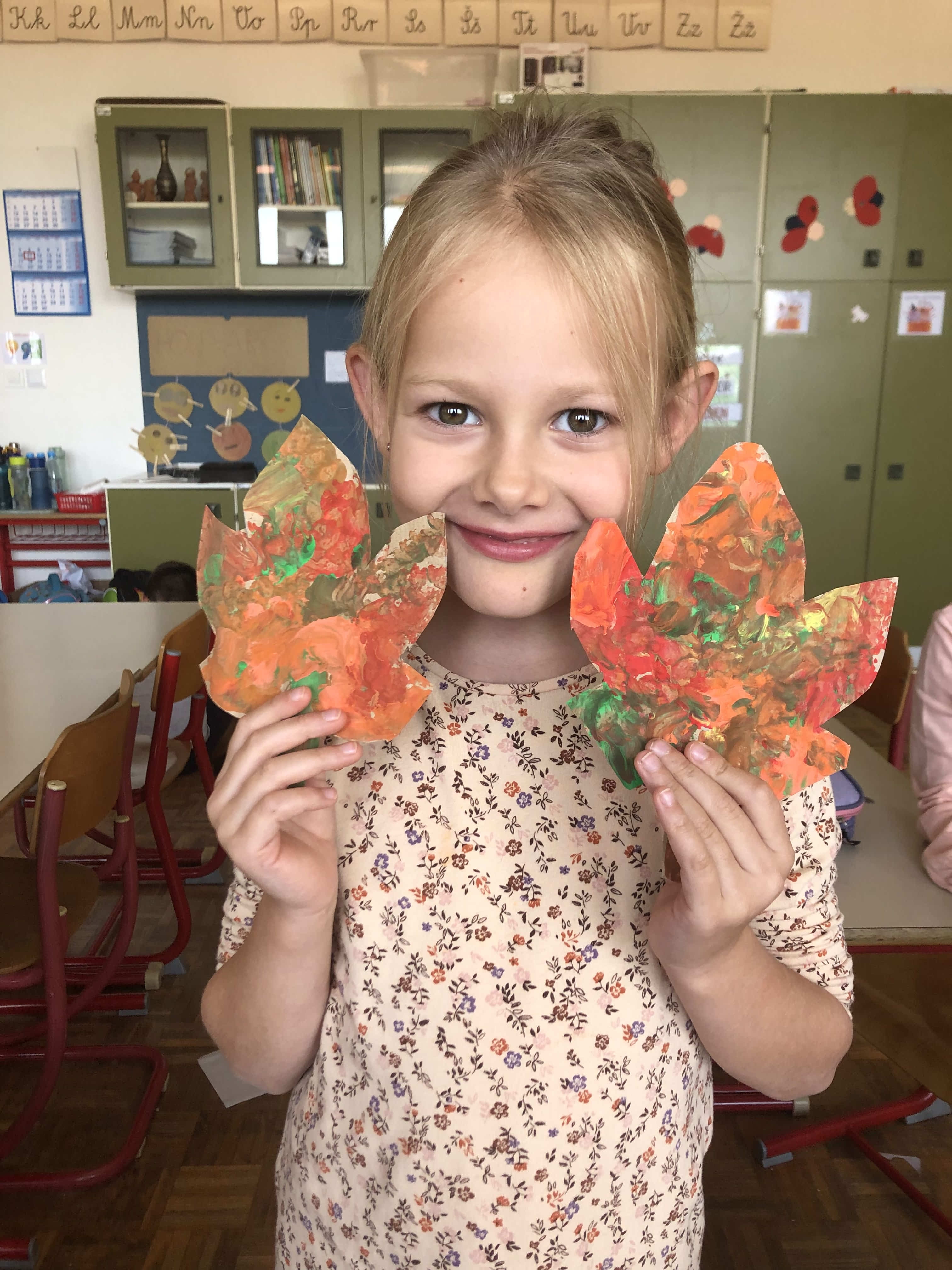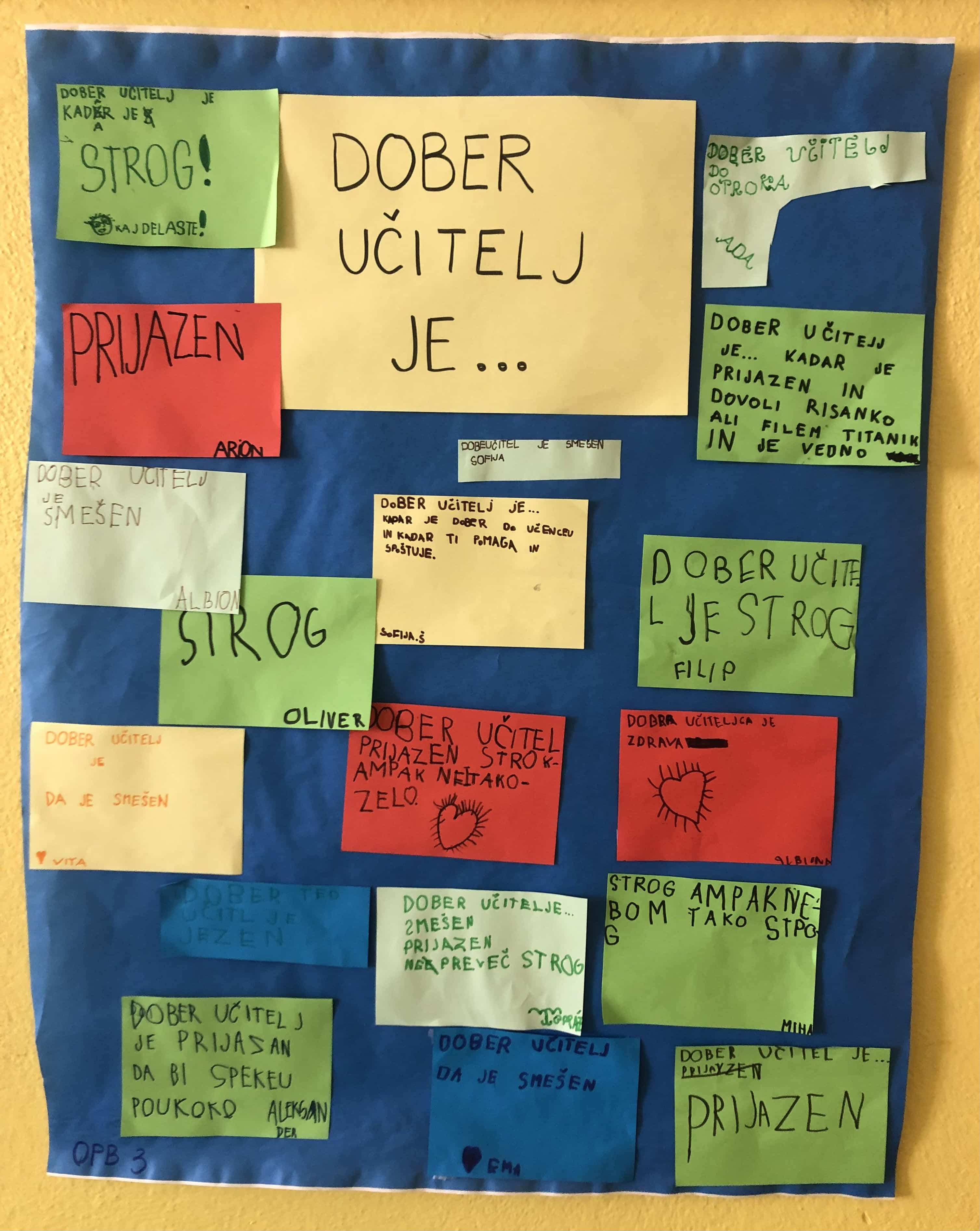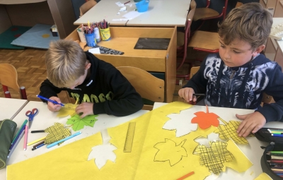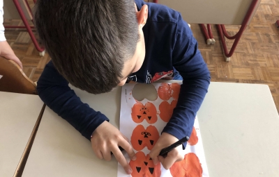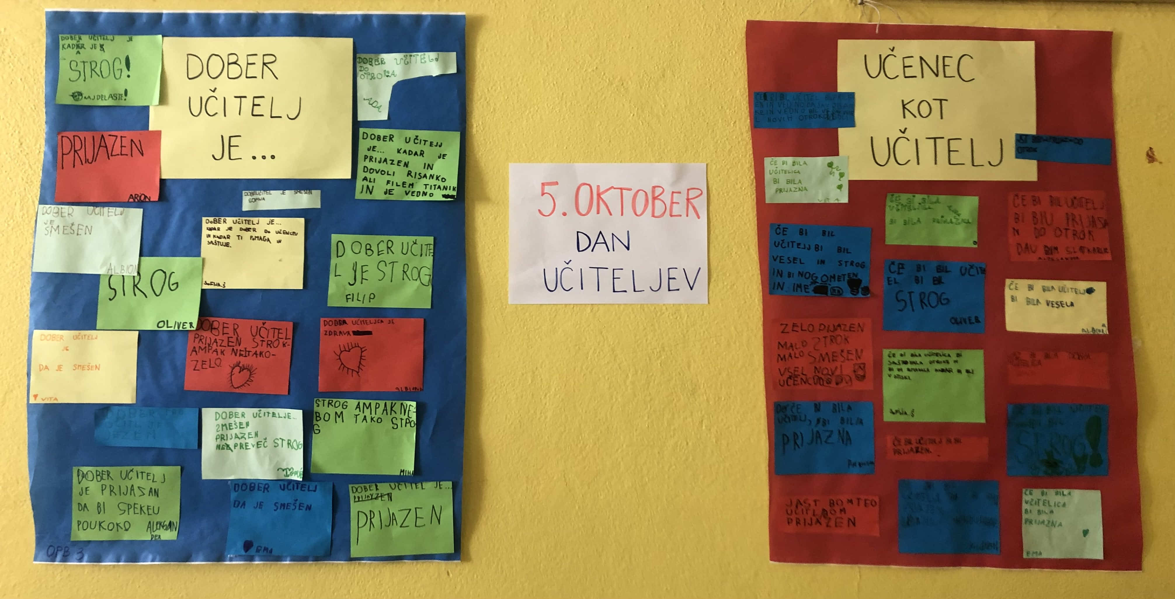 Topla jesen v mesecu oktobru nam je učenecm podaljšanega bivanja omogočila, da smo čim več dejavnosti opravili zunaj. Začeli smo s Tednom otroka, v katerem smo imeli različne dejavnosti, najbolj pa nam je bilo všeč učenje pletenja različnih zapestnic. Spletli smo jih zase, za svoje prijatelje in družinske člane. 5. oktobra smo se spomnili tudi na Dan učiteljev, se pogovarjali o tem, kakšen je dober učitelj in si predstavljali, kakšni bi bili mi - učenci kot učitelji. Seveda pa ni zmanjkalo časa tudi za jesensko ustvarjanje. S skupnimi močmi in ostalimi skupinami OPB smo okrasili šolske panoje.