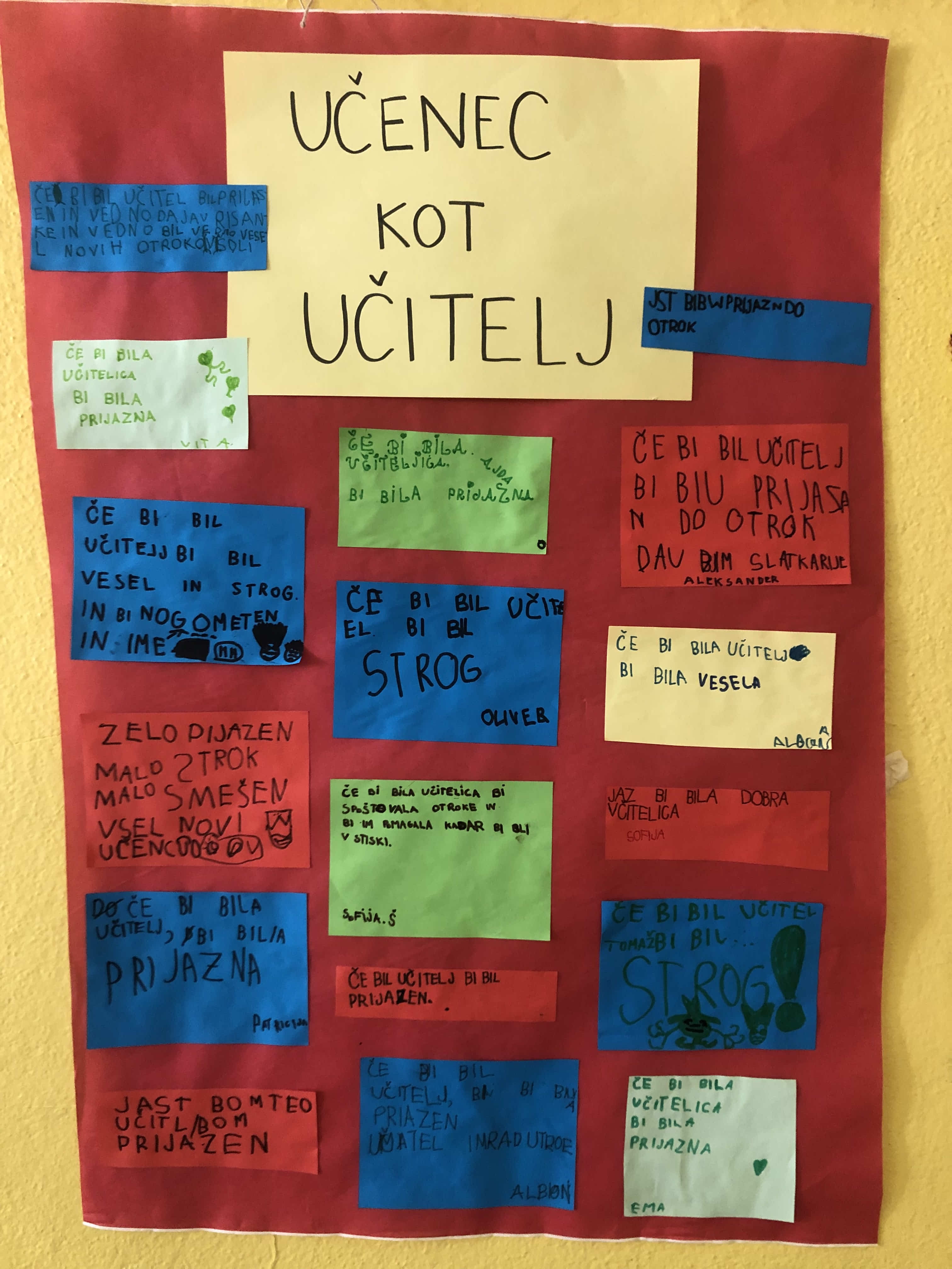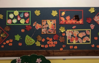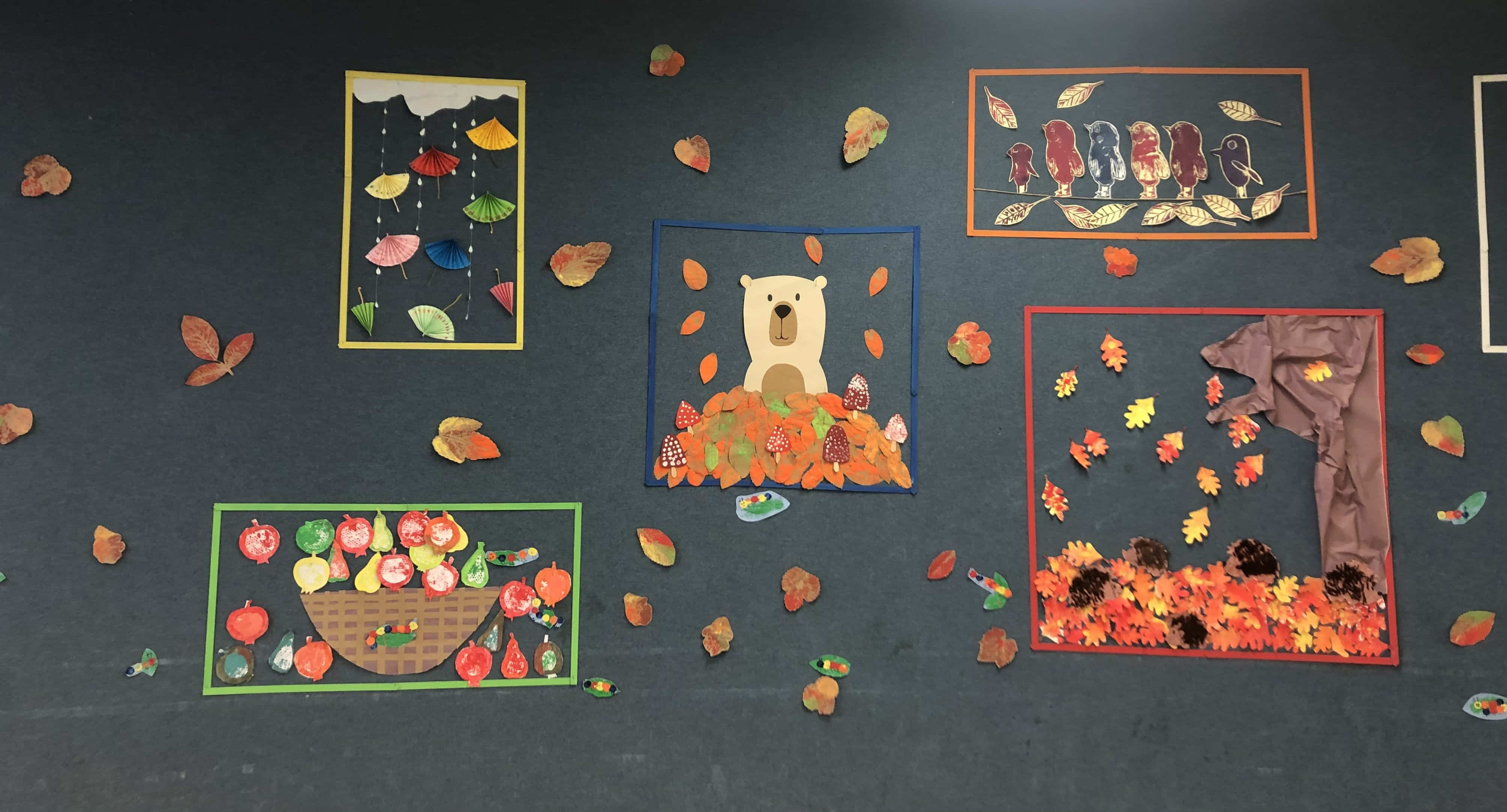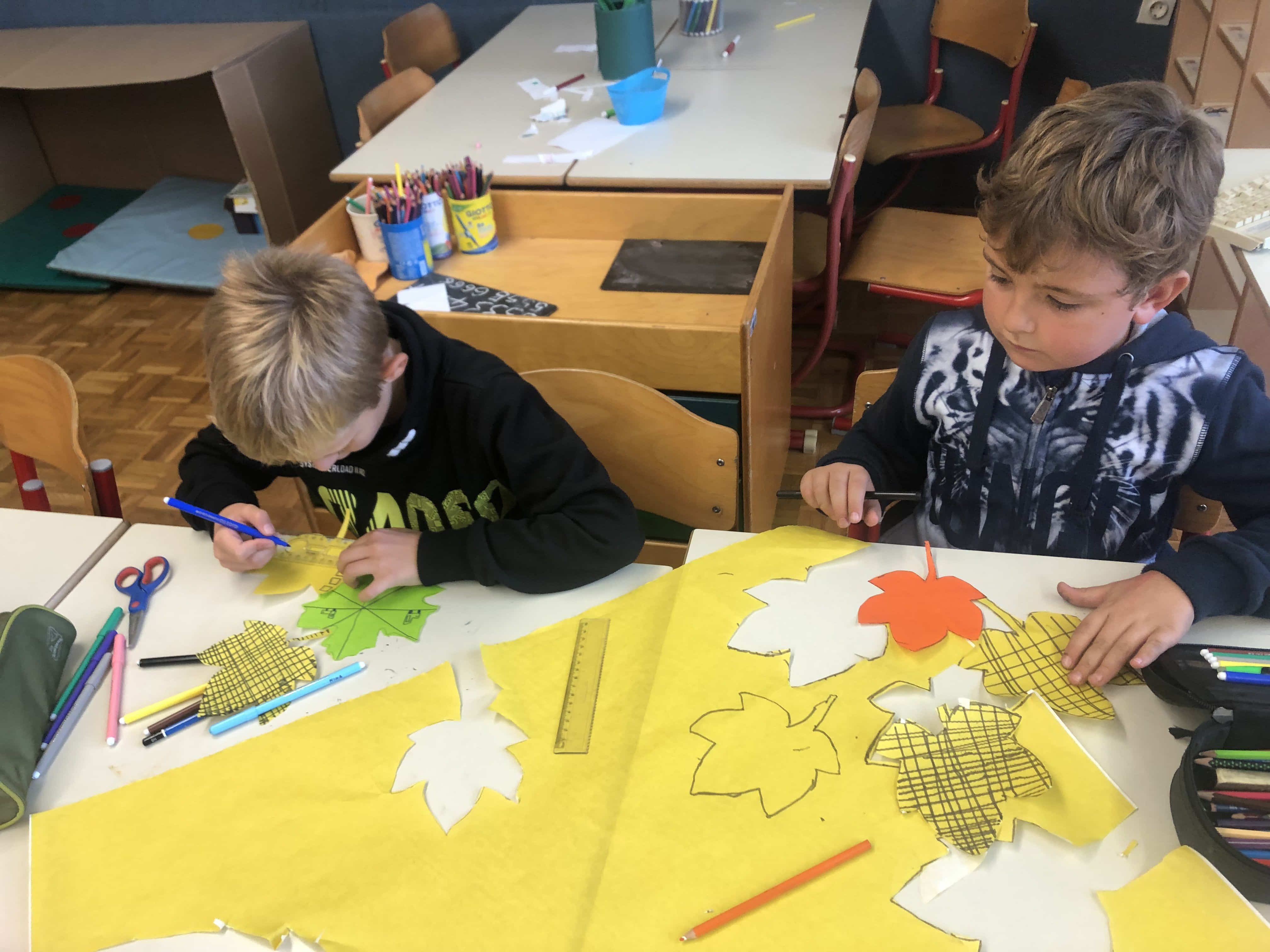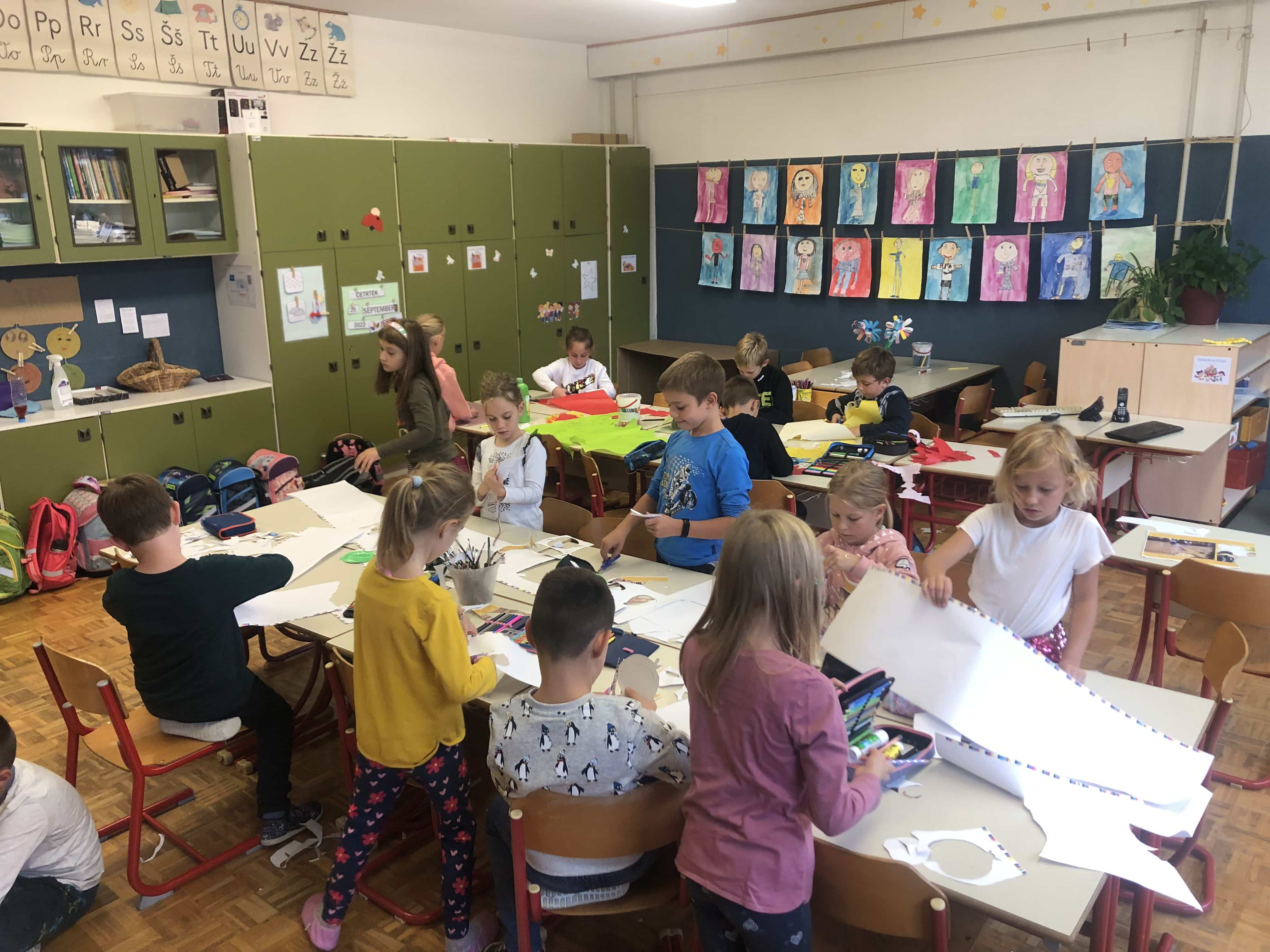Topla jesen v mesecu oktobru nam je učenecm podaljšanega bivanja omogočila, da smo čim več dejavnosti opravili zunaj. Začeli smo s Tednom otroka, v katerem smo imeli različne dejavnosti, najbolj pa nam je bilo všeč učenje pletenja različnih zapestnic. Spletli smo jih zase, za svoje prijatelje in družinske člane. 5. oktobra smo se spomnili tudi na Dan učiteljev, se pogovarjali o tem, kakšen je dober učitelj in si predstavljali, kakšni bi bili mi - učenci kot učitelji. Seveda pa ni zmanjkalo časa tudi za jesensko ustvarjanje. S skupnimi močmi in ostalimi skupinami OPB smo okrasili šolske panoje.