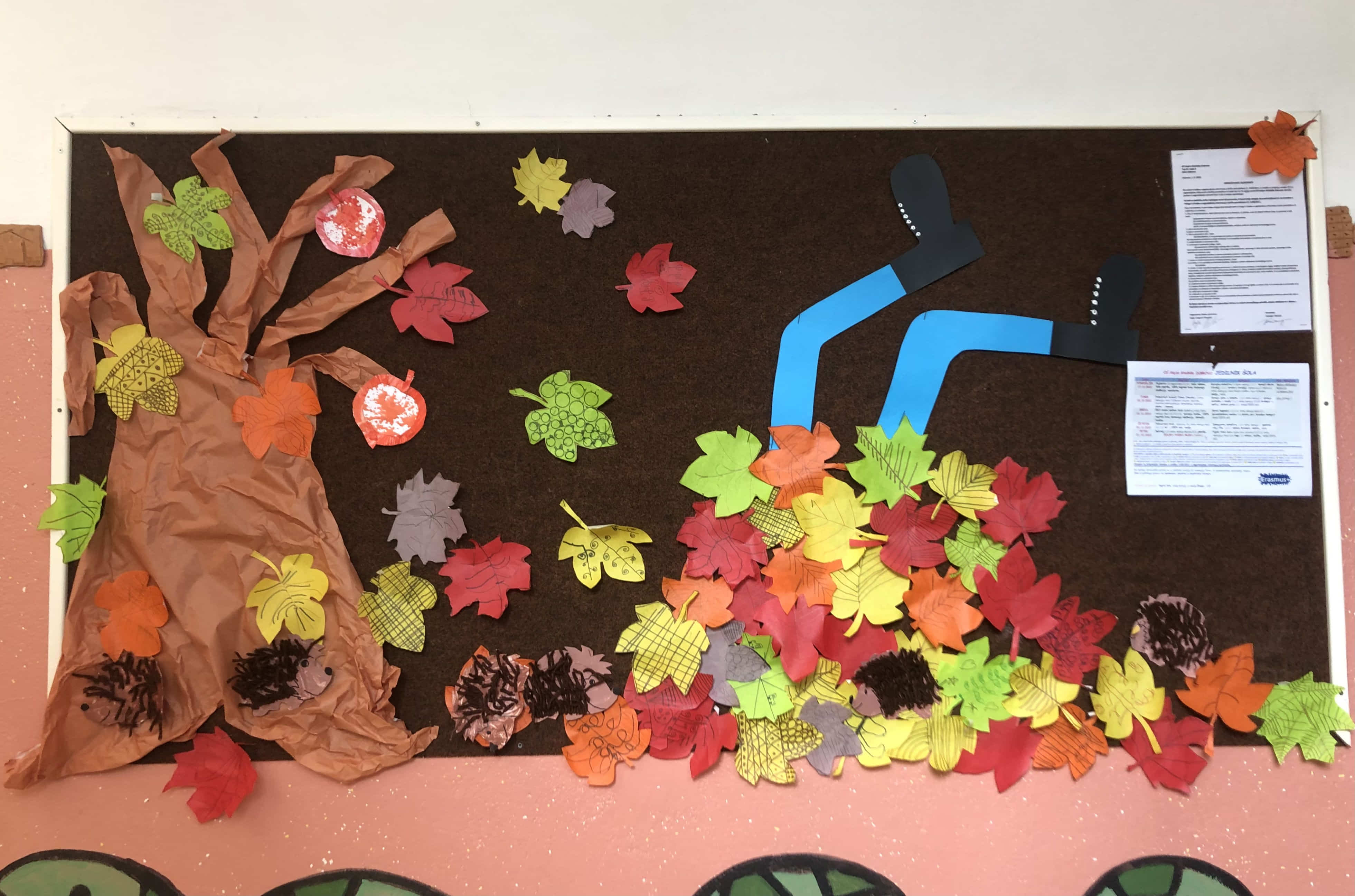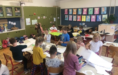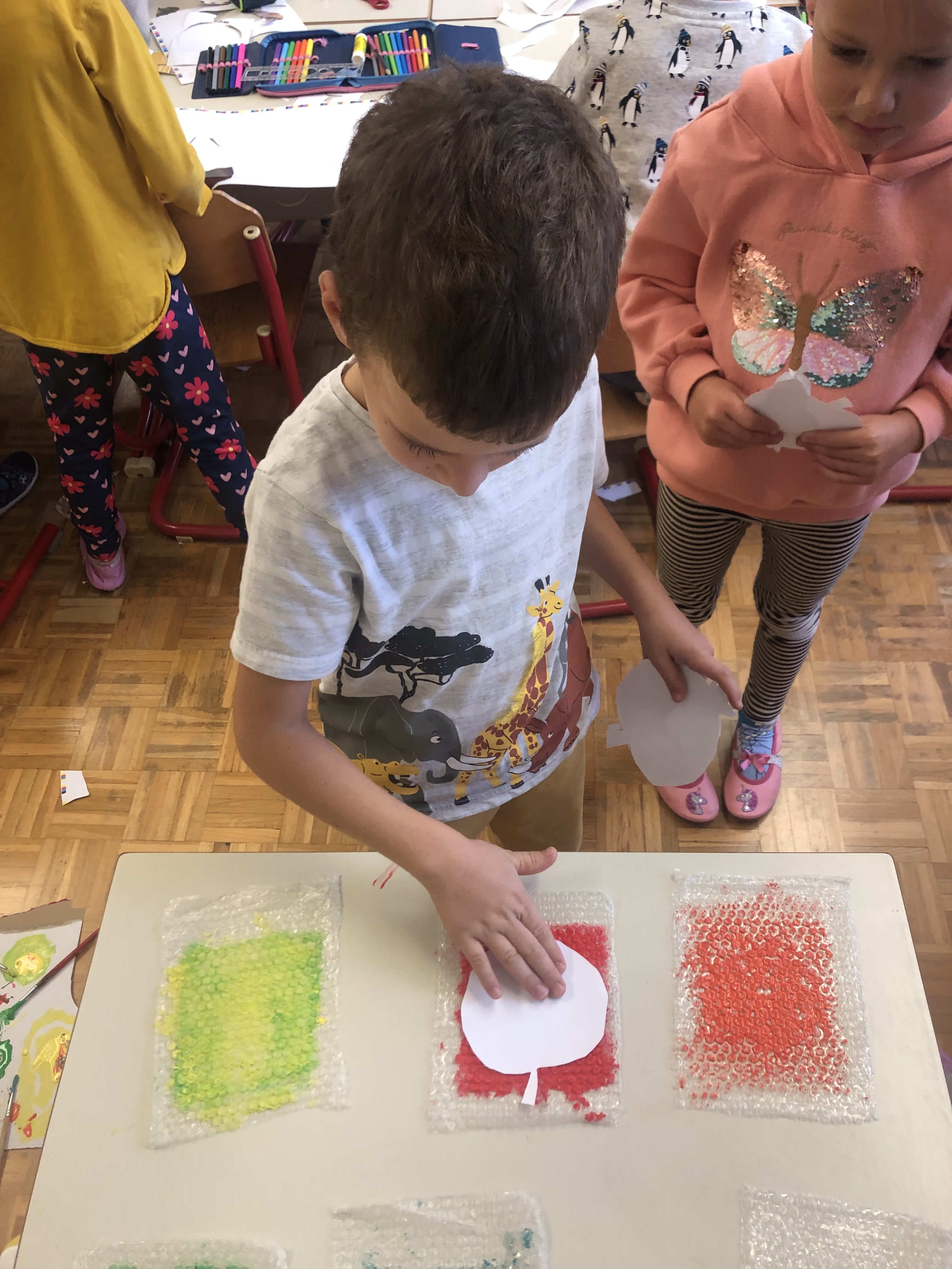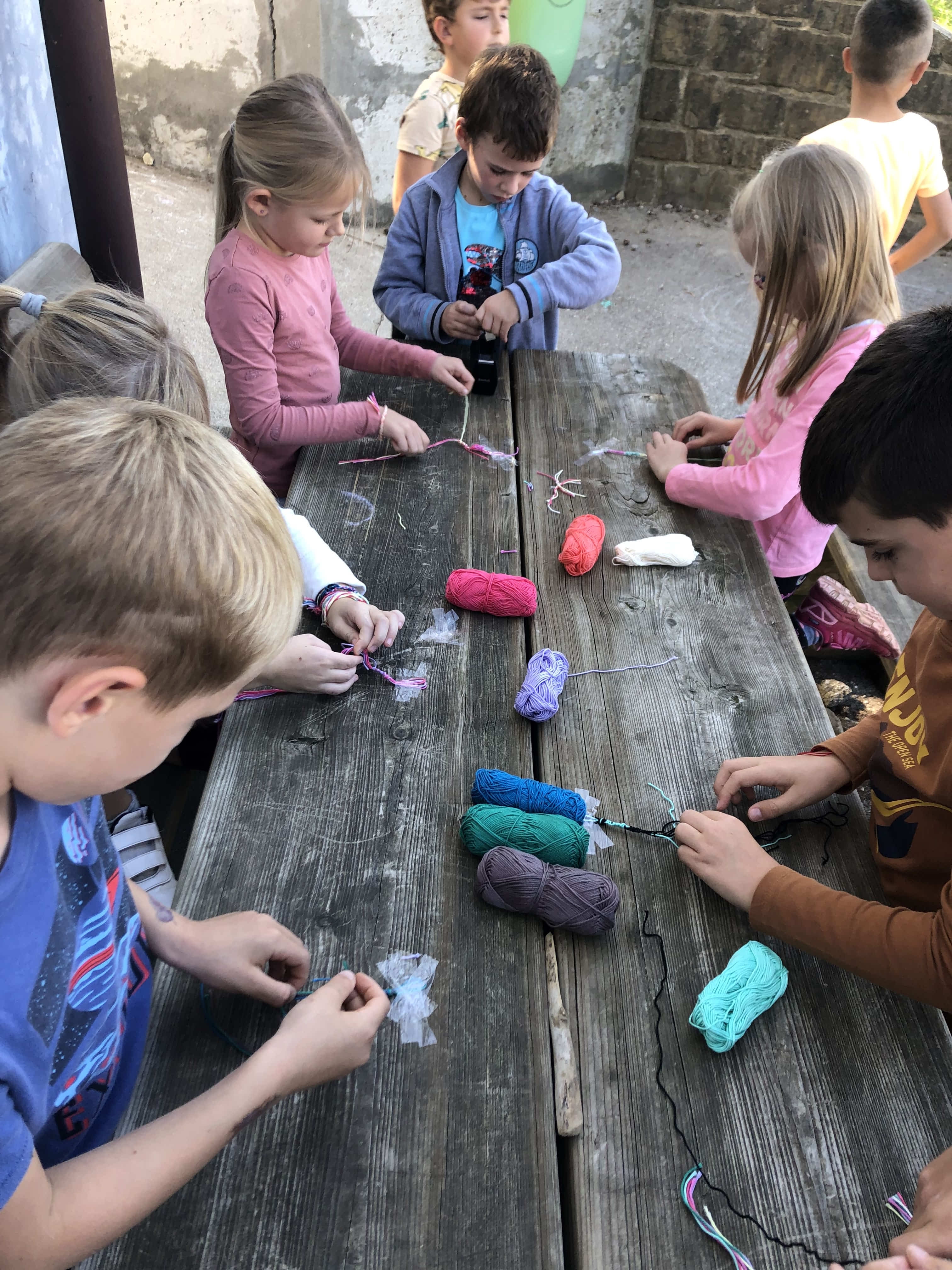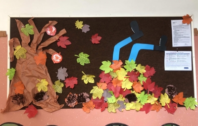 Topla jesen v mesecu oktobru nam je učenecm podaljšanega bivanja omogočila, da smo čim več dejavnosti opravili zunaj. Začeli smo s Tednom otroka, v katerem smo imeli različne dejavnosti, najbolj pa nam je bilo všeč učenje pletenja različnih zapestnic. Spletli smo jih zase, za svoje prijatelje in družinske člane. 5. oktobra smo se spomnili tudi na Dan učiteljev, se pogovarjali o tem, kakšen je dober učitelj in si predstavljali, kakšni bi bili mi - učenci kot učitelji. Seveda pa ni zmanjkalo časa tudi za jesensko ustvarjanje. S skupnimi močmi in ostalimi skupinami OPB smo okrasili šolske panoje.