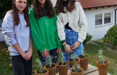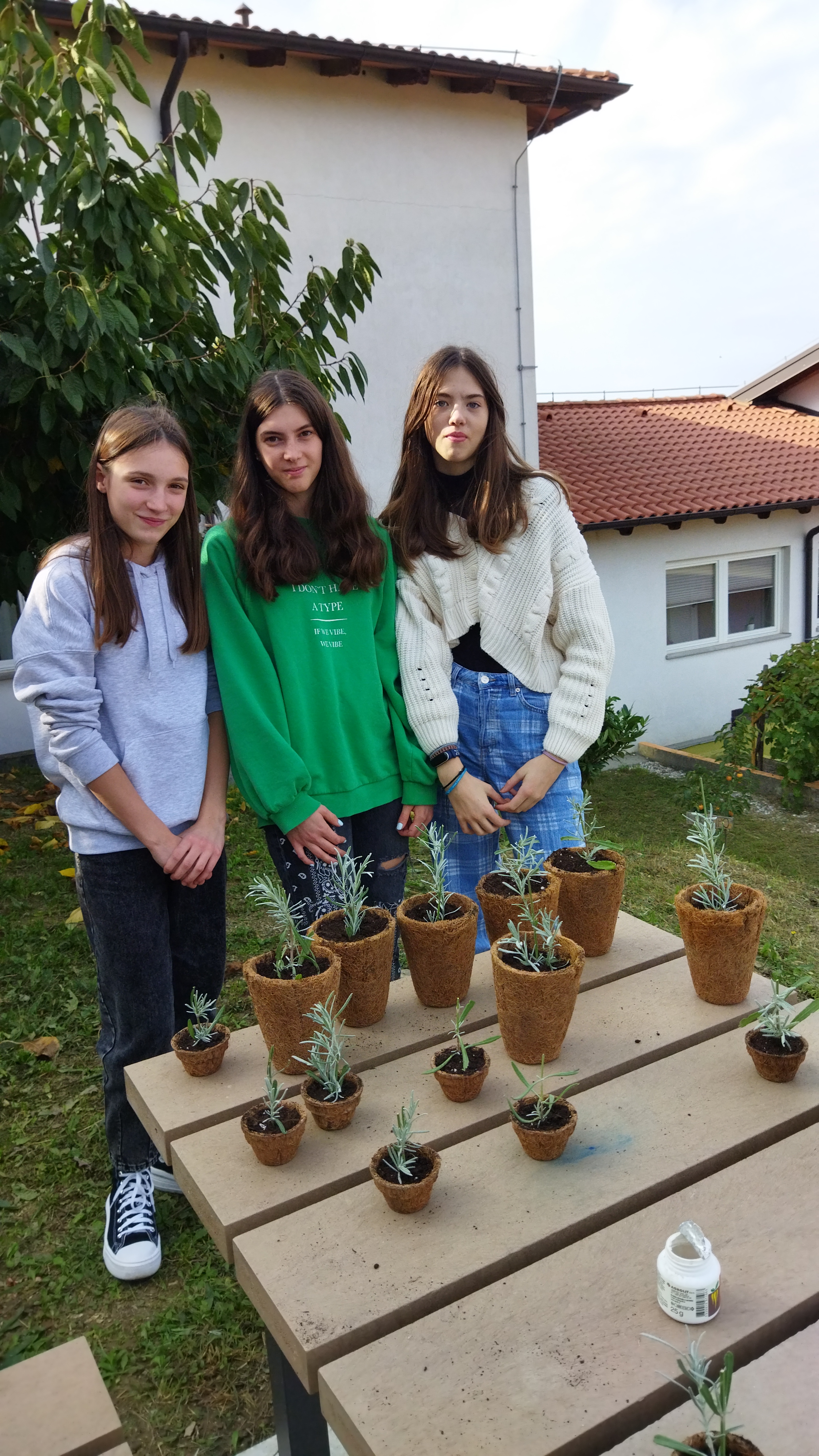 - v lončke iz kokosa zasadili potaknjence sivke, ki jih bomo spomladi presadili v nasad sivke,