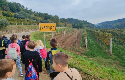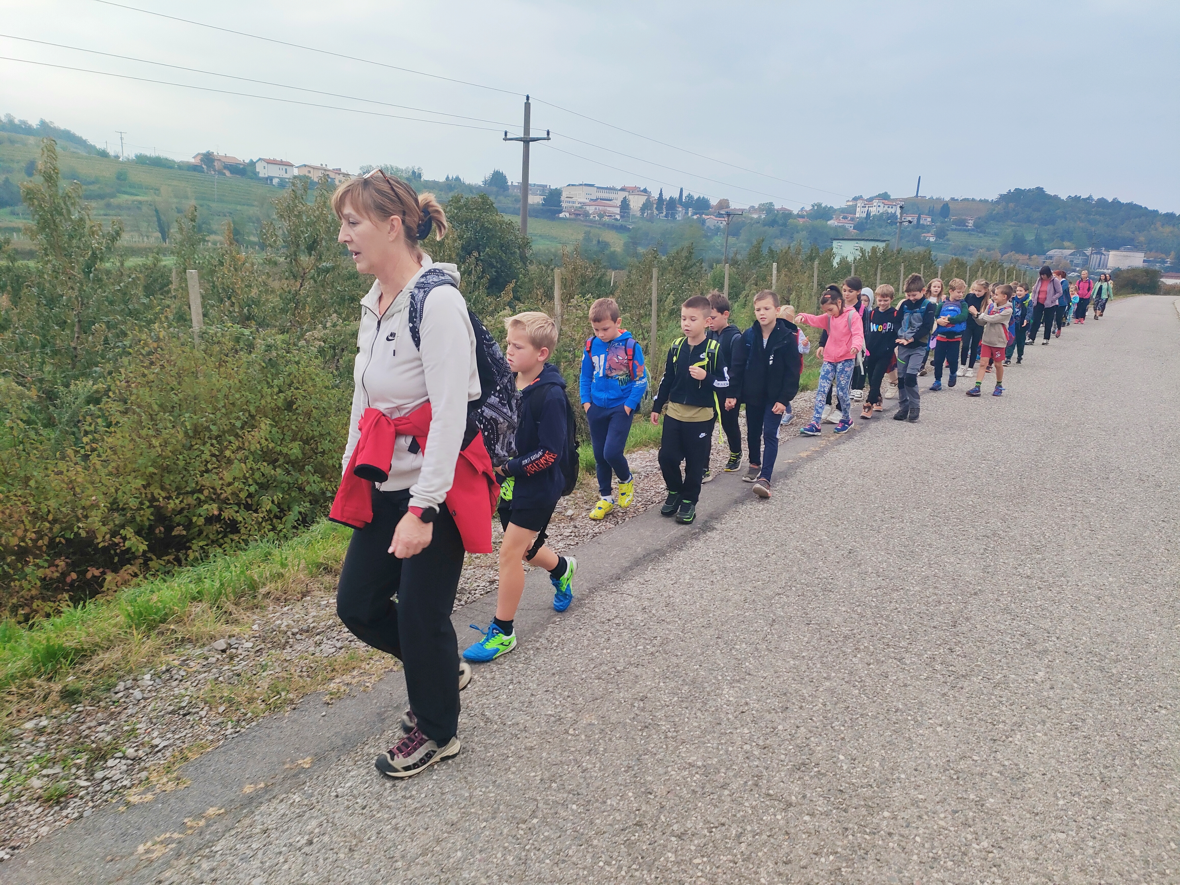 Danes smo se prvošolci in drugošolci odpravili na pohod. Pot nas je vodila skozi Dobrovo do Mlinov in nazaj. V šolo smo se vrnili prijetno utrujeni in veseli, saj nam je uspelo prehoditi 8 kilometrov dolgo pot.