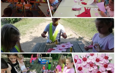 Naučili smo se prepogibati papir in izdelali kozarčke, barčice, jadrnice, ribice, kite, žabice … Skupaj z učenci OPB 1 smo papirnate umetnine uporabili za poletno okrasitev panojev.