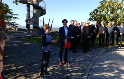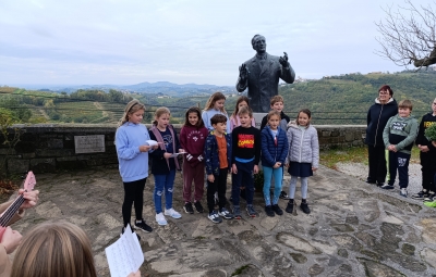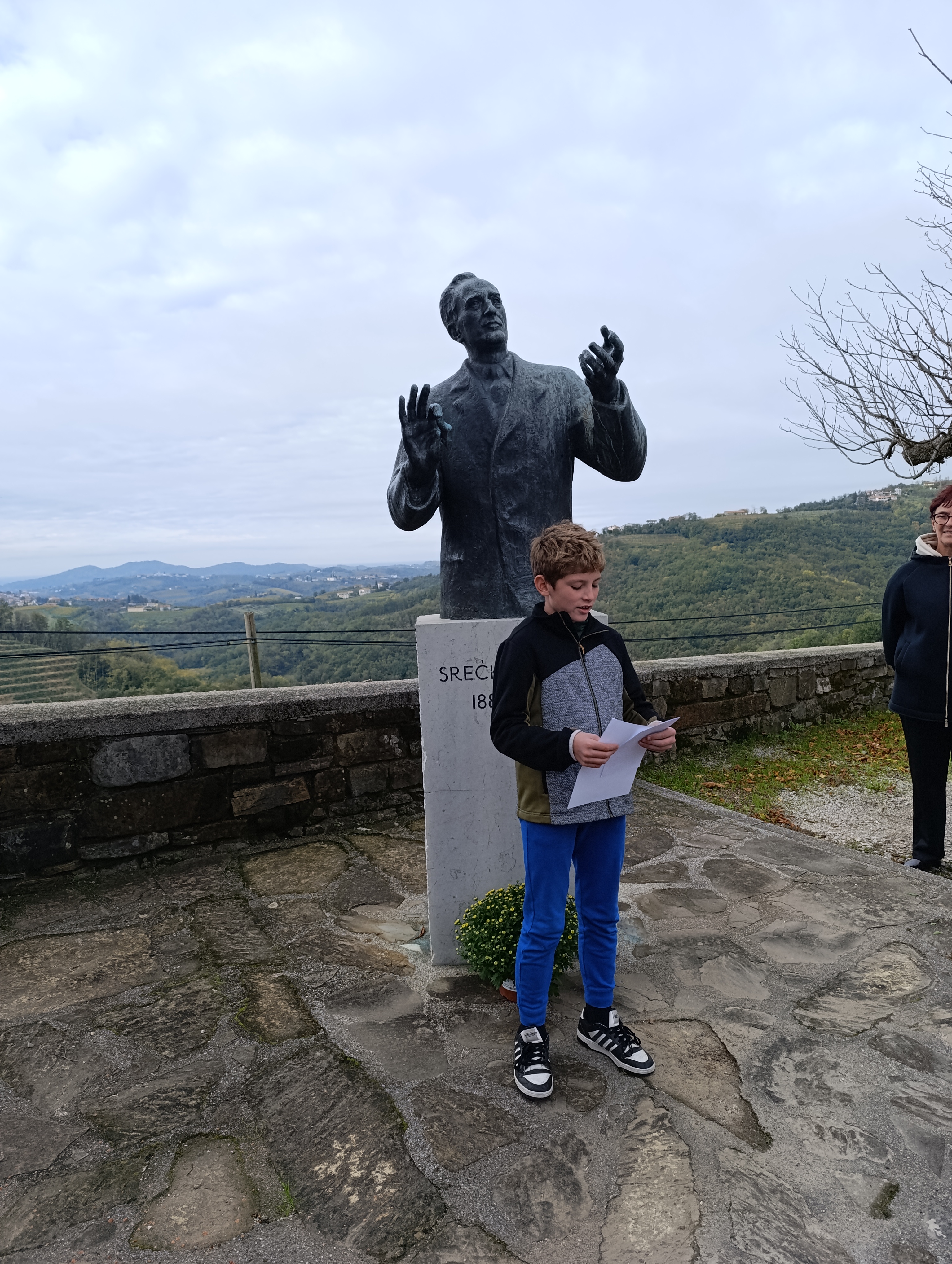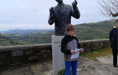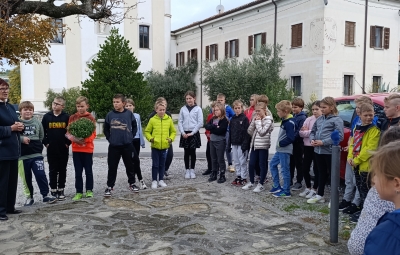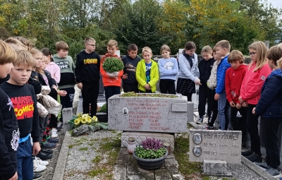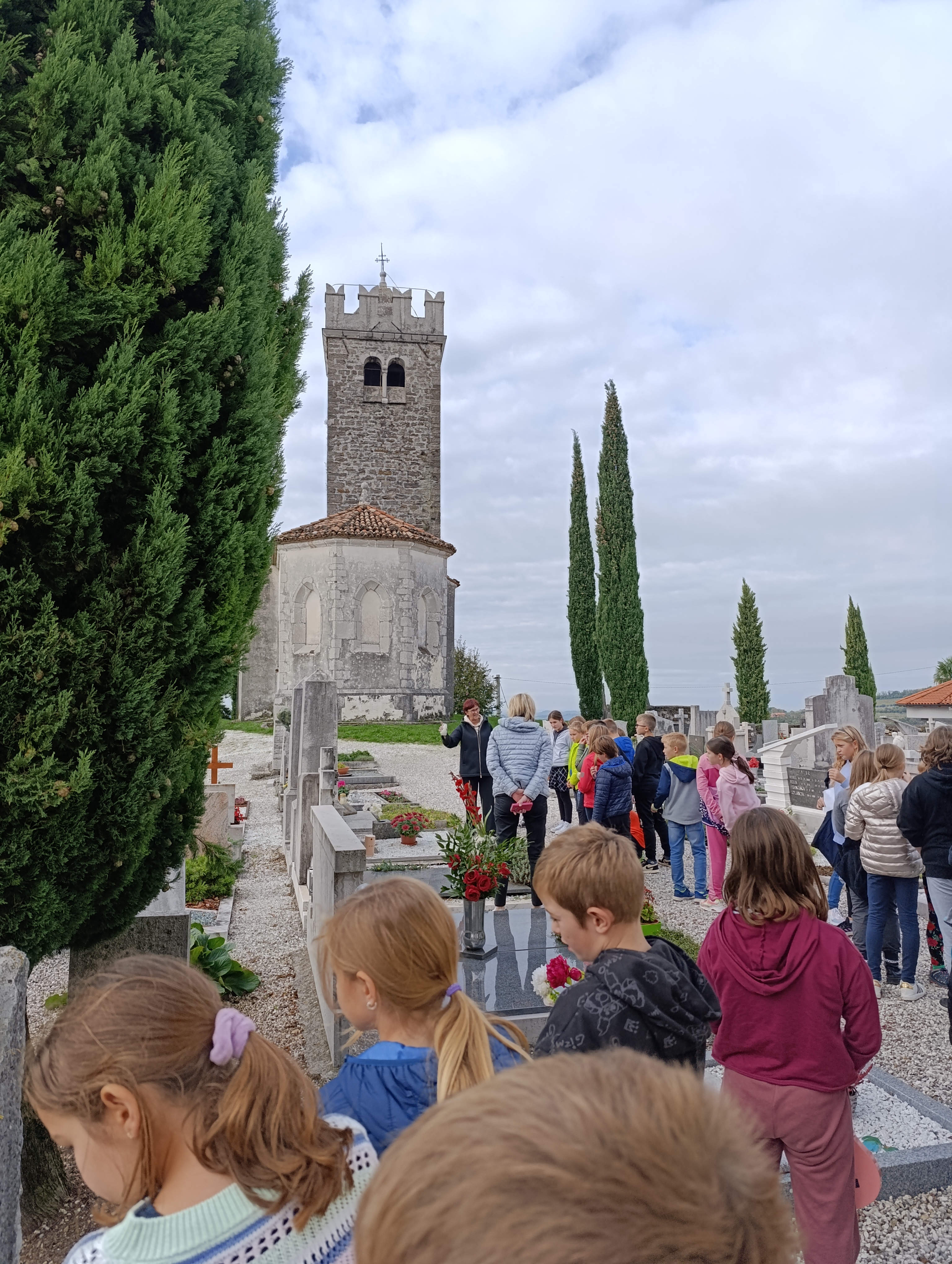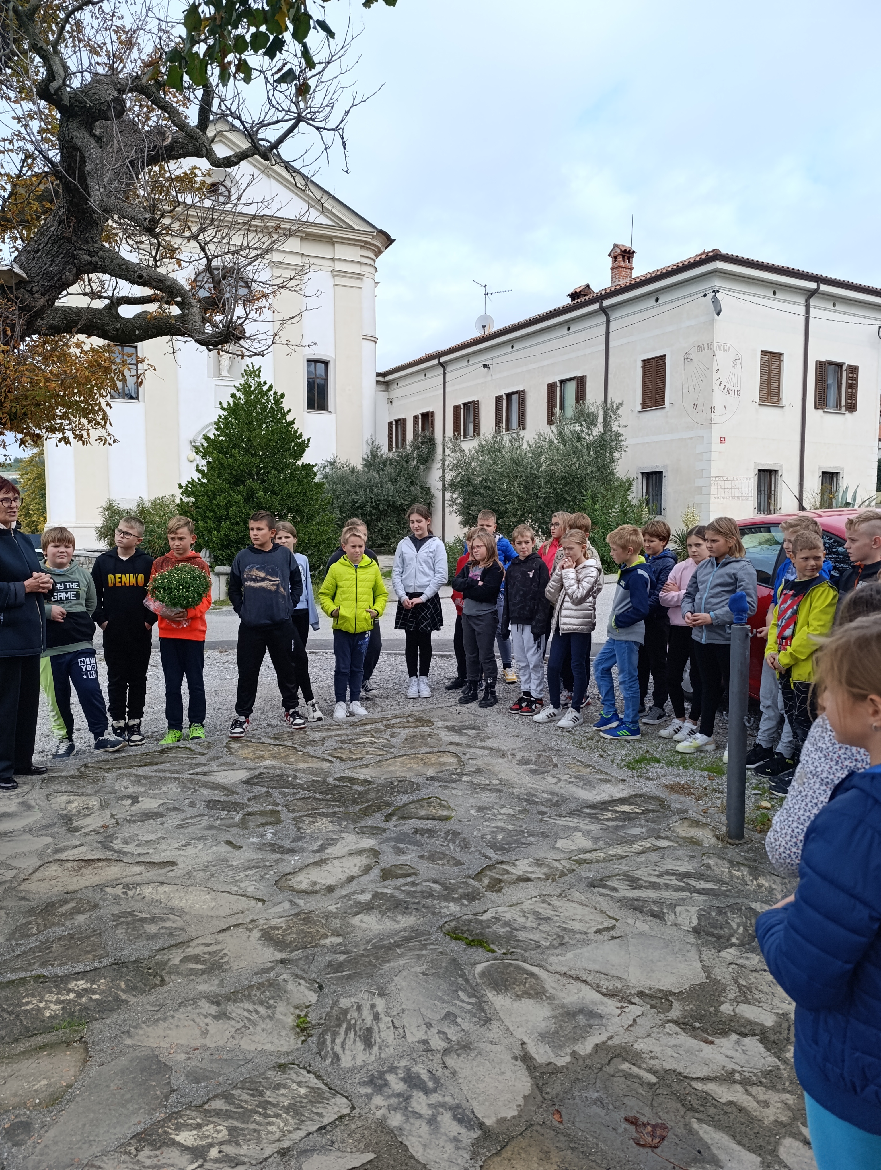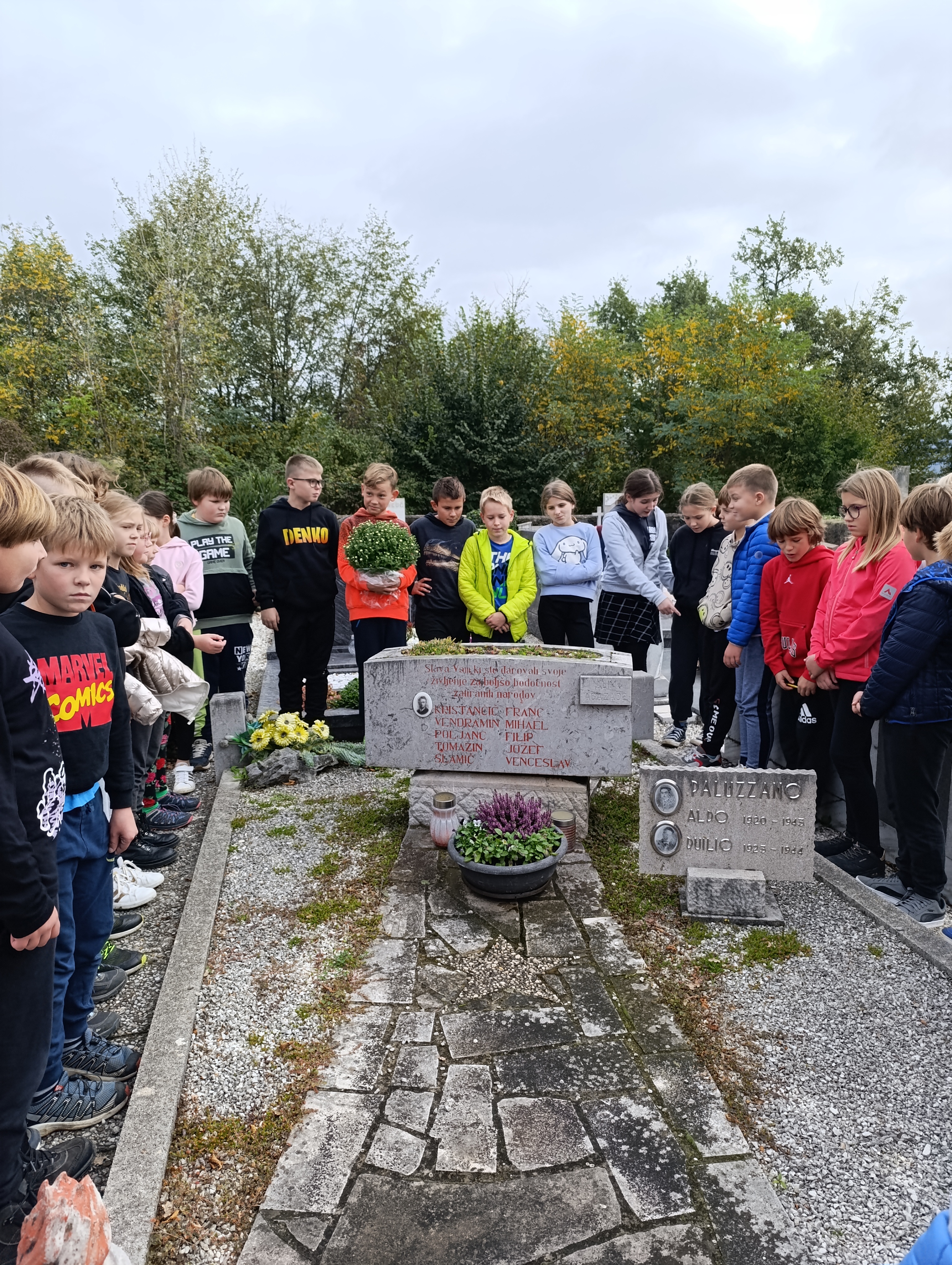 Pred jesenskimi počitnicami smo na podružnici obeležili dan spomina na mrtve. V ta namen smo obiskali spomenik Srečka Kumarja in grobnico vojakov pri Sv. Križu. Med počitnicami pa so učenci, ki obiskujejo pevski zbor, sodelovali na komemoraciji v Gonjačah.