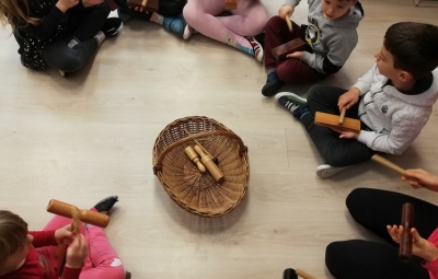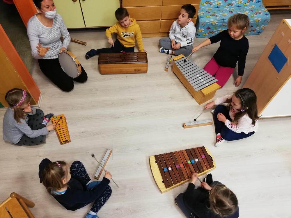 Tekom tedna so otroci spoznali različna glasbila in nanje zaigrali. Izdelali so si preproste ropotulje in z njimi ritmično spremljali skladbo, spoznali so lesene in kovinske instrumente, z glasbili ponazarjali tiktakanje ure in zapeli pesem Abraham ma sedem sinov. Otroci so bili nad muziciranjem navdušeni. Koncert smo tudi posneli in si ga ogledali. Žal nam je le, da koncertu niso mogli prisluhniti tudi drugi otroci.