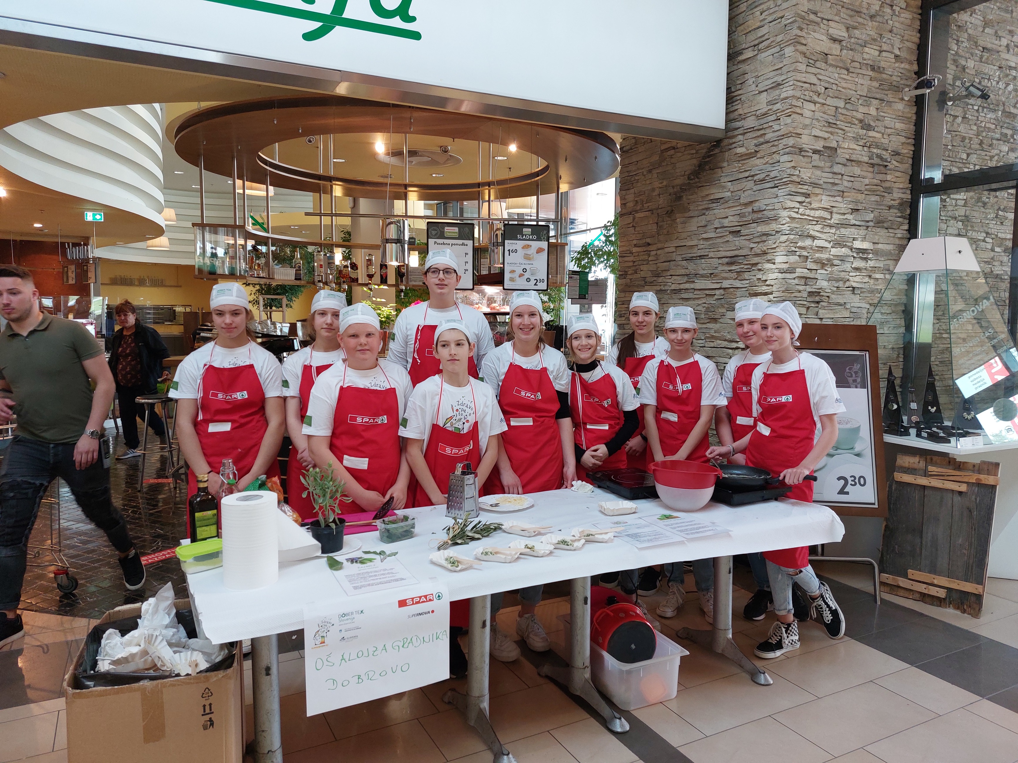 Našo šolo in Brda so zastopale 3 kuharske skupine. Vodja projekta "Kuhna pa to", v okviru katerega se je dogodek odvijal, Anka Peljhan je bila z našim delom več kot zadovoljna. Zelo so nas pohvalili tudi obiskovalci nakupovalnega središča, ki so naše jedi pokušali. Čestitke učencem za izvrstno opravljen kuharski nastop.