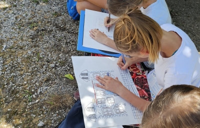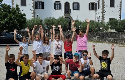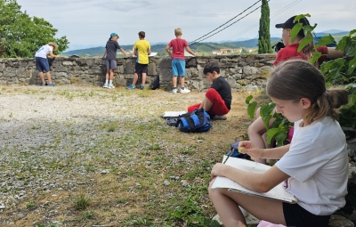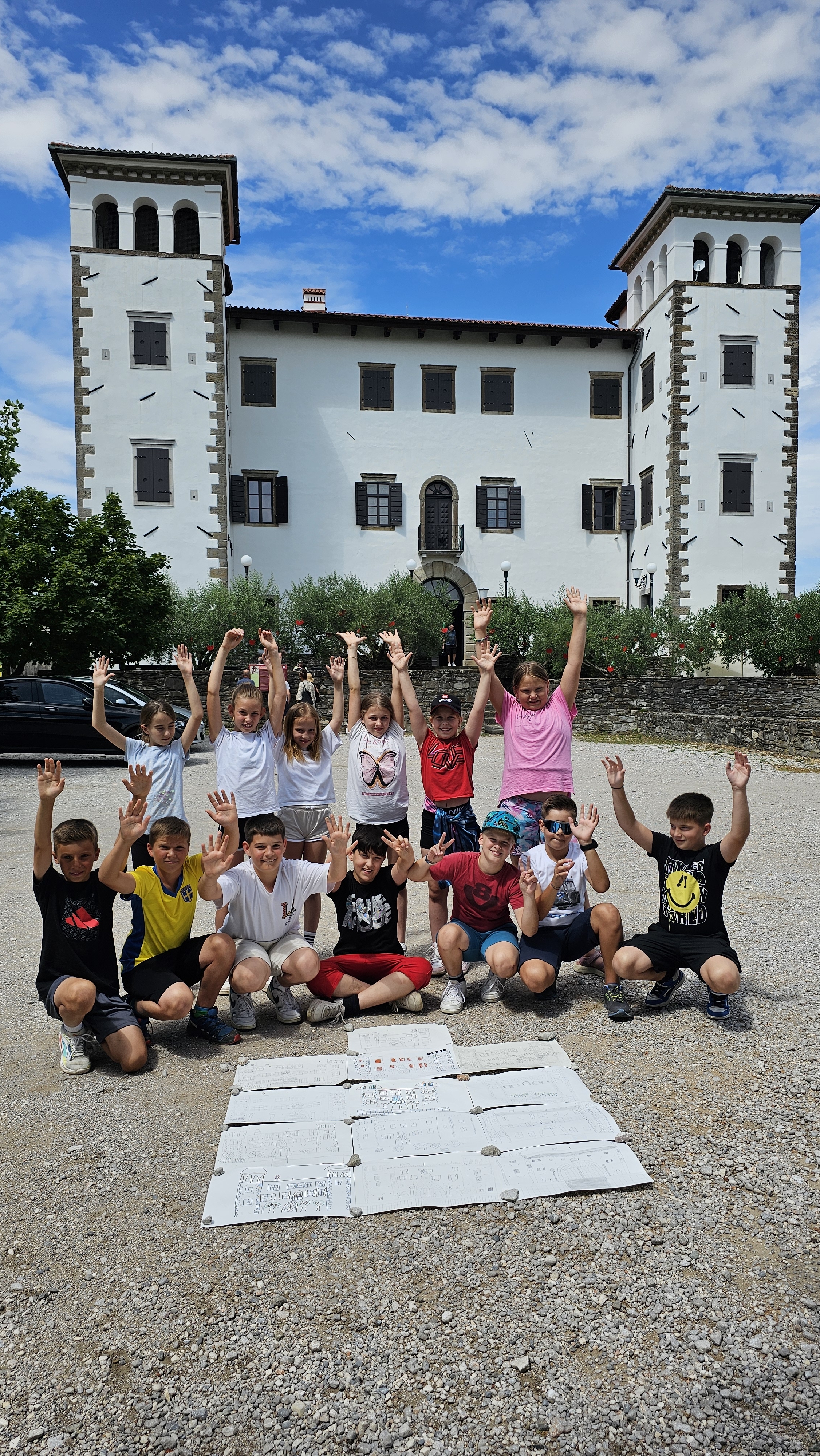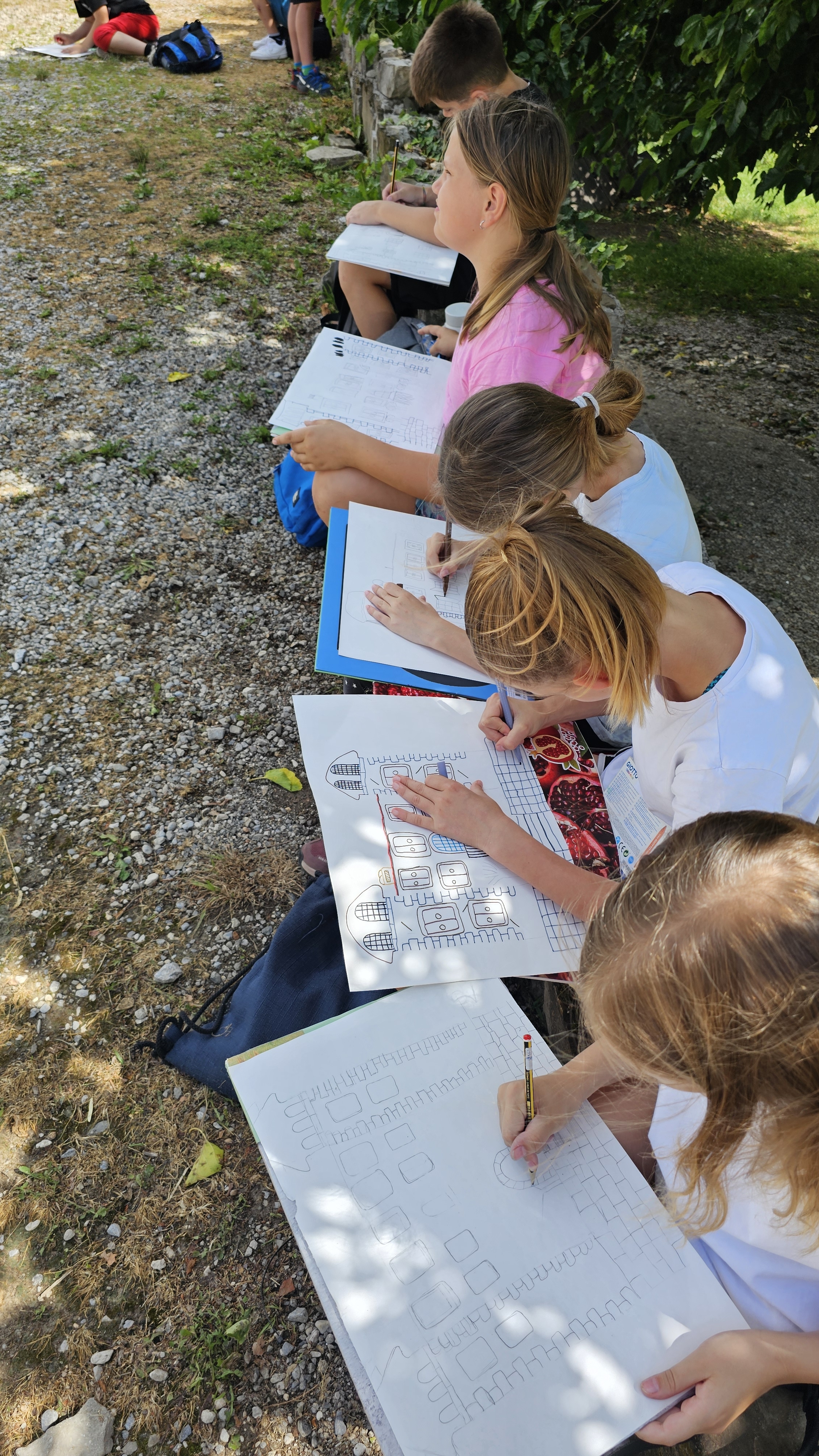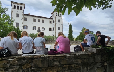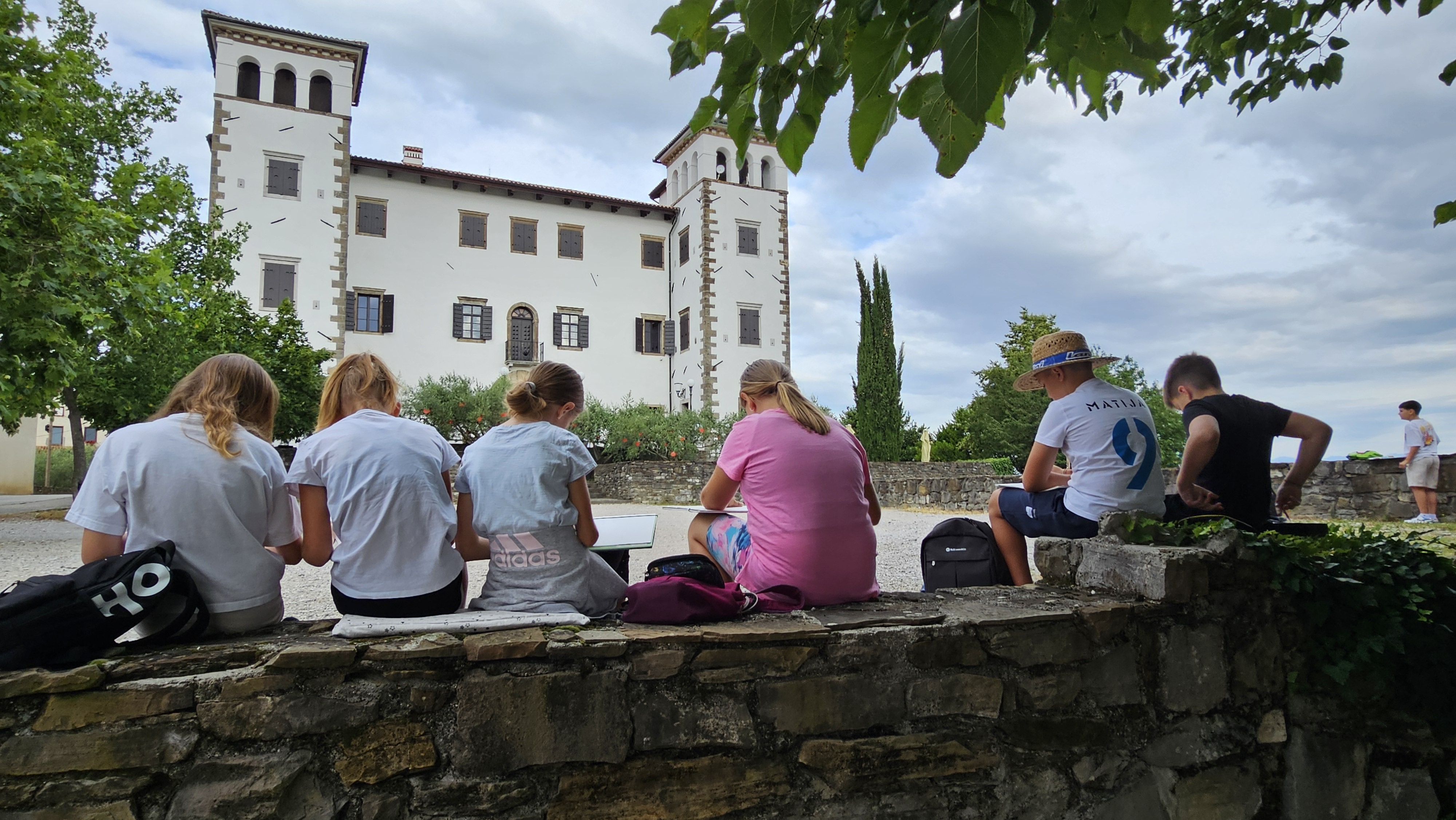 Današnji - ne toliko vroč dan - je bil ravno pravšnji za ustvarjanje na prostem. Učenci 4.a smo si izbrali prostor pred gradom Dobrovo. Tako smo lahko po neposrednem opazovanju grad tudi narisali. Nekateri učenci smo naslikali tudi gričevnato pokrajino, ki smo jo lahko občudovali z obzidja pred gradom. Po končanem delu smo svoje risbe tudi razstavili.