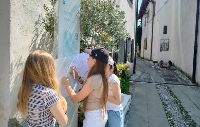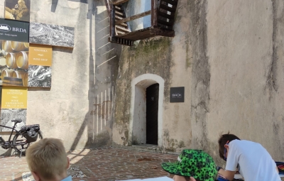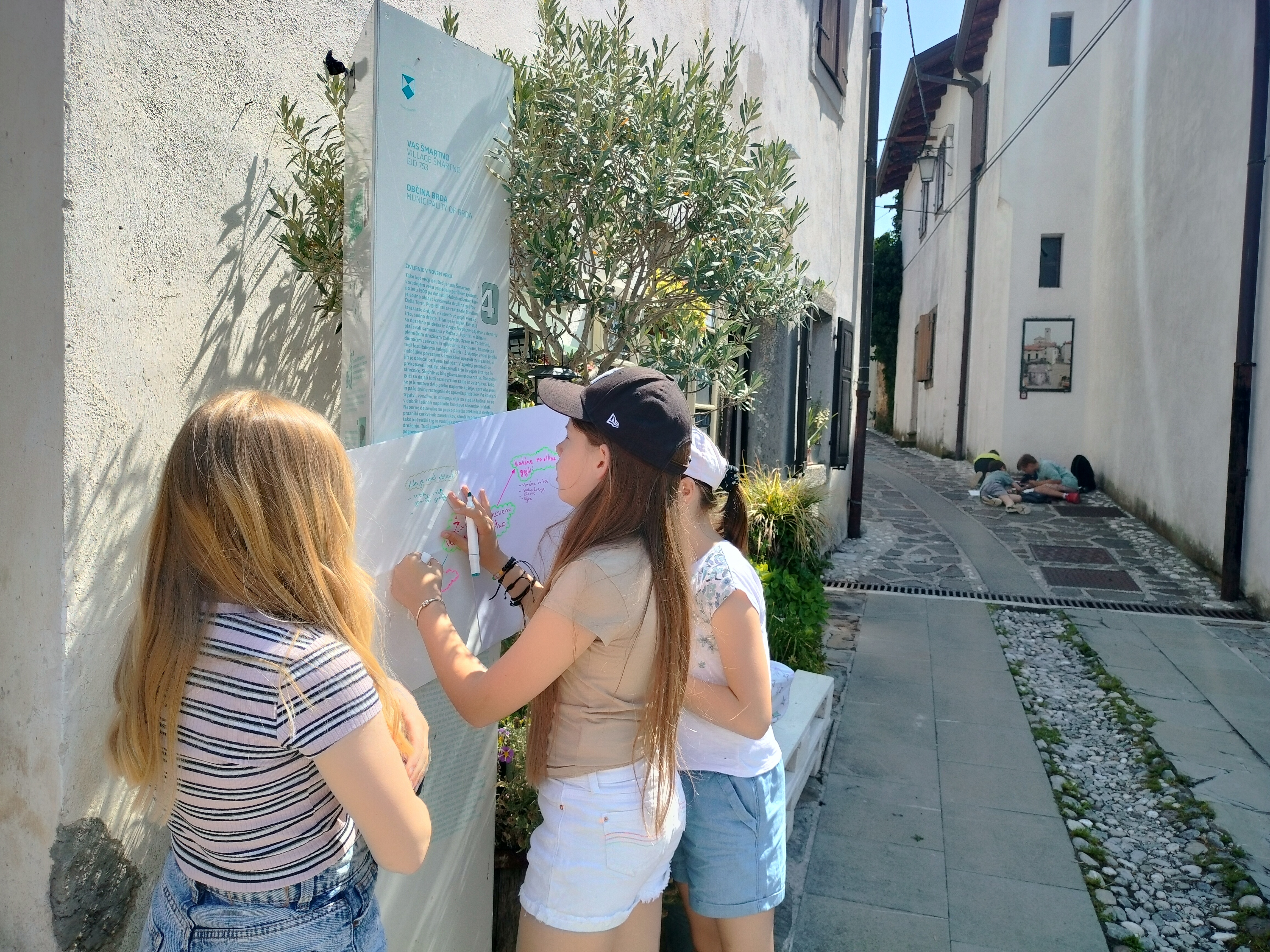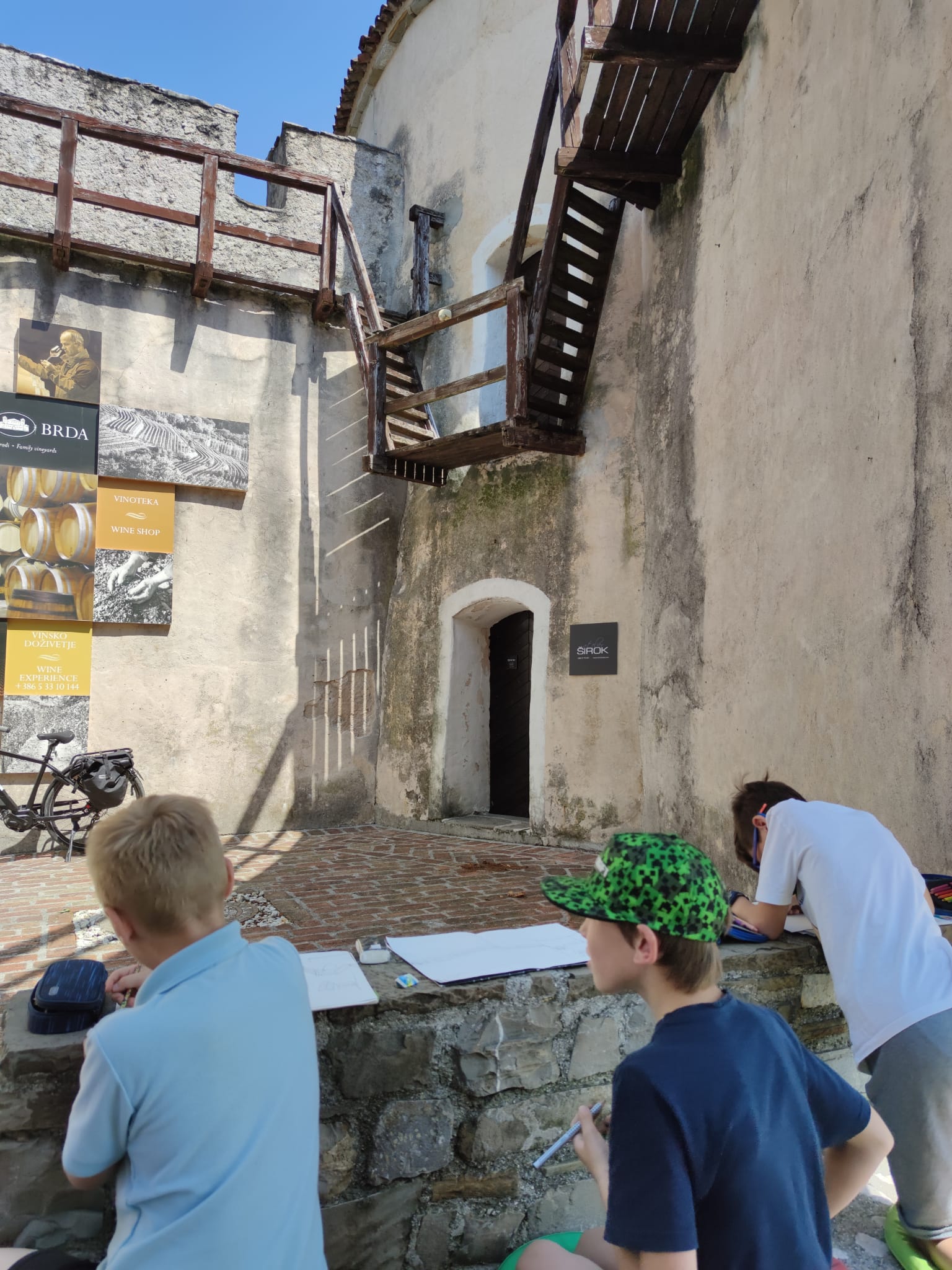V senci obzidja smo iskali podatke in izdelovali plakate o zanimivostih Šmartnega. Vas smo iz različnih zornih kotov preslikali na risalne liste.